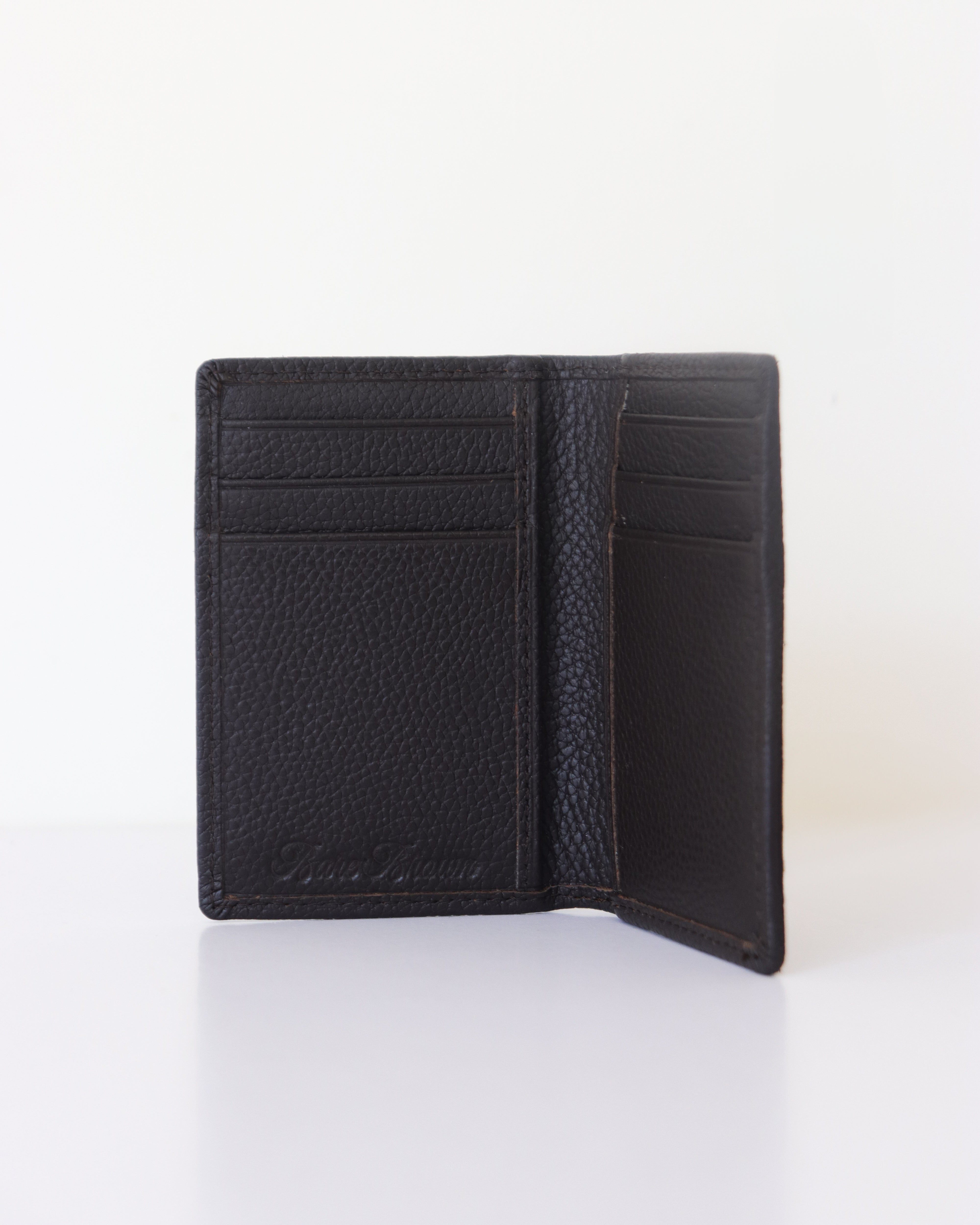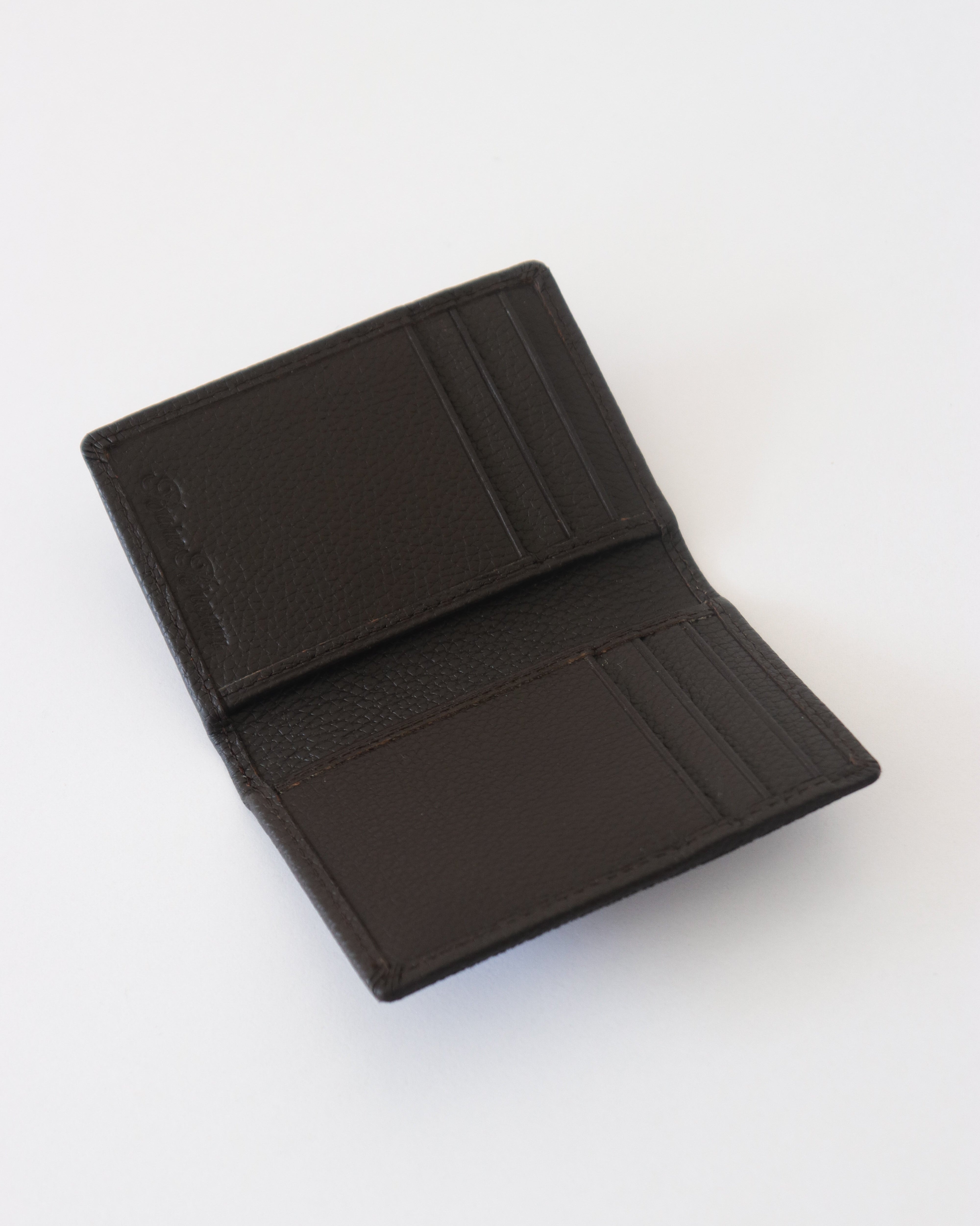 Designed for minimalists and professionals, this genuine leather bi-fold card holder offers a sleek and compact design, with dedicated card slots, slide pockets for receipts or extra essentials, and a soft yet durable leather exterior, ensuring long-lasting elegance and practicality.