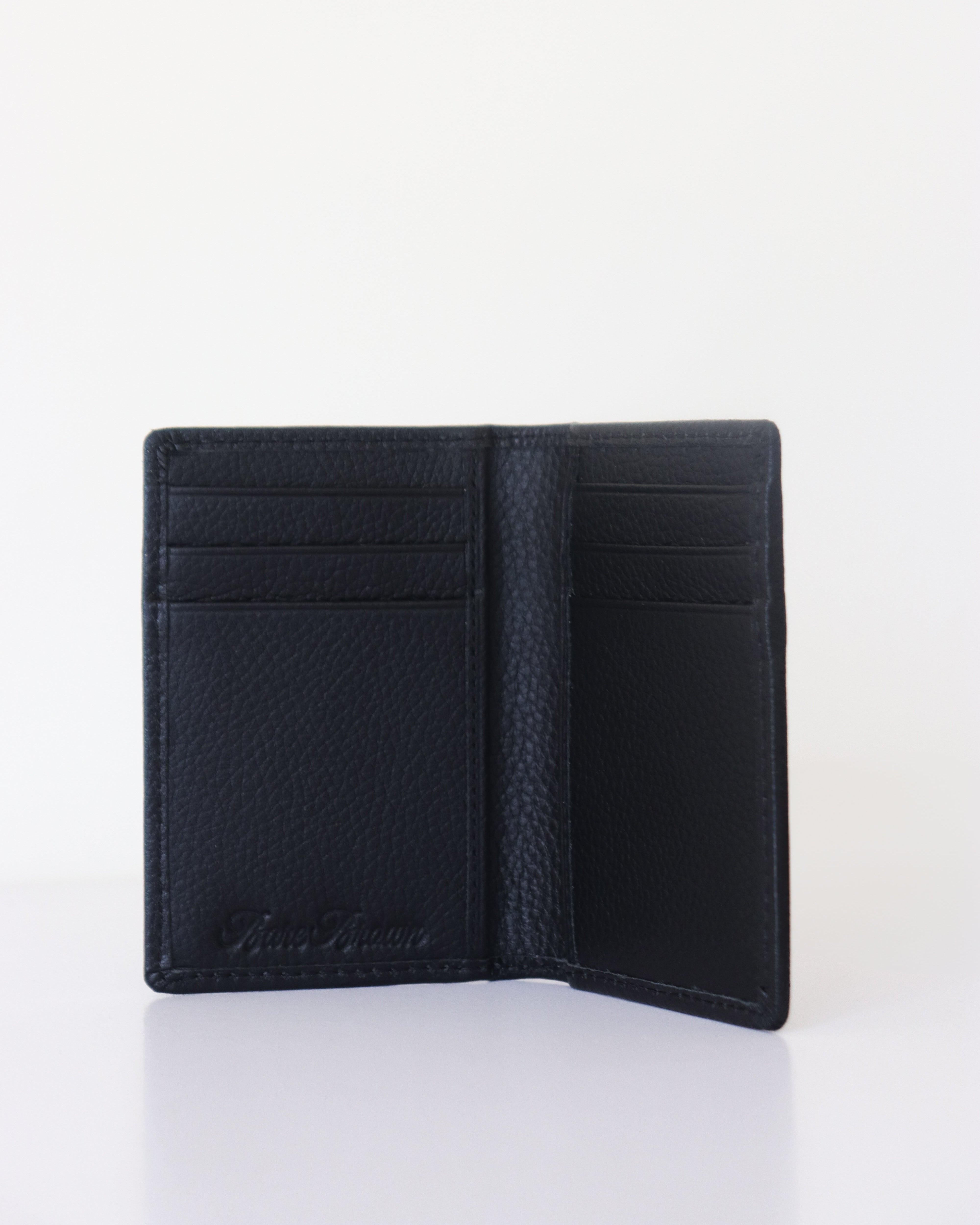 Designed for minimalists and professionals, this genuine leather bi-fold card holder offers a sleek and compact design, with dedicated card slots, slide pockets for receipts or extra essentials, and a soft yet durable leather exterior, ensuring long-lasting elegance and practicality.
