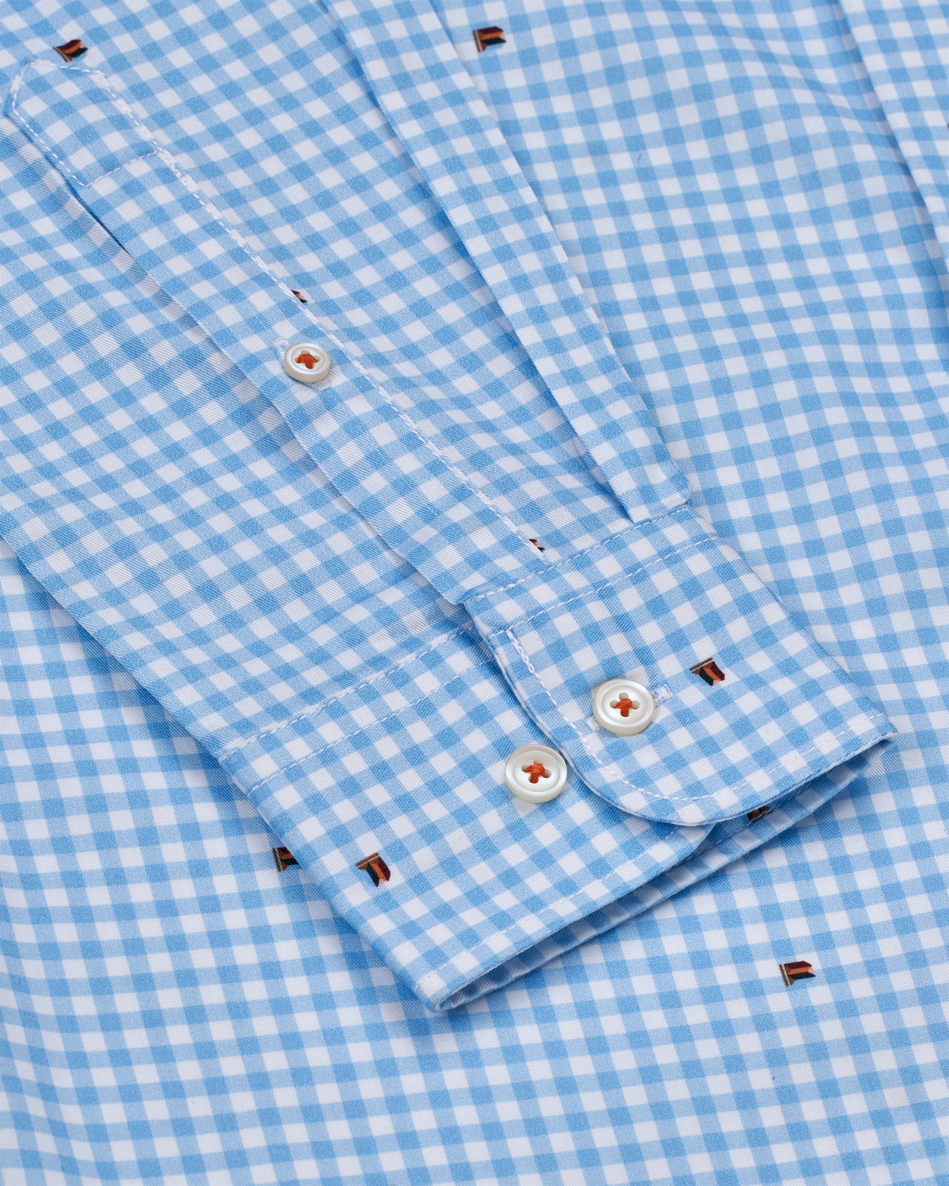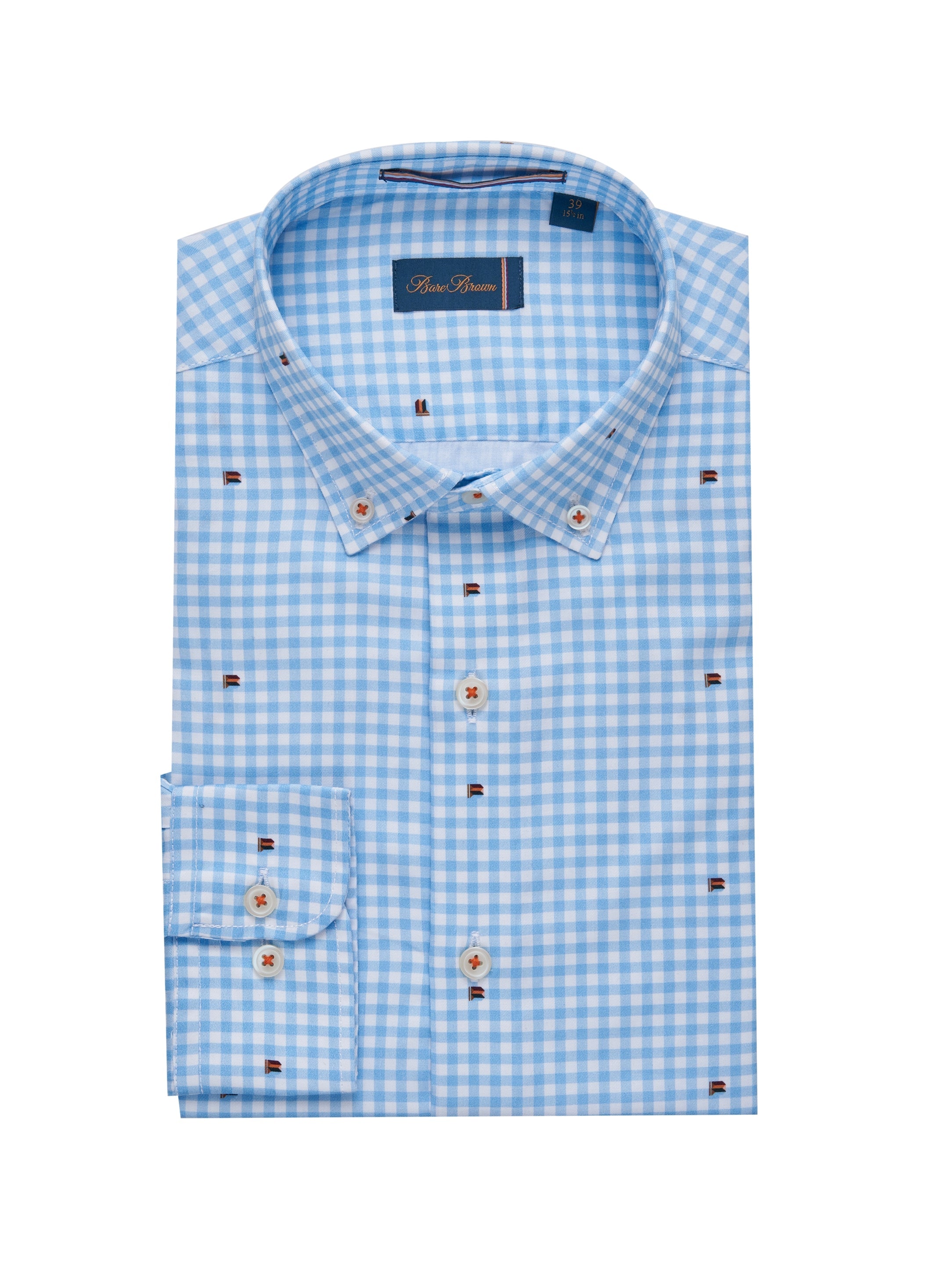 Bare Brown Cotton Gingham Check Shirt, Slim Fit with Full Sleeves - Light Blue