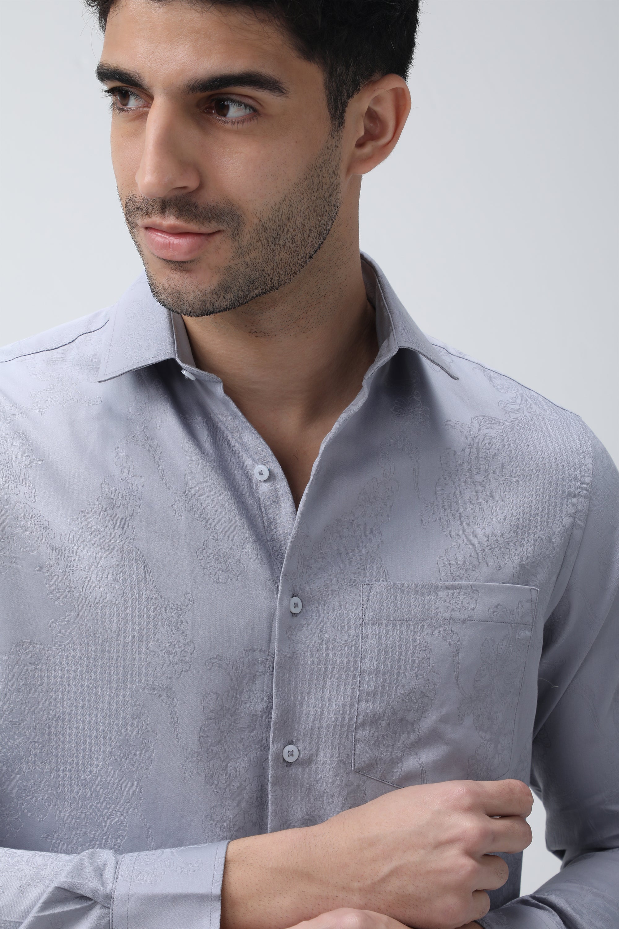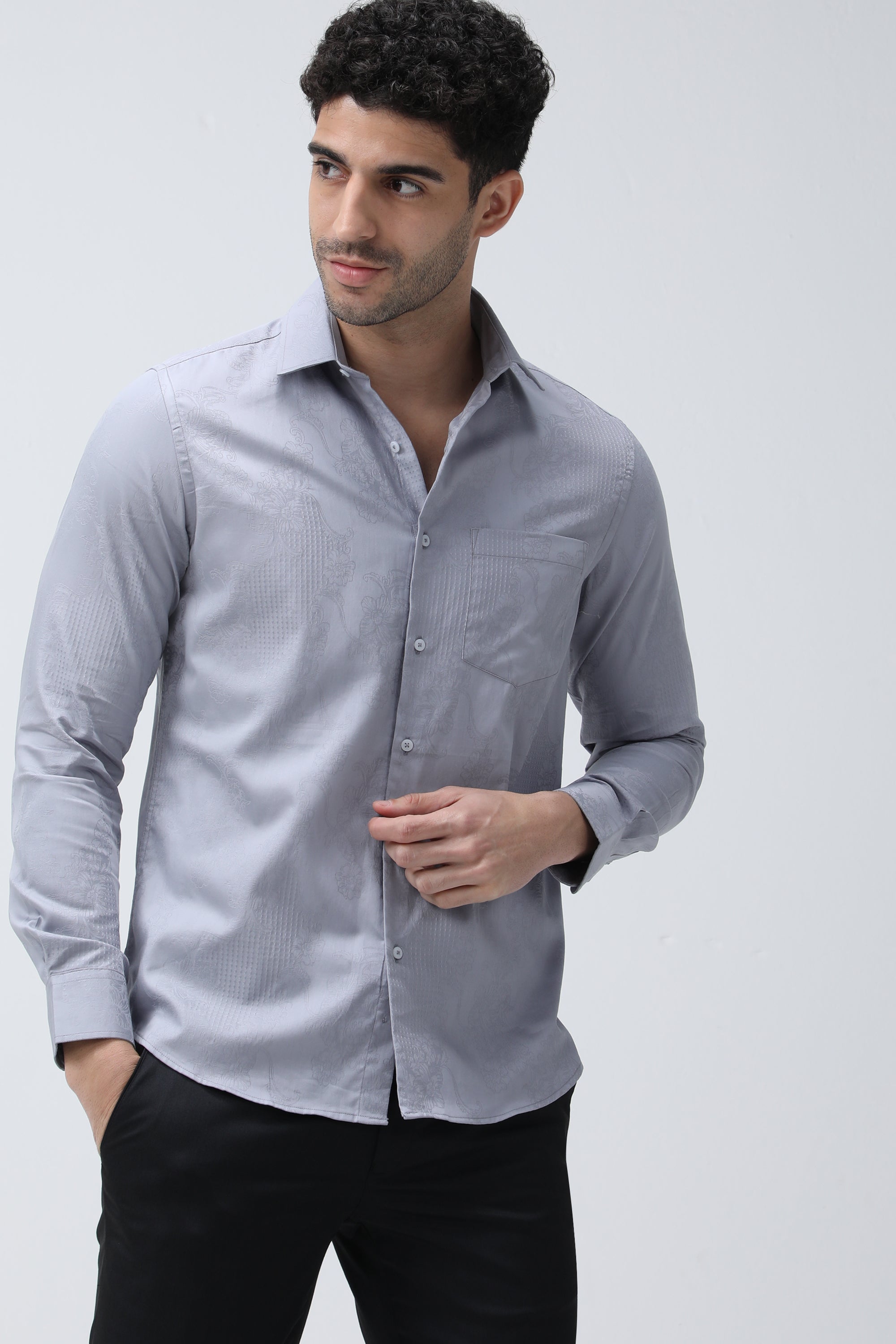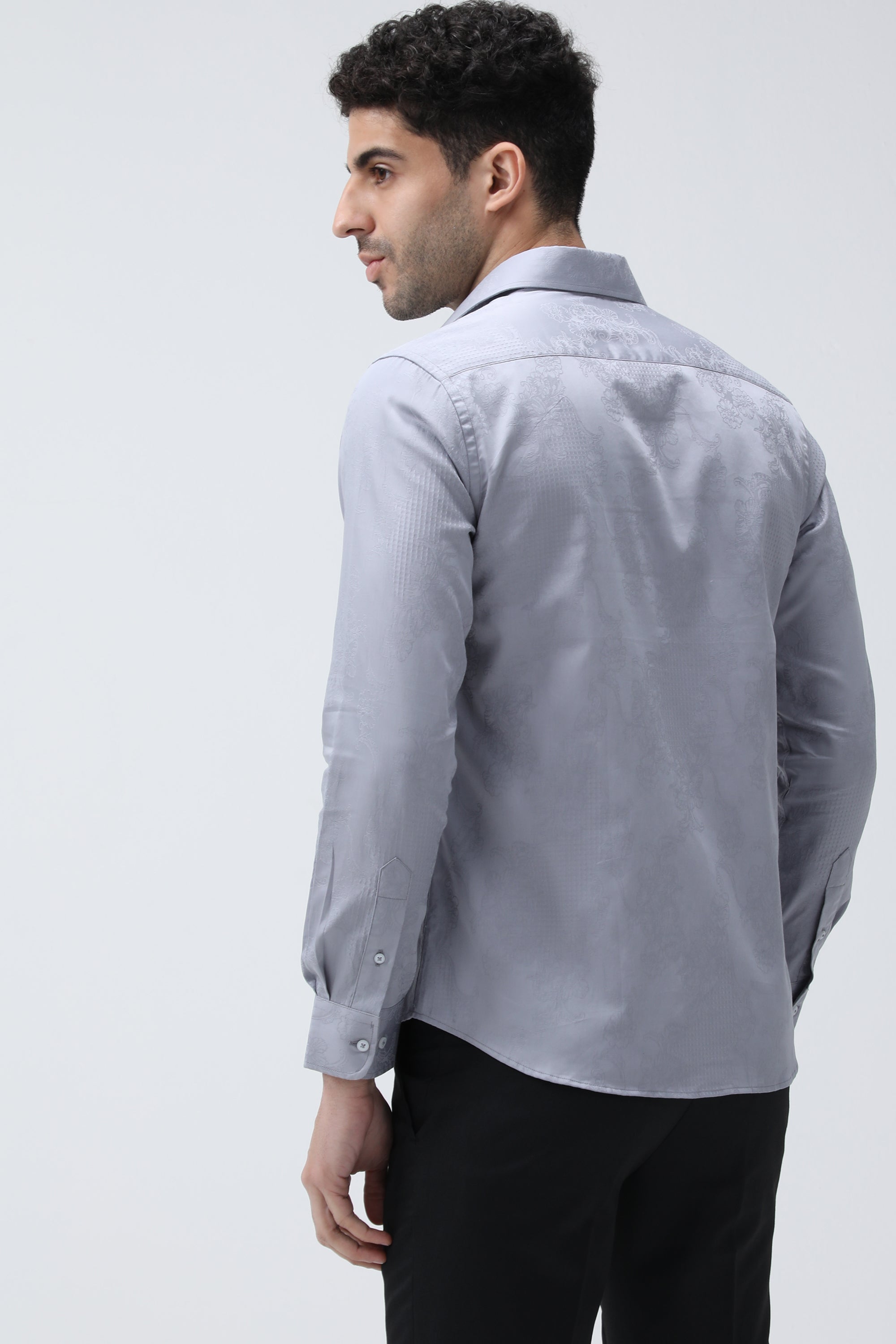 T the brand Jacquard Slim Fit Full Sleeved Cotton Shirt - Slate