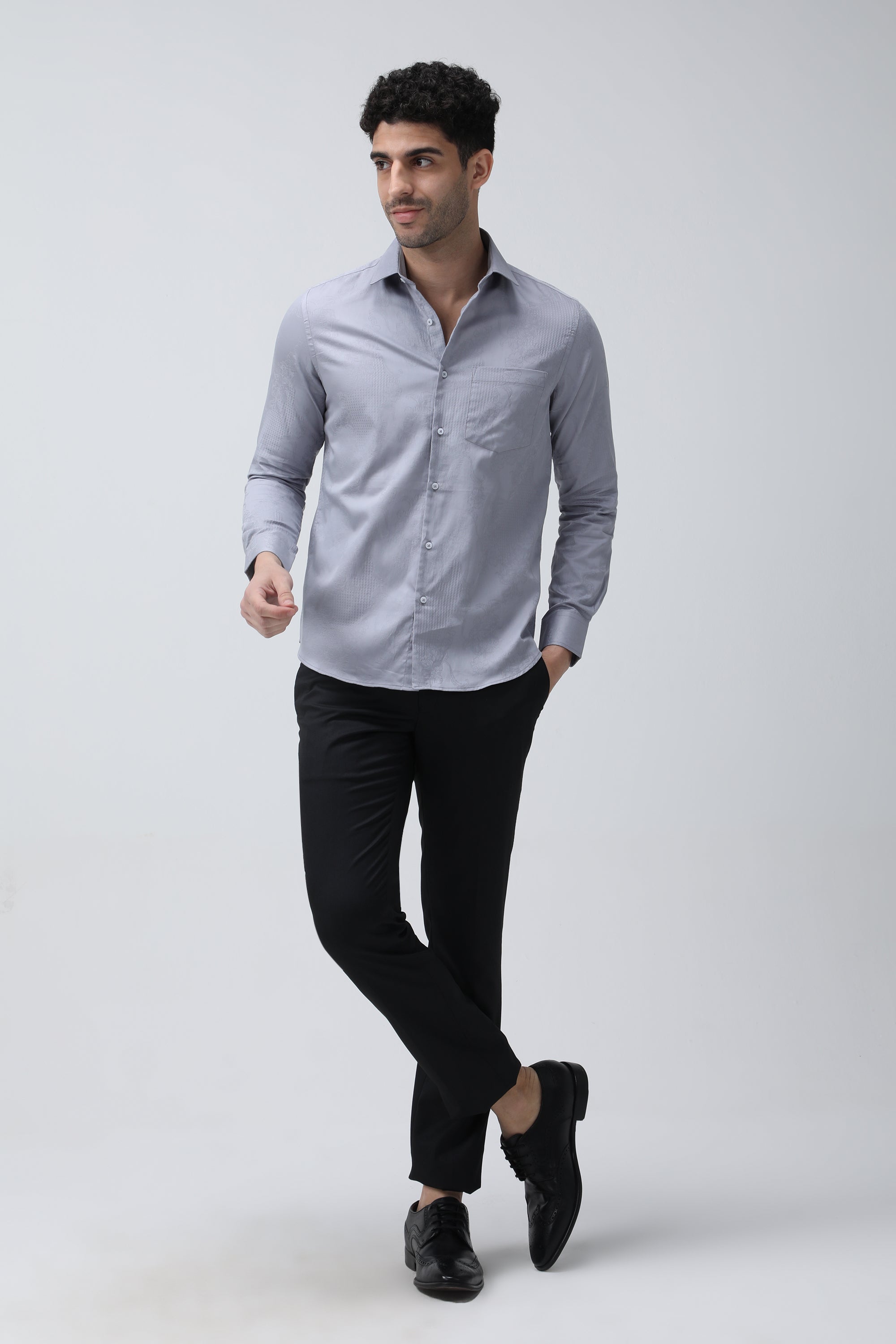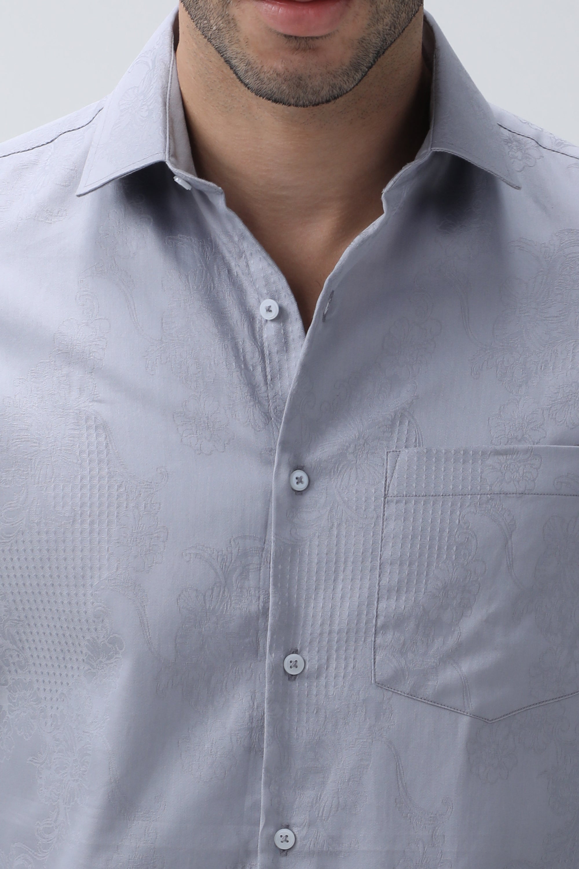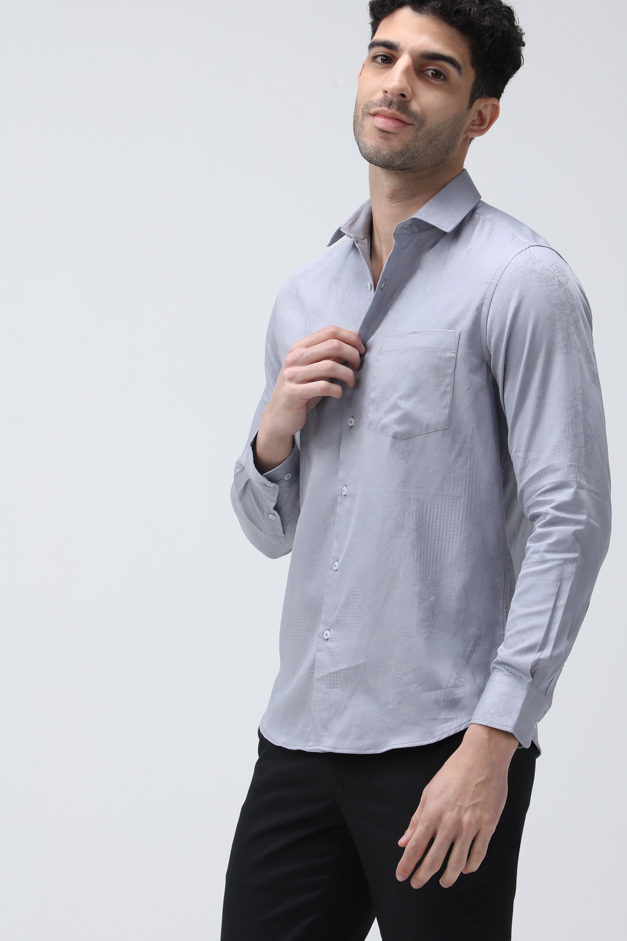 T the brand Jacquard Slim Fit Full Sleeved Cotton Shirt - Slate