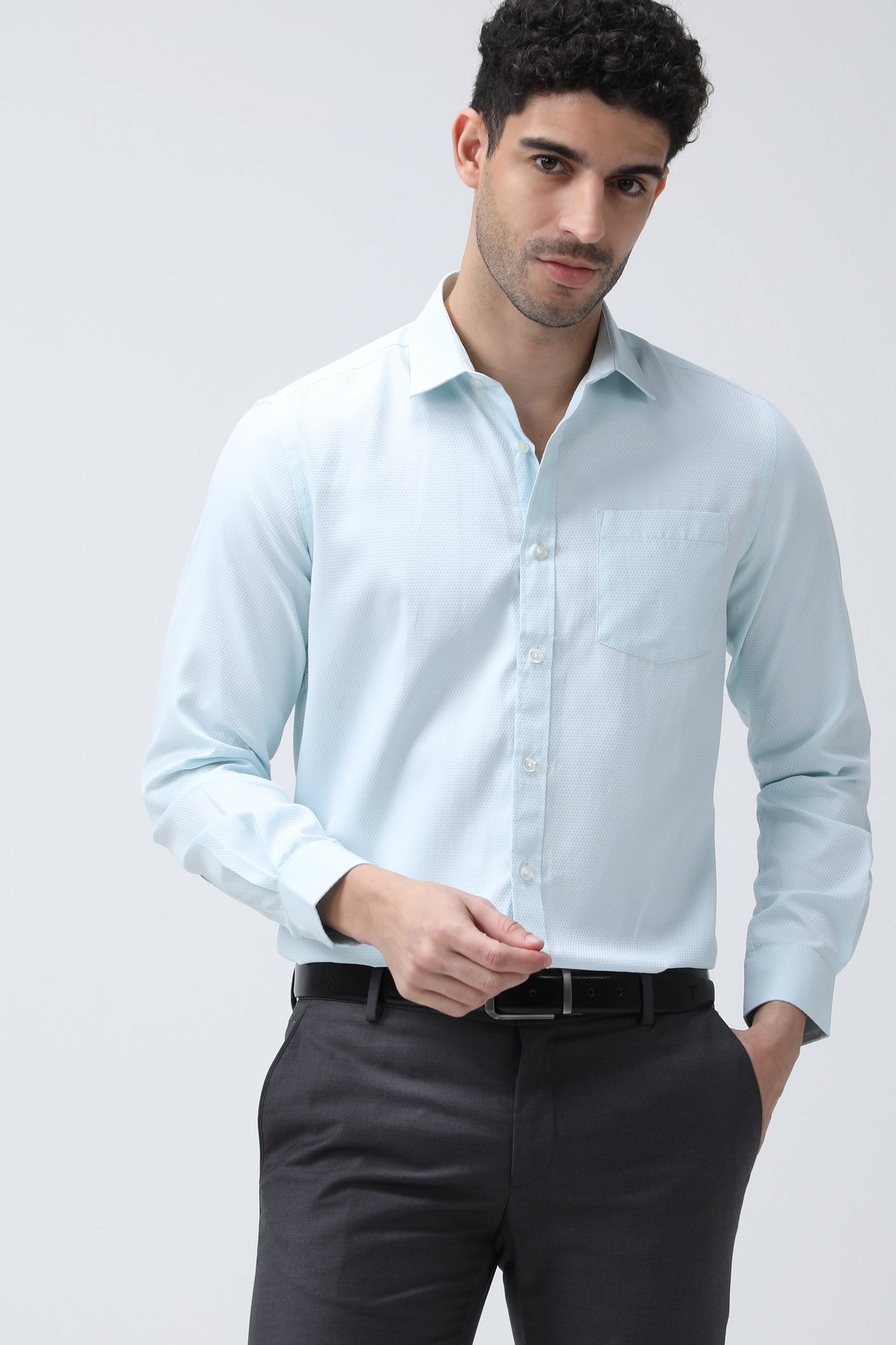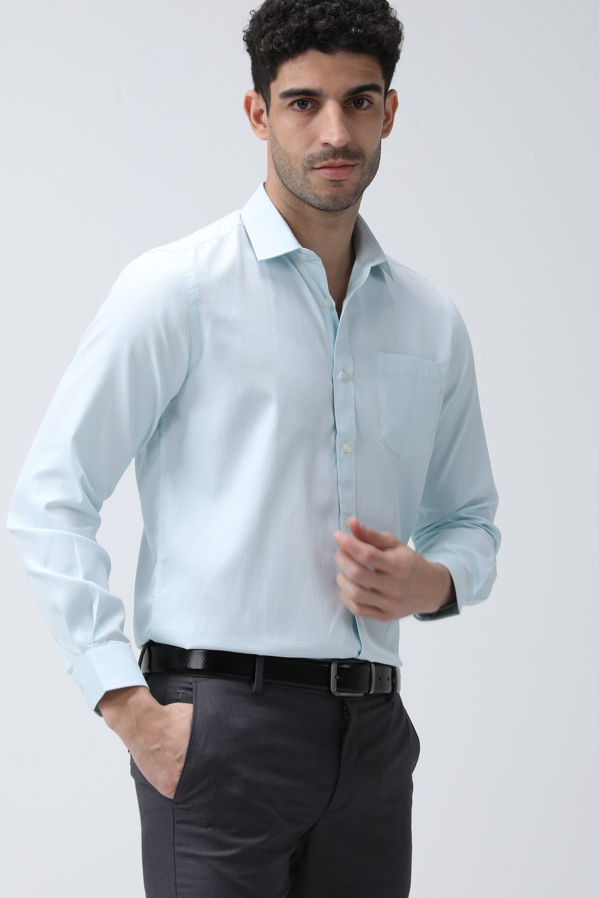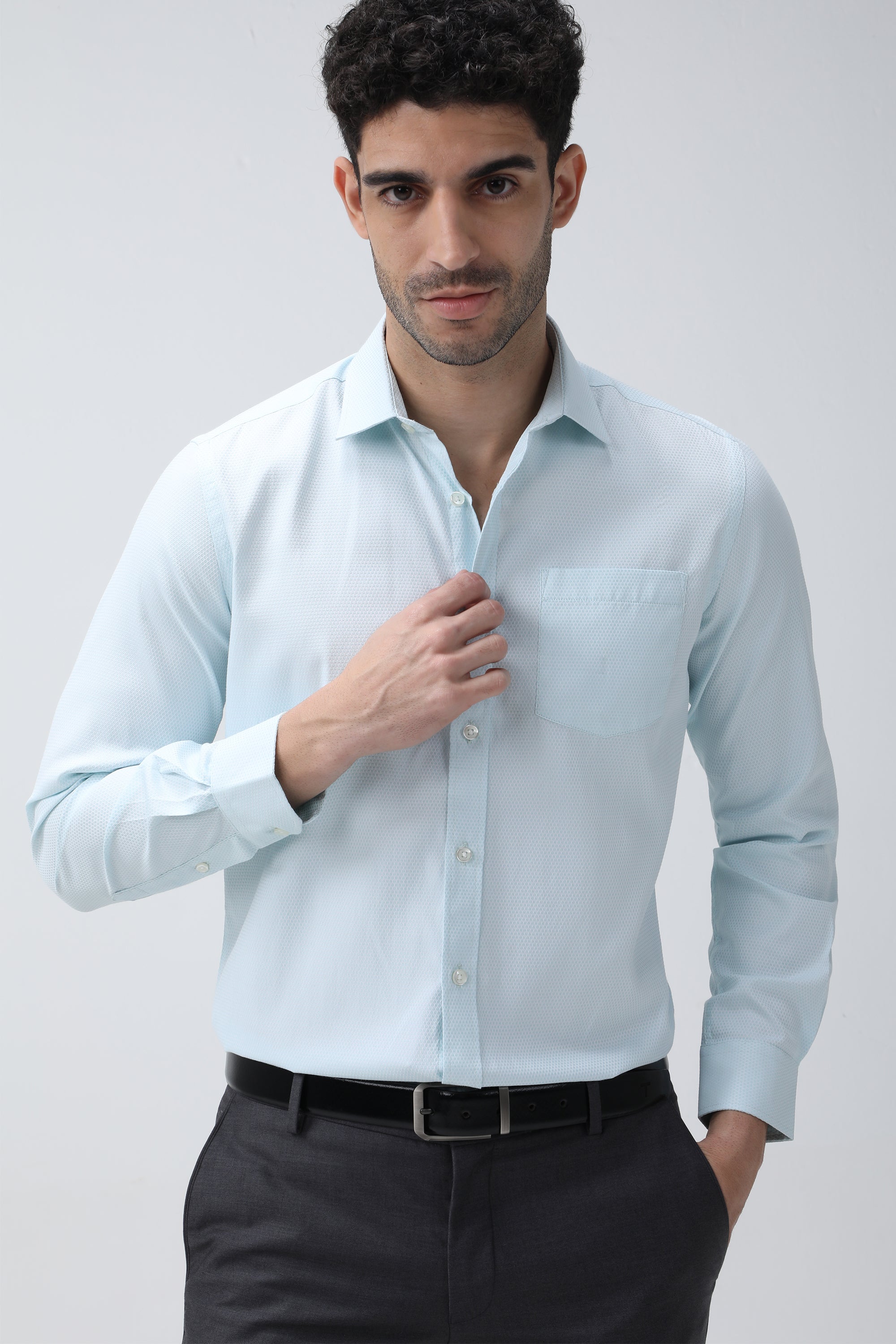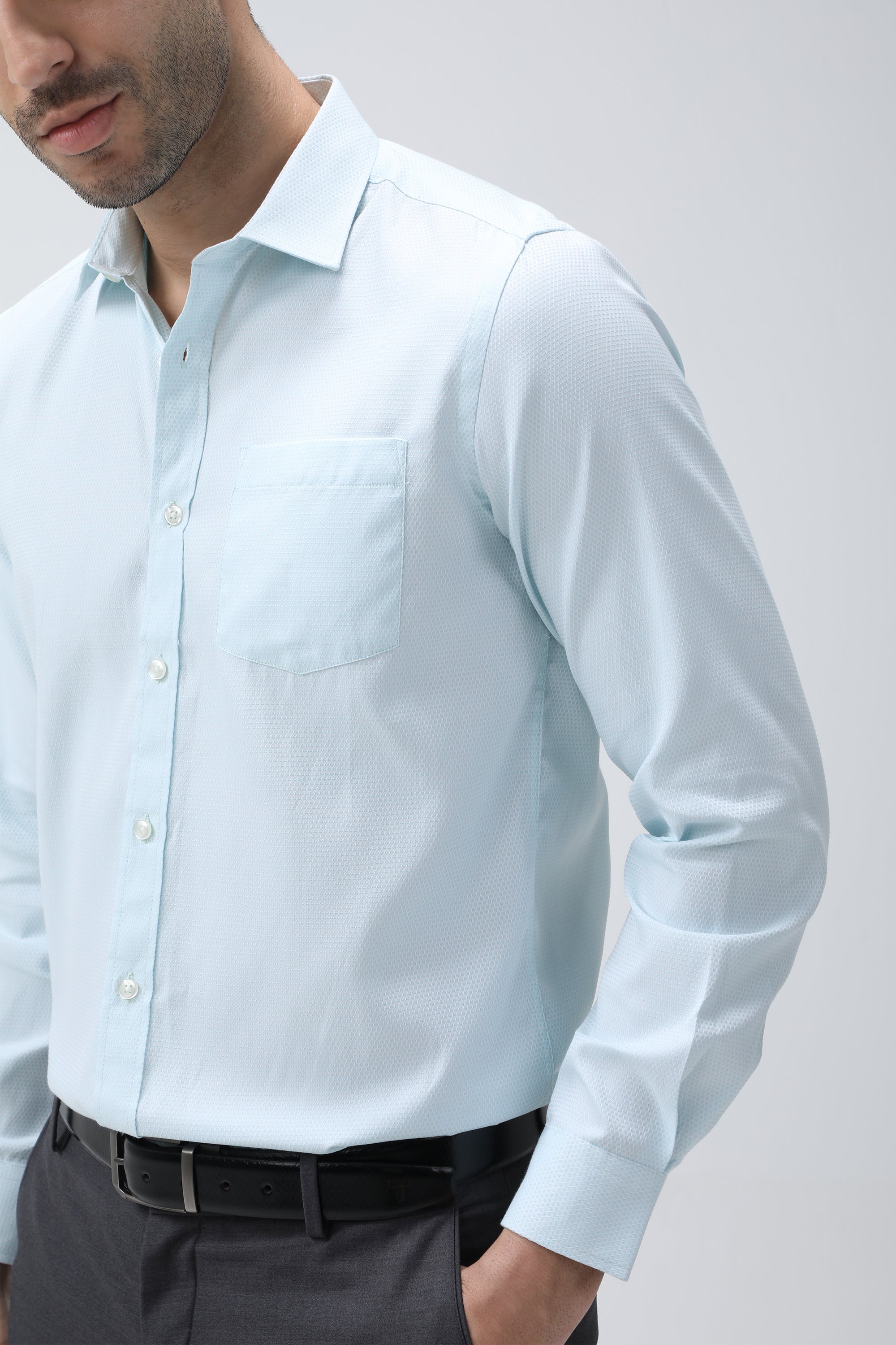 The slim fit dobby cotton blend shirt, featuring full sleeves and a subtle textured pattern. Designed for a sharp, tailored look, it offers both style and comfort, making it a versatile choice for any occasion