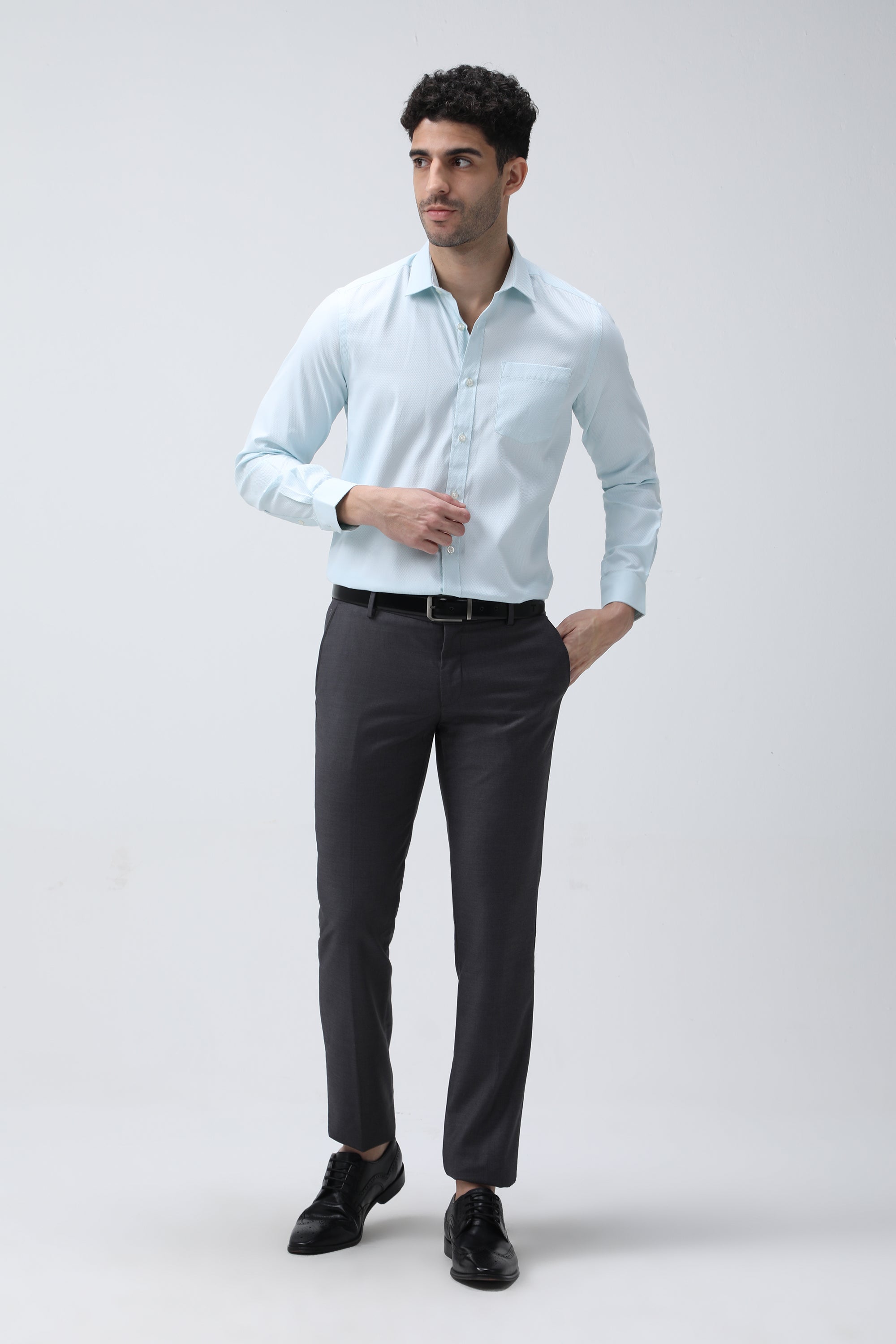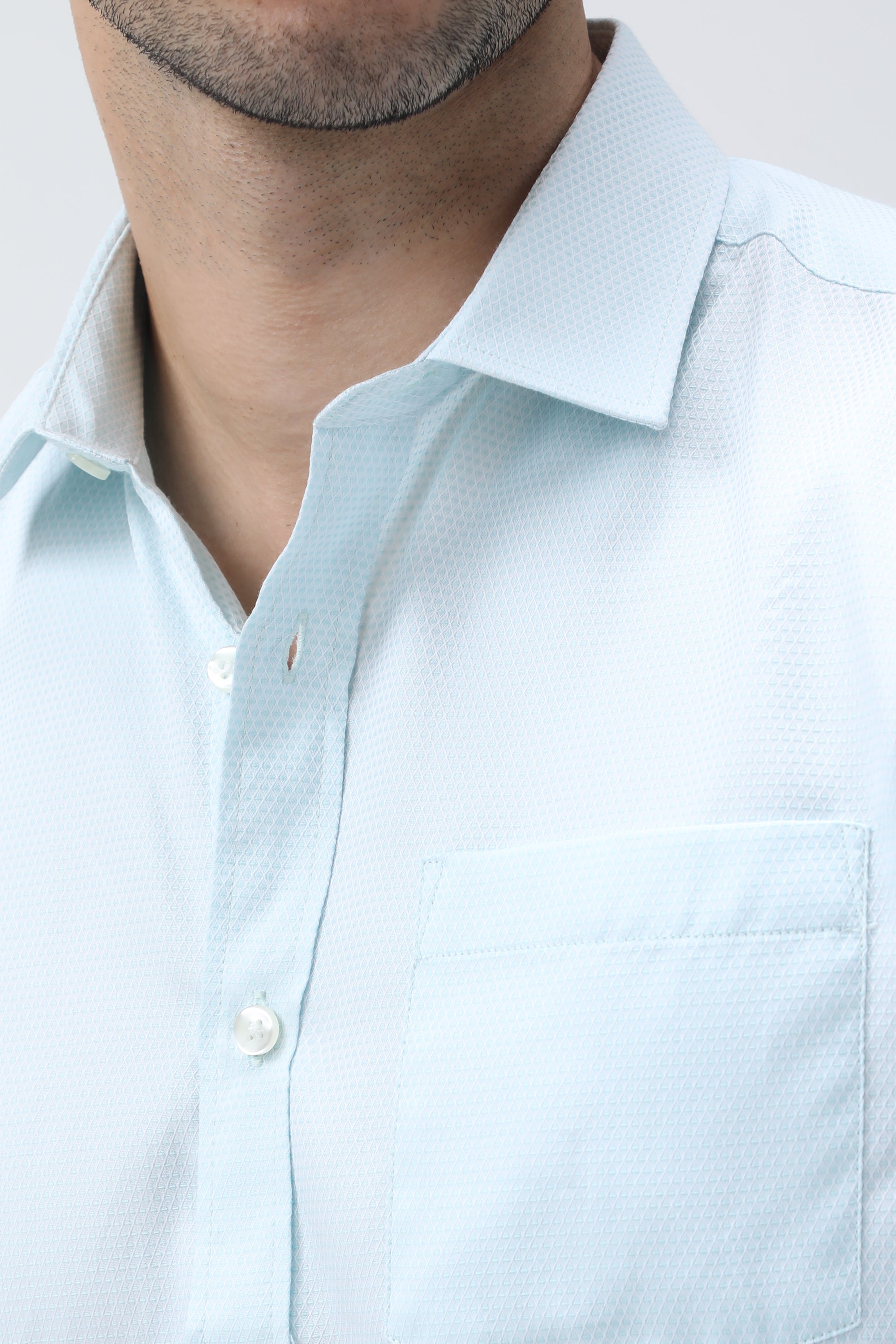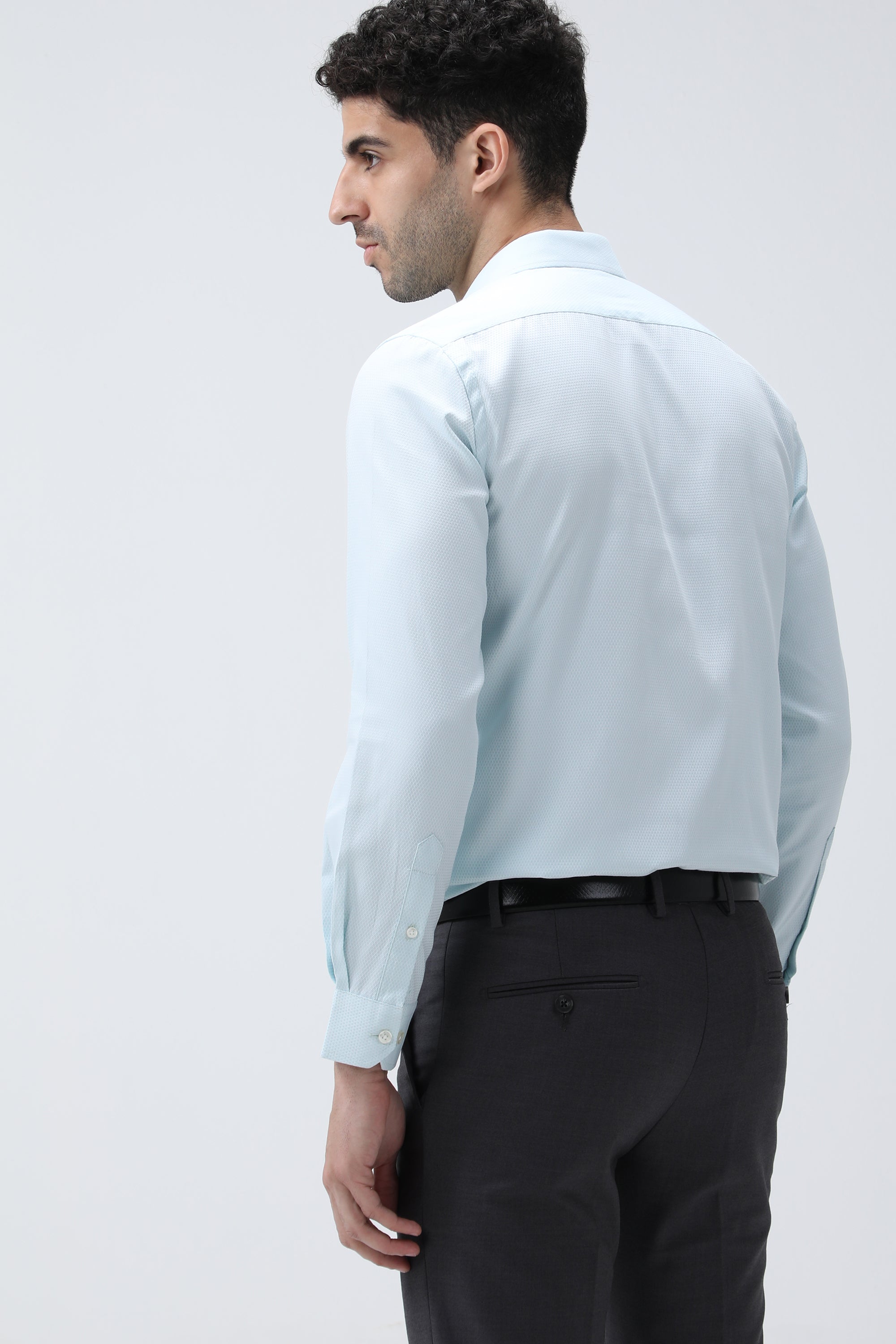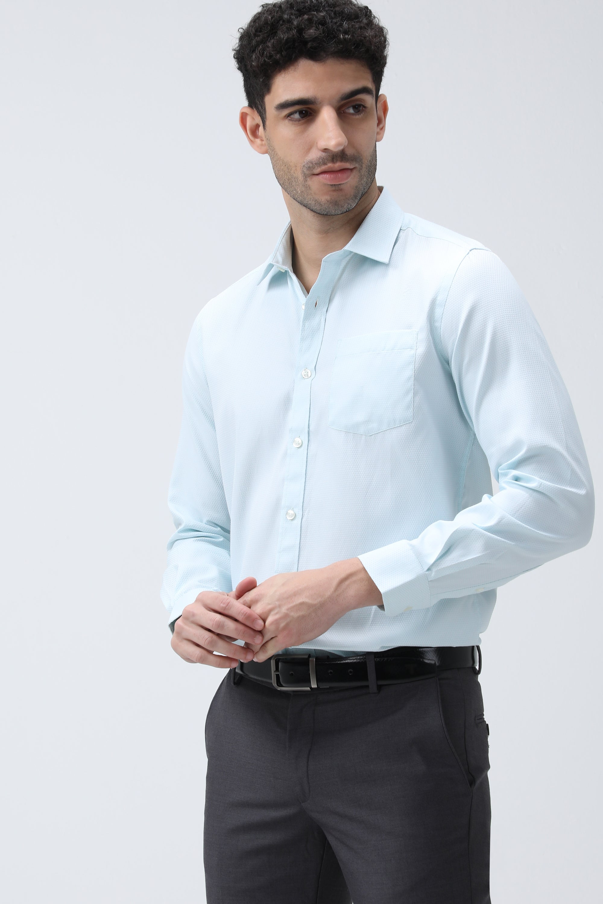 The slim fit dobby cotton blend shirt, featuring full sleeves and a subtle textured pattern. Designed for a sharp, tailored look, it offers both style and comfort, making it a versatile choice for any occasion