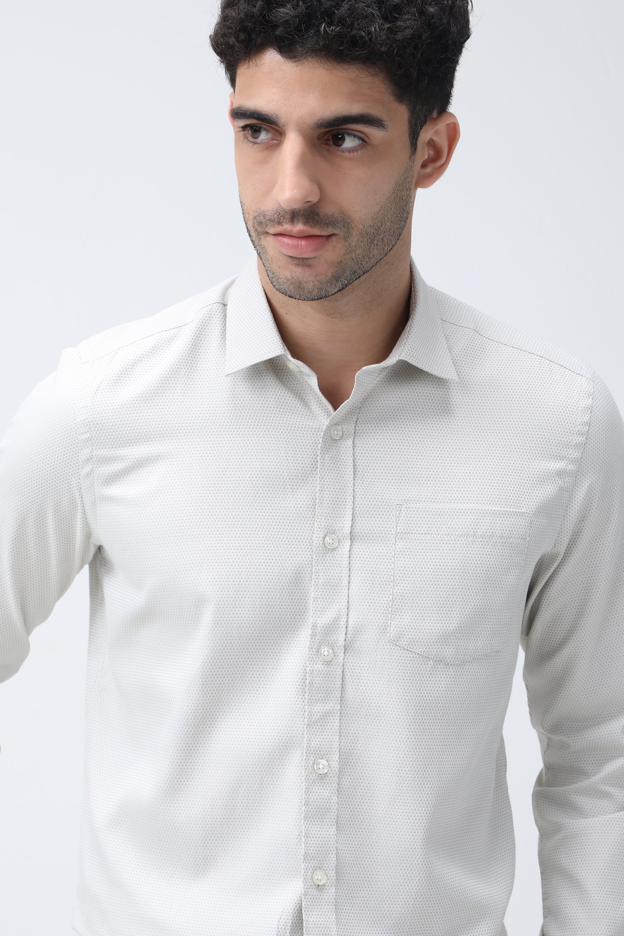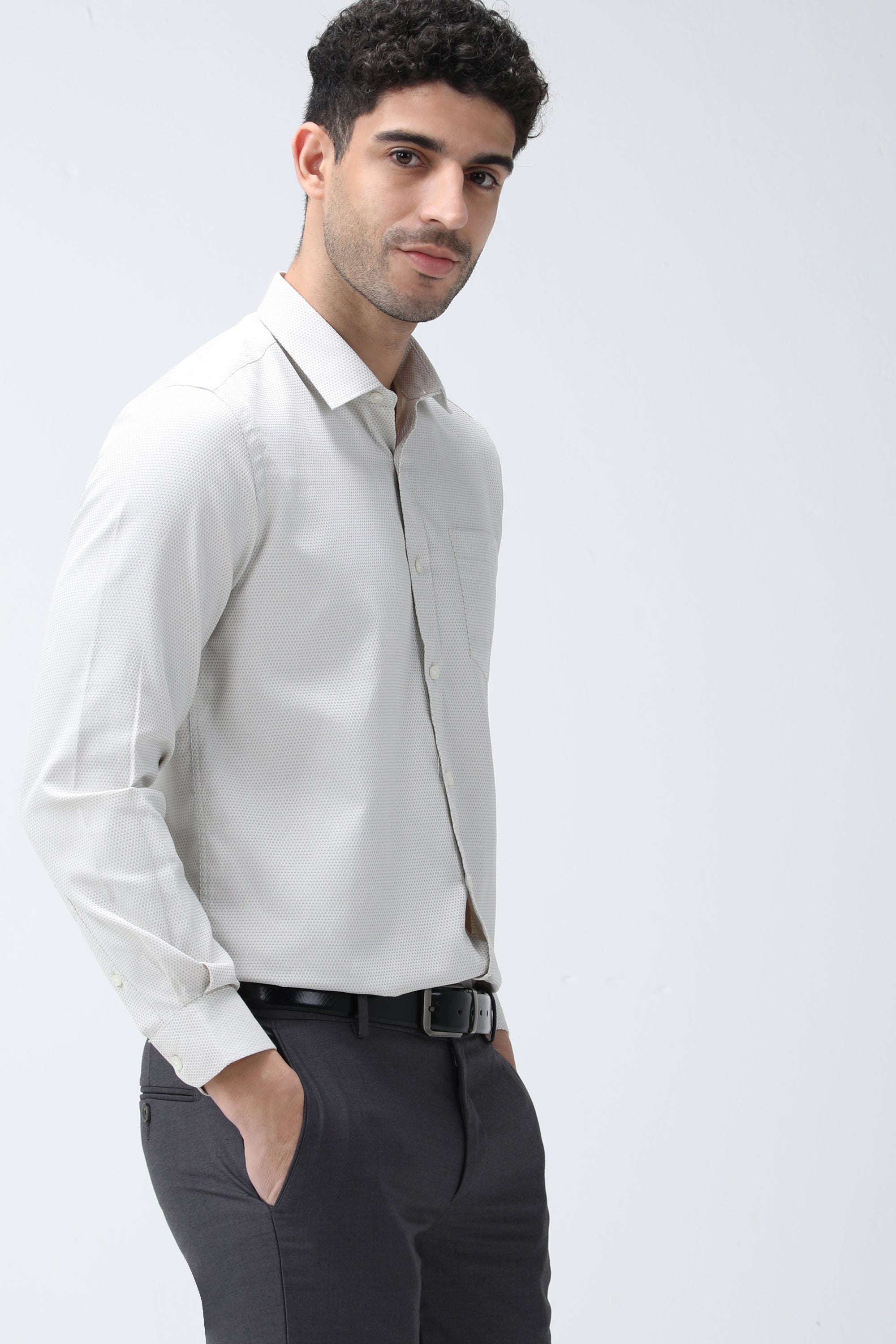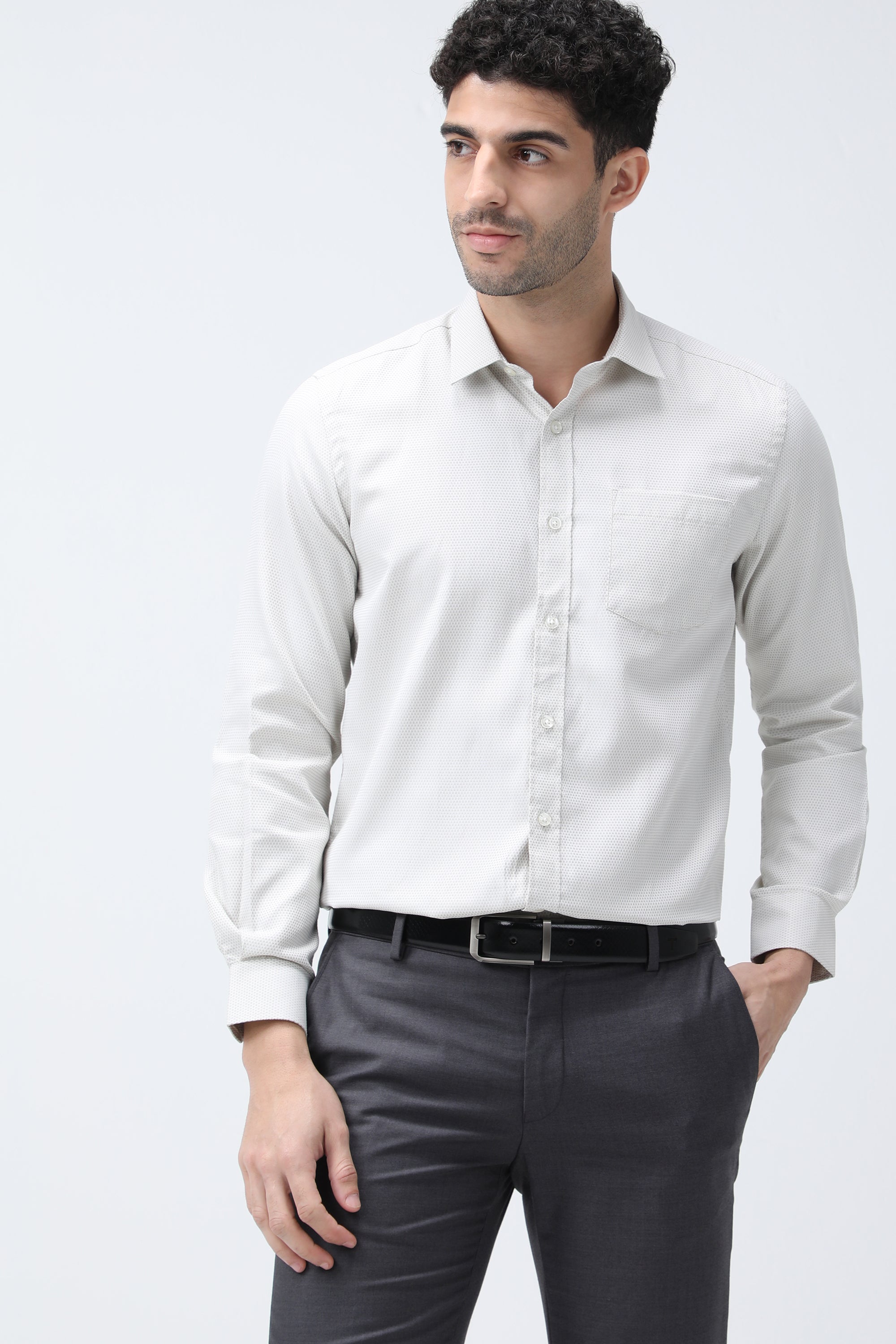 The slim fit dobby cotton blend shirt, featuring full sleeves and a subtle textured pattern. Designed for a sharp, tailored look, it offers both style and comfort, making it a versatile choice for any occasion