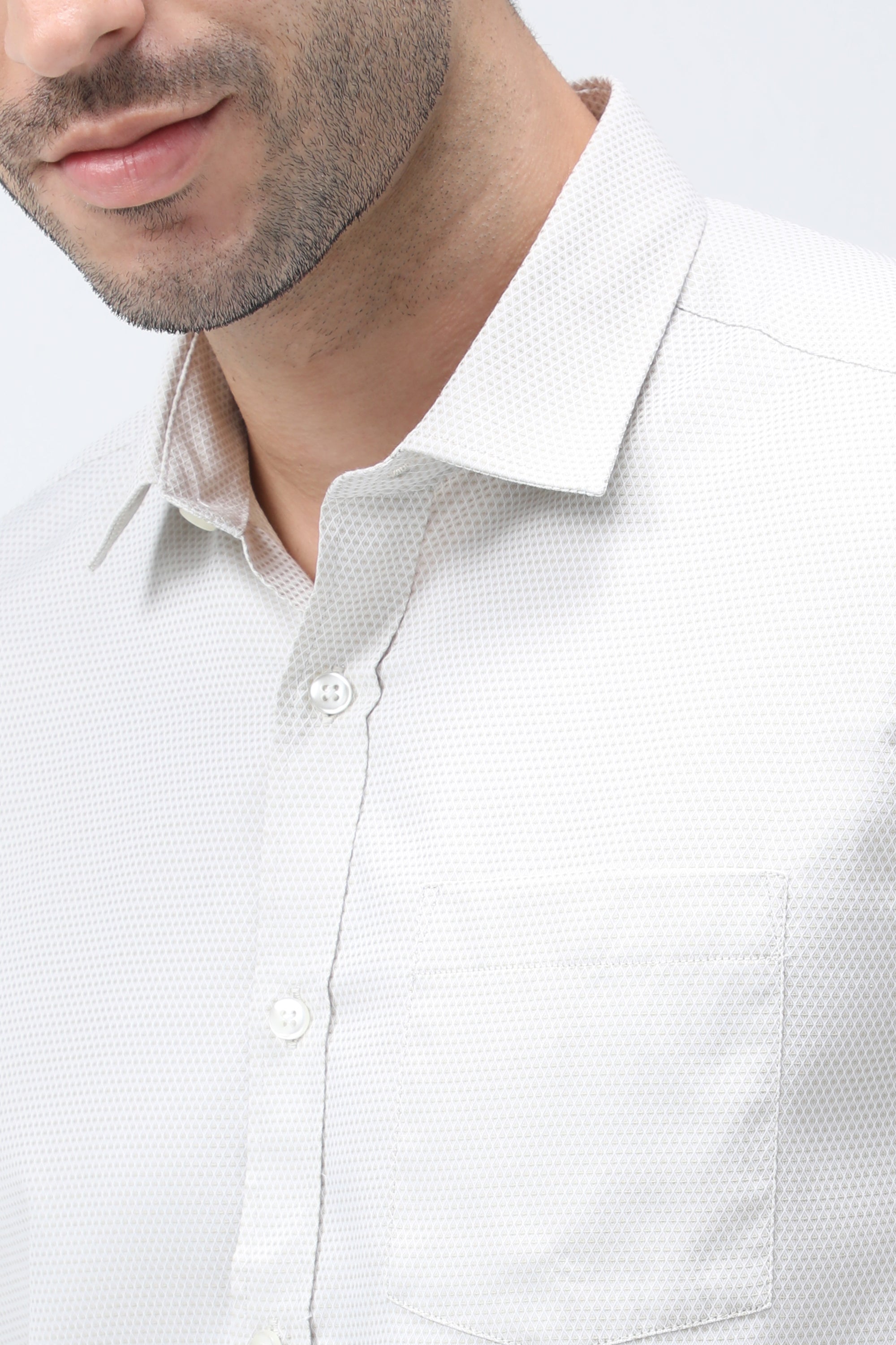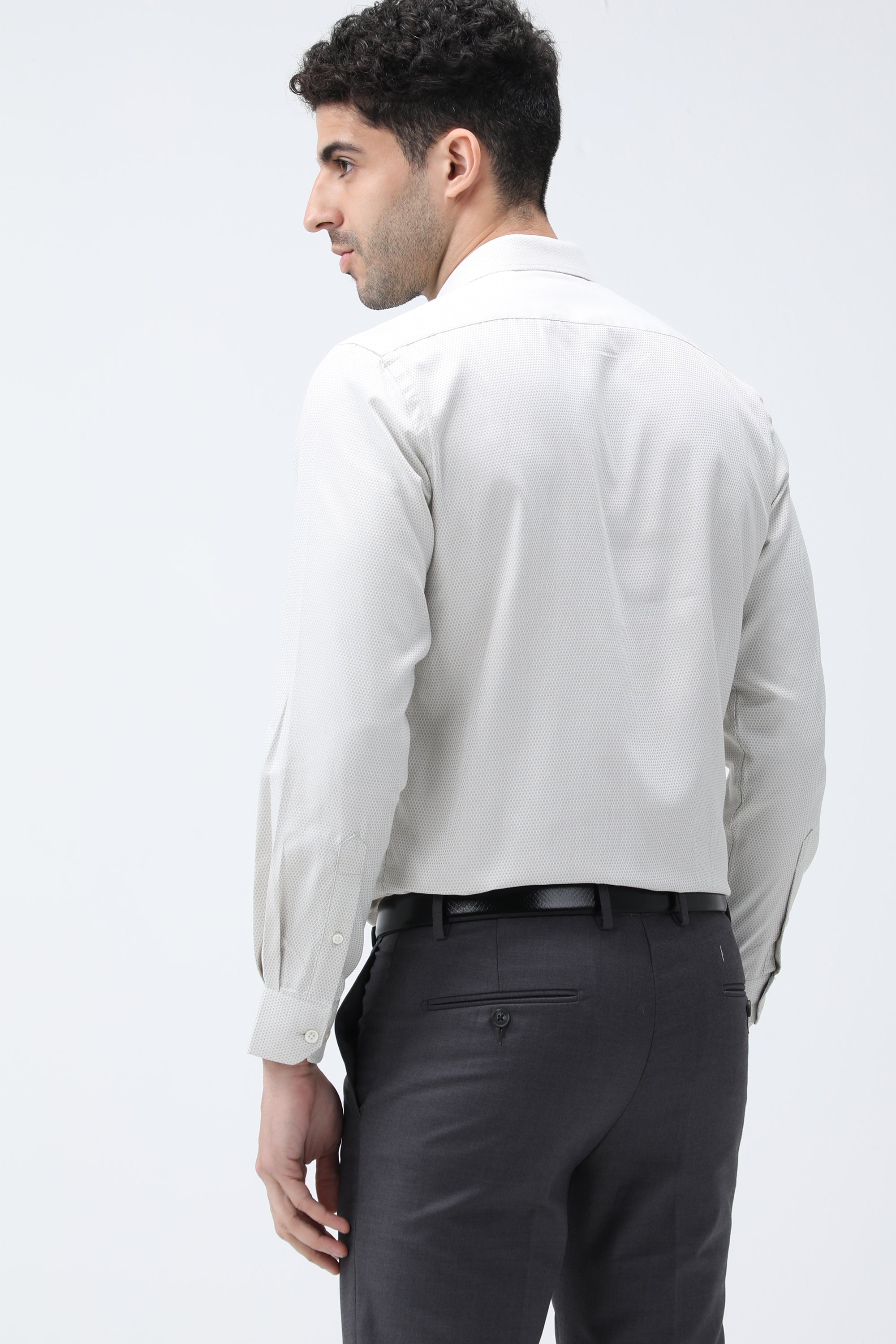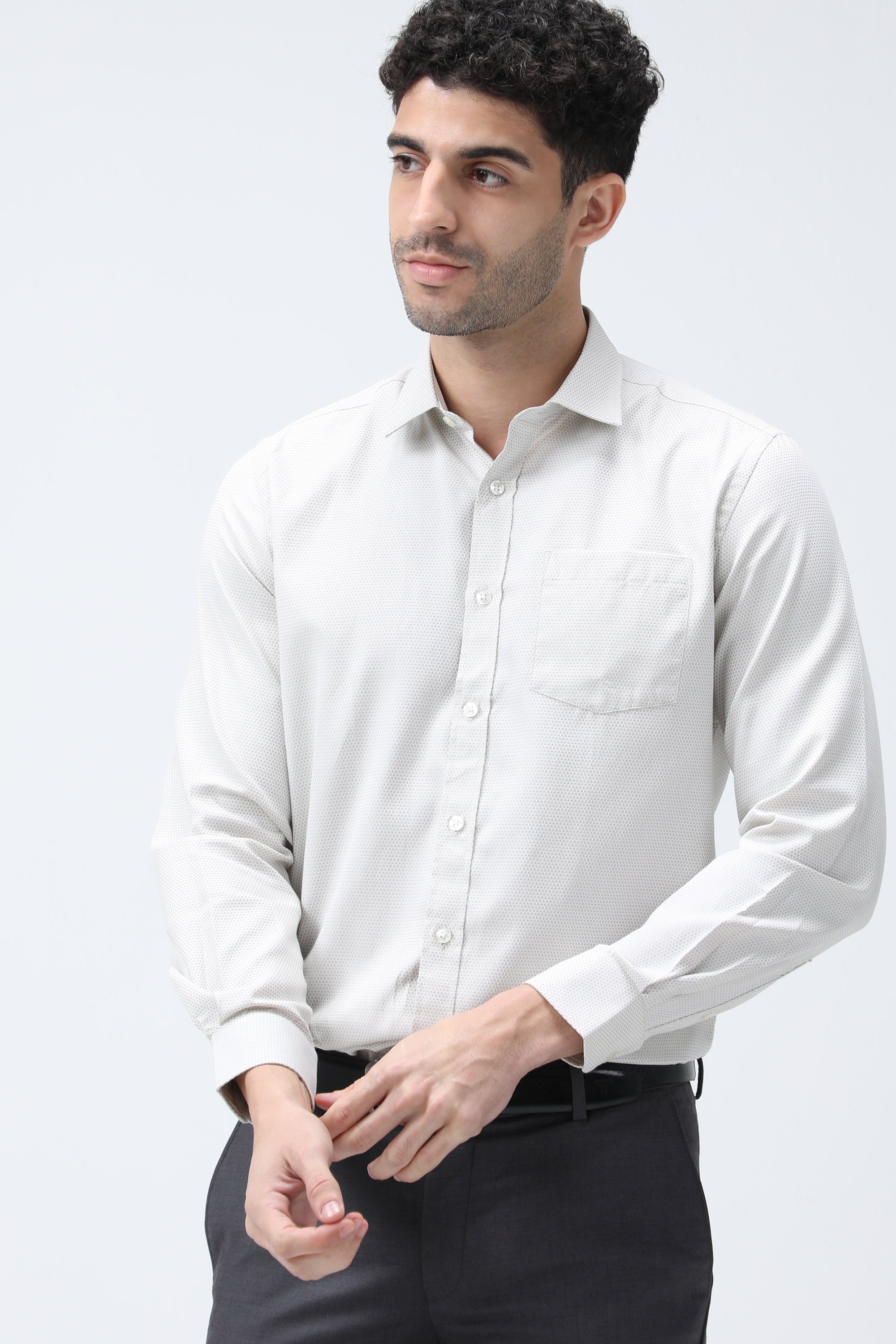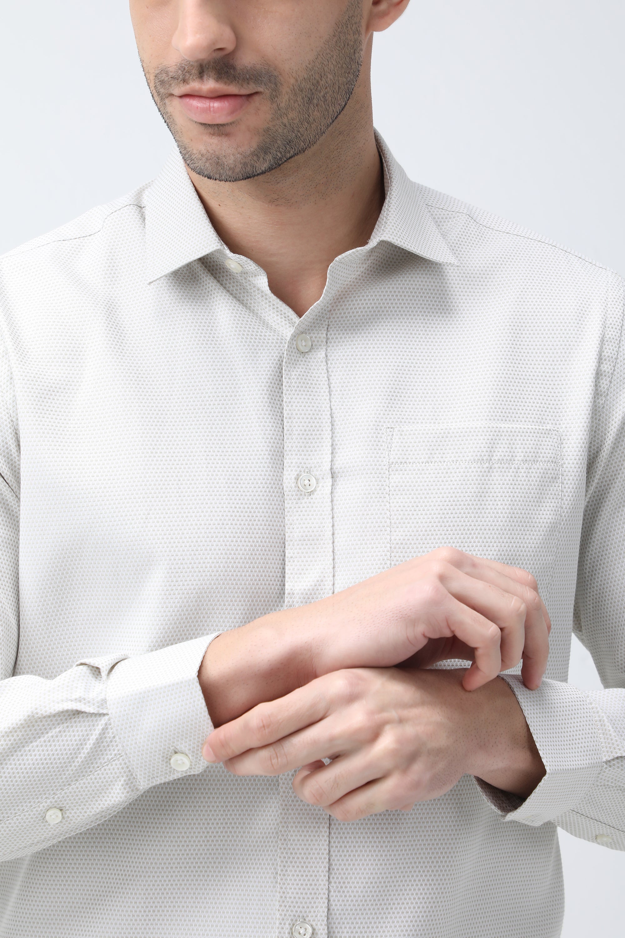 The slim fit dobby cotton blend shirt, featuring full sleeves and a subtle textured pattern. Designed for a sharp, tailored look, it offers both style and comfort, making it a versatile choice for any occasion