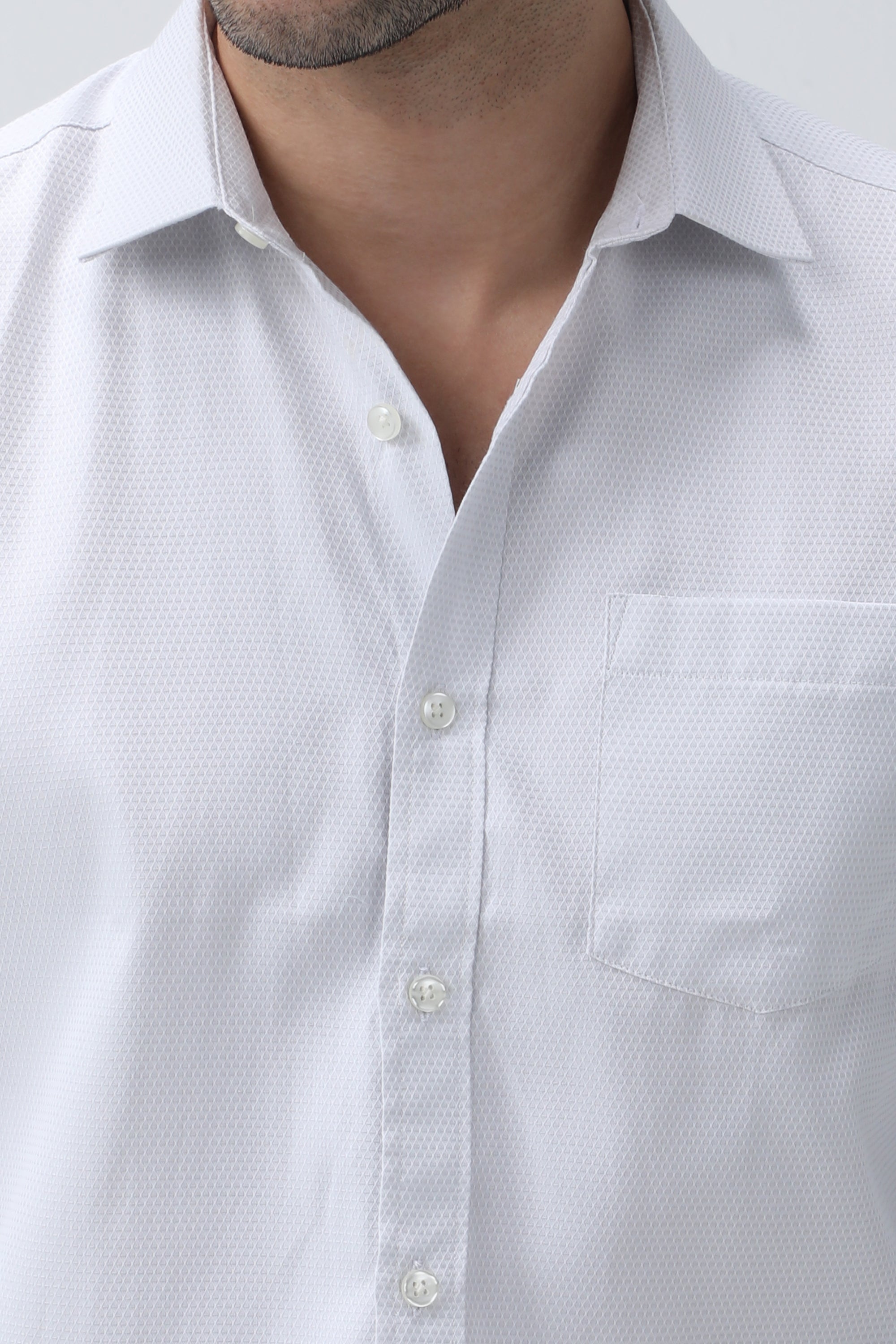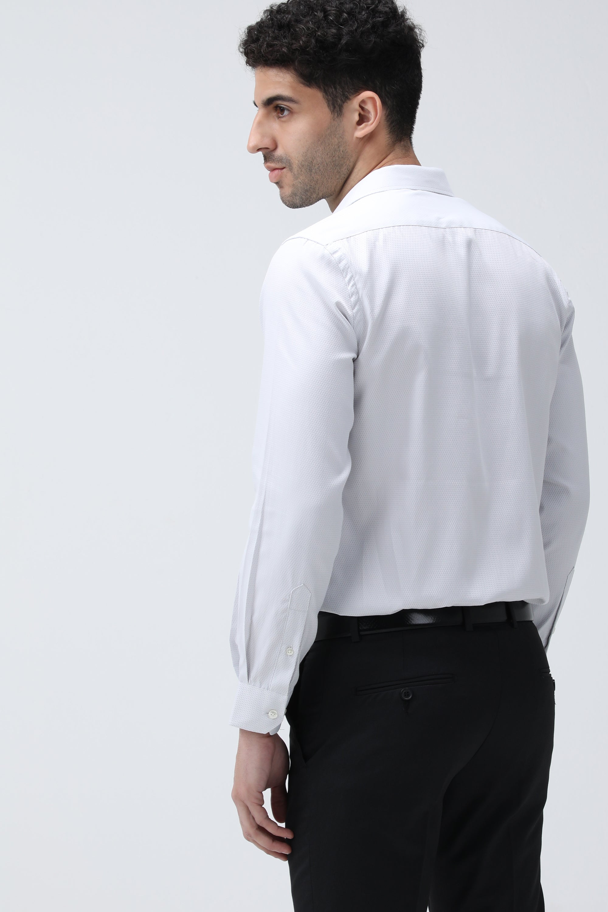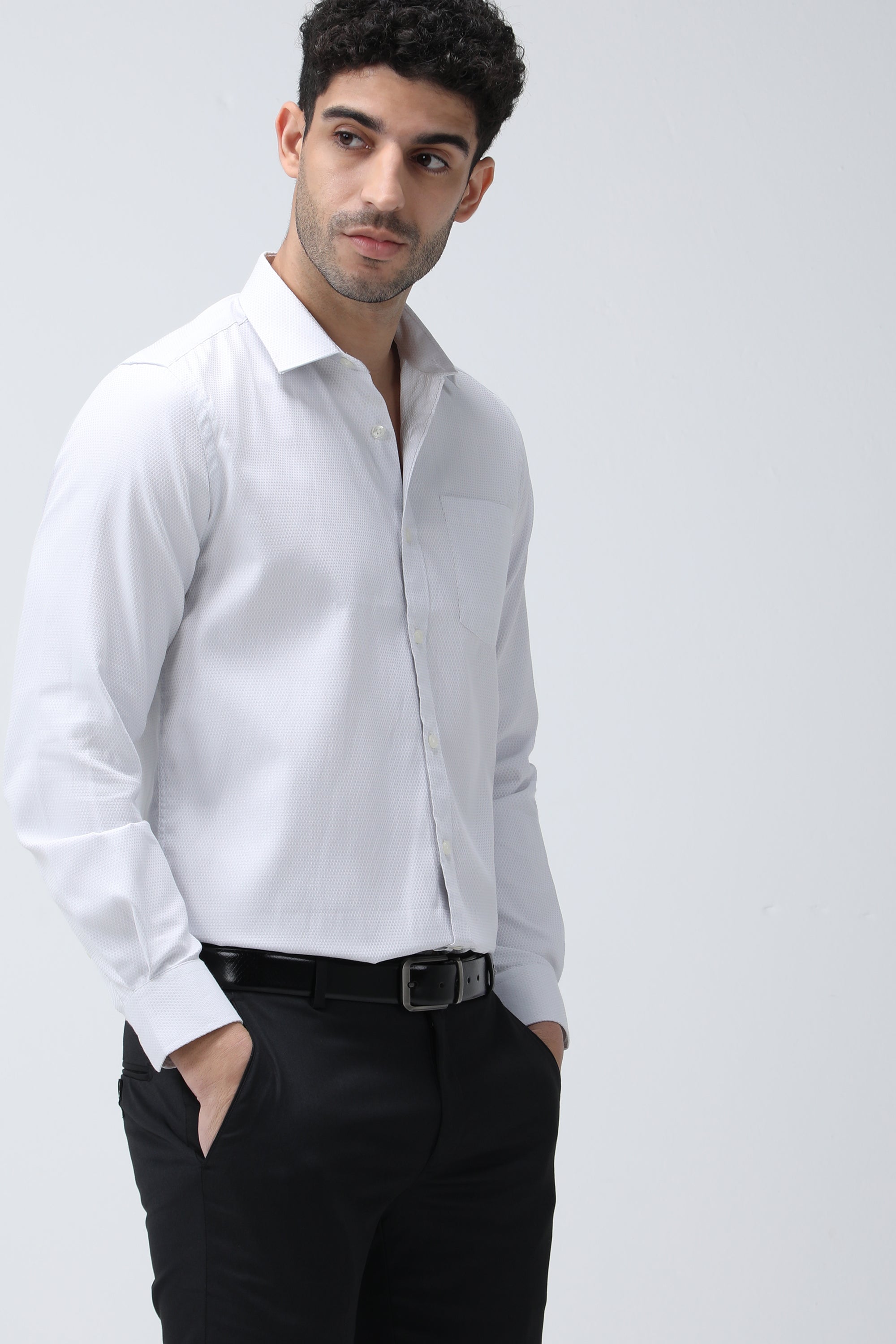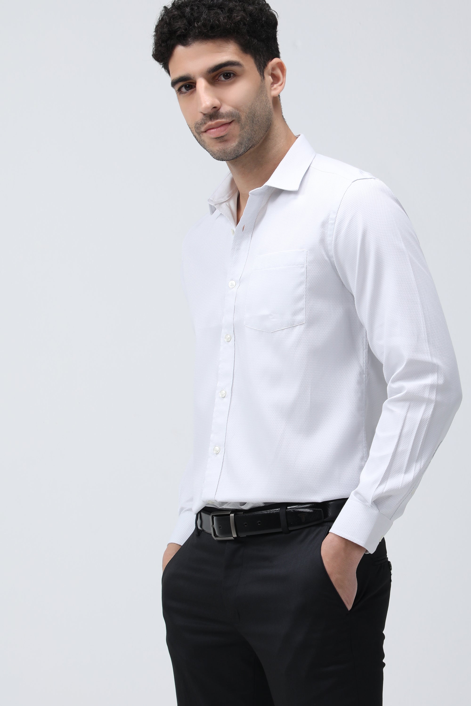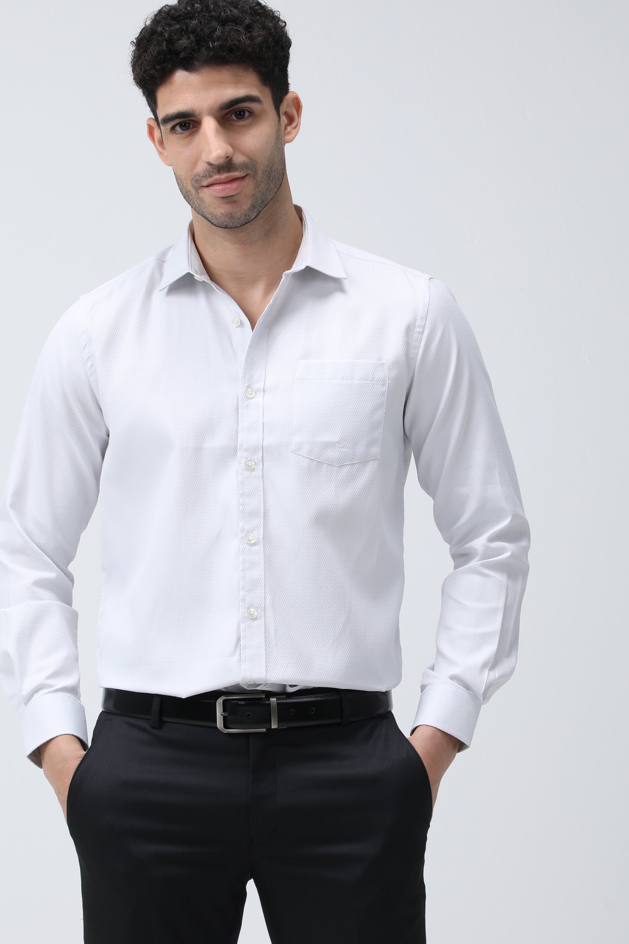 The slim fit dobby cotton blend shirt, featuring full sleeves and a subtle textured pattern. Designed for a sharp, tailored look, it offers both style and comfort, making it a versatile choice for any occasion