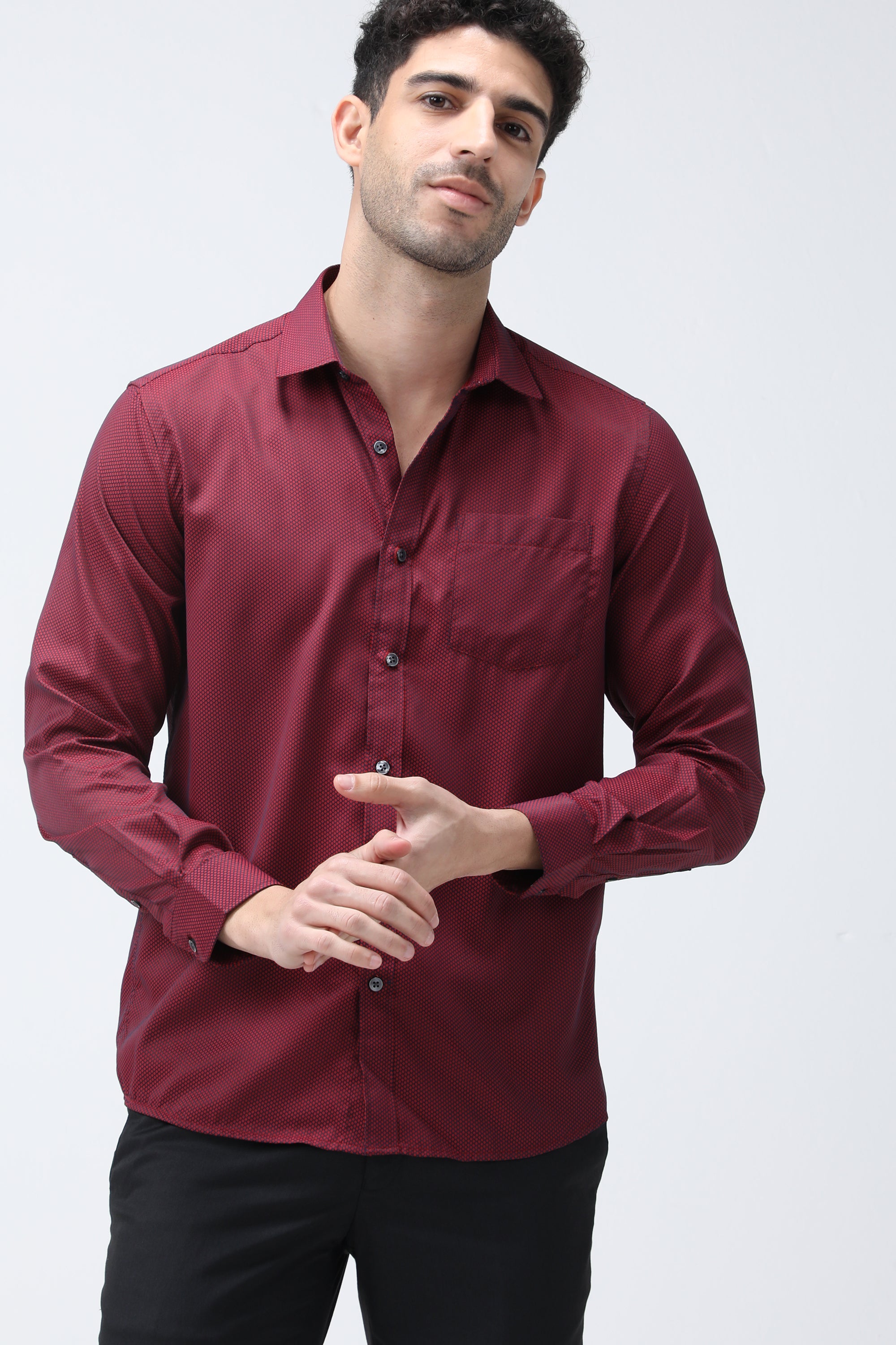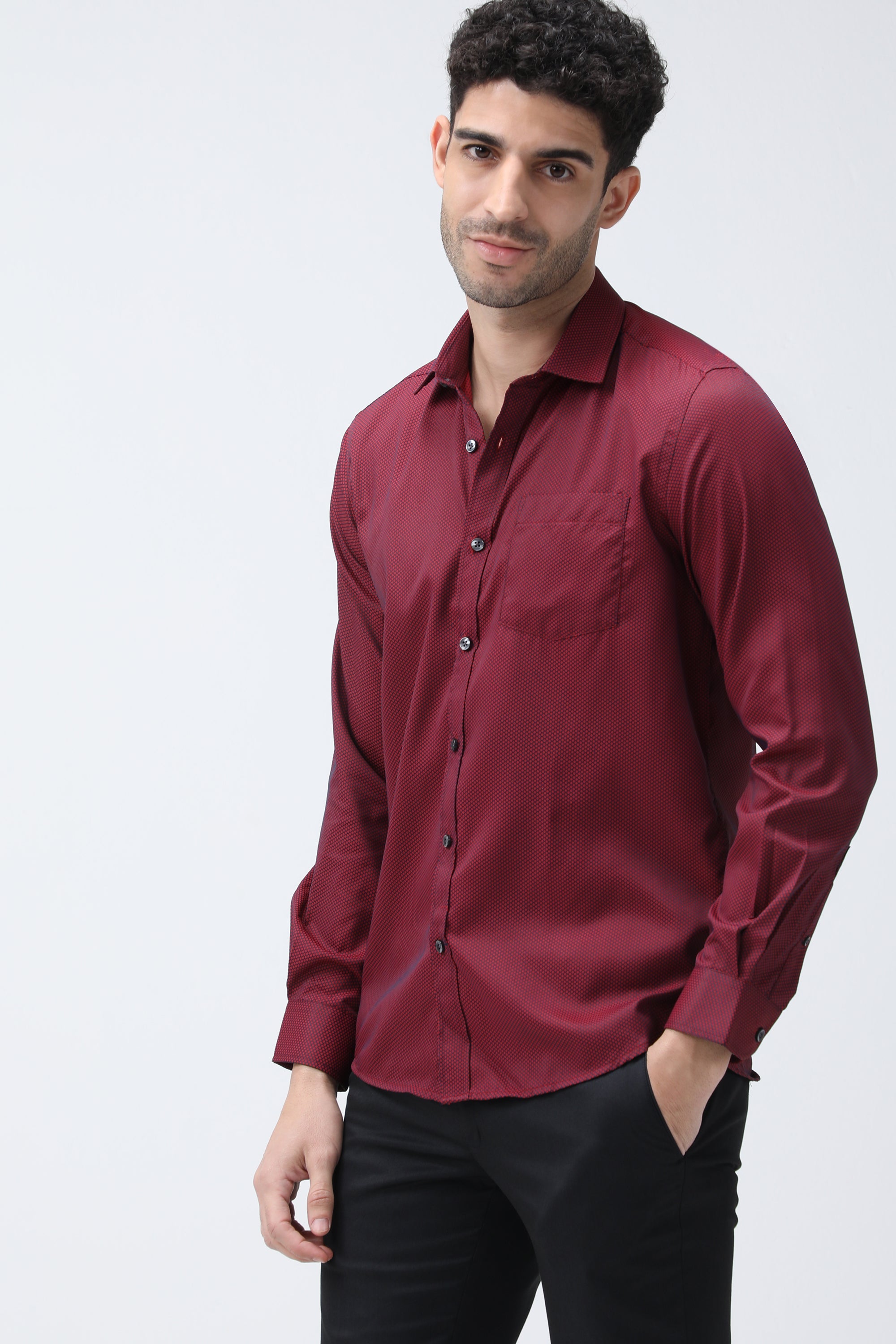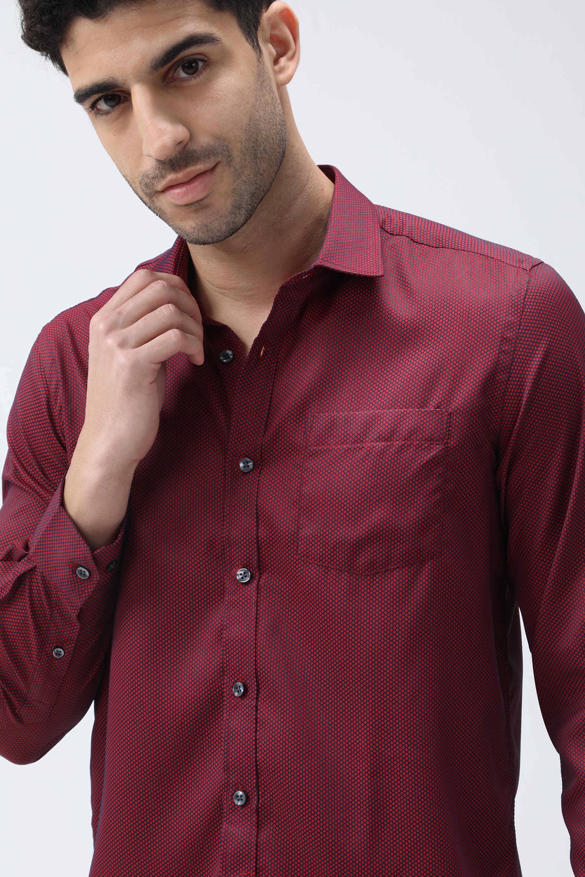 King Richard Dobby Slim Fit Full Sleeved Cotton Blend Shirt - Red