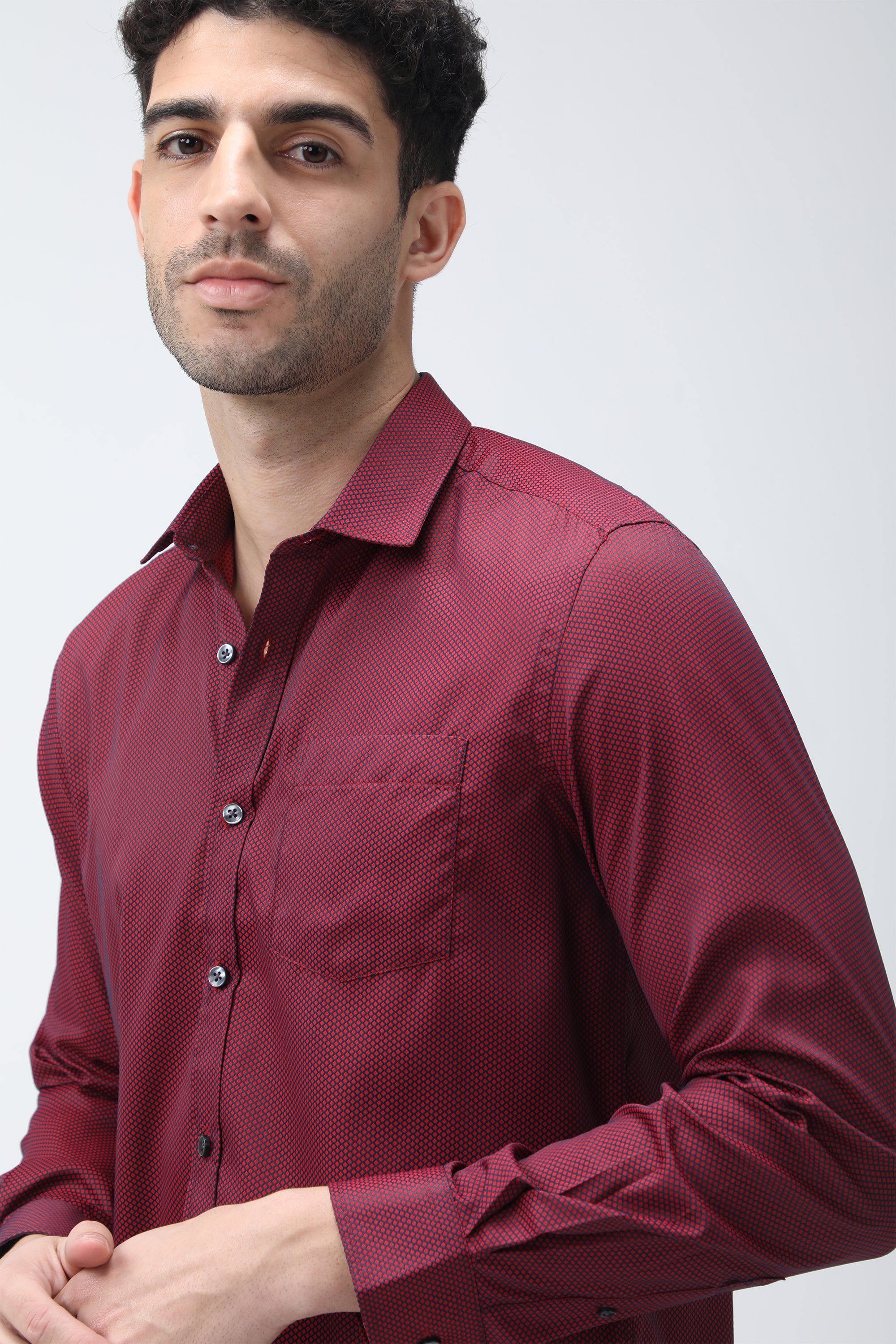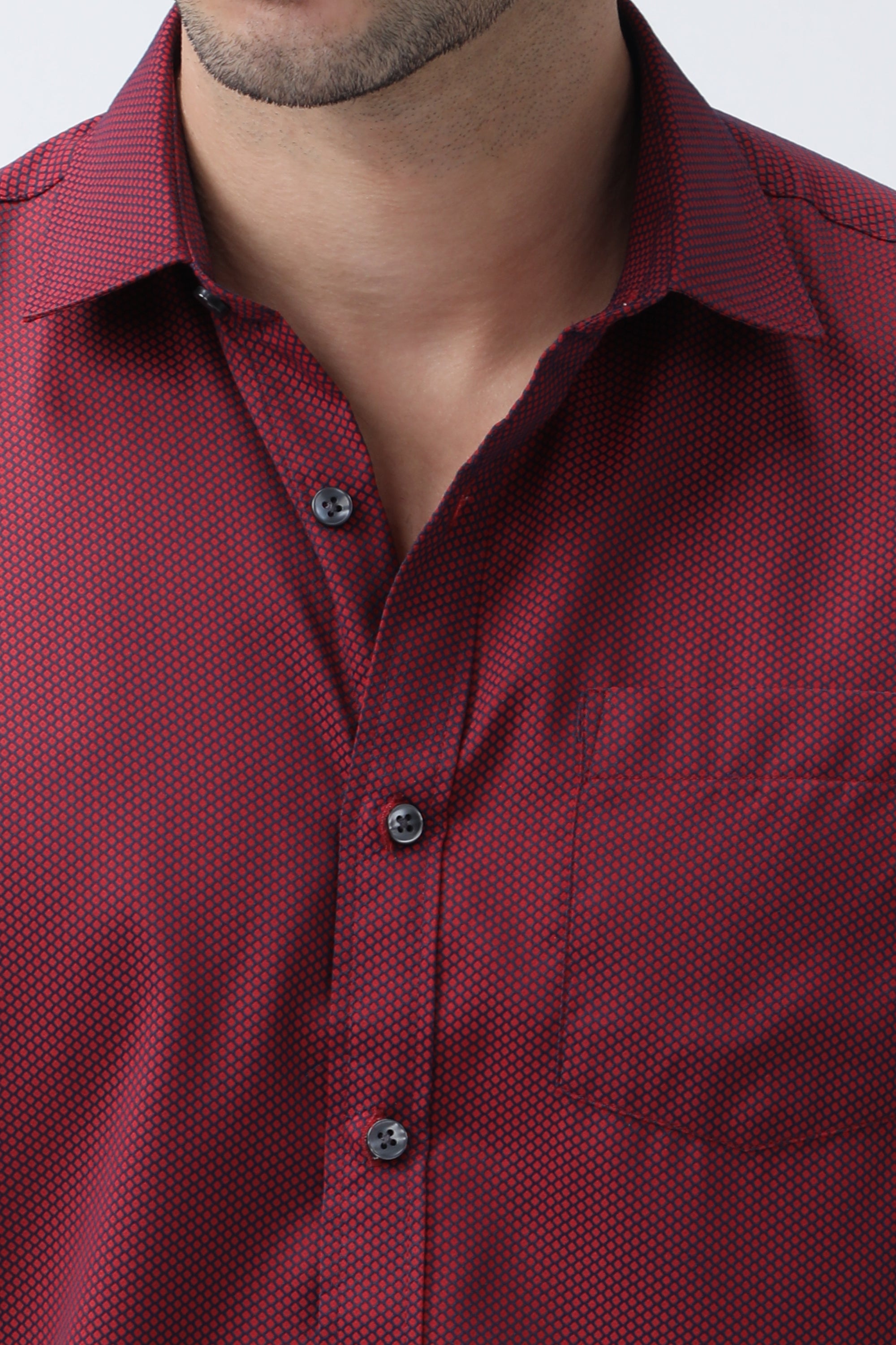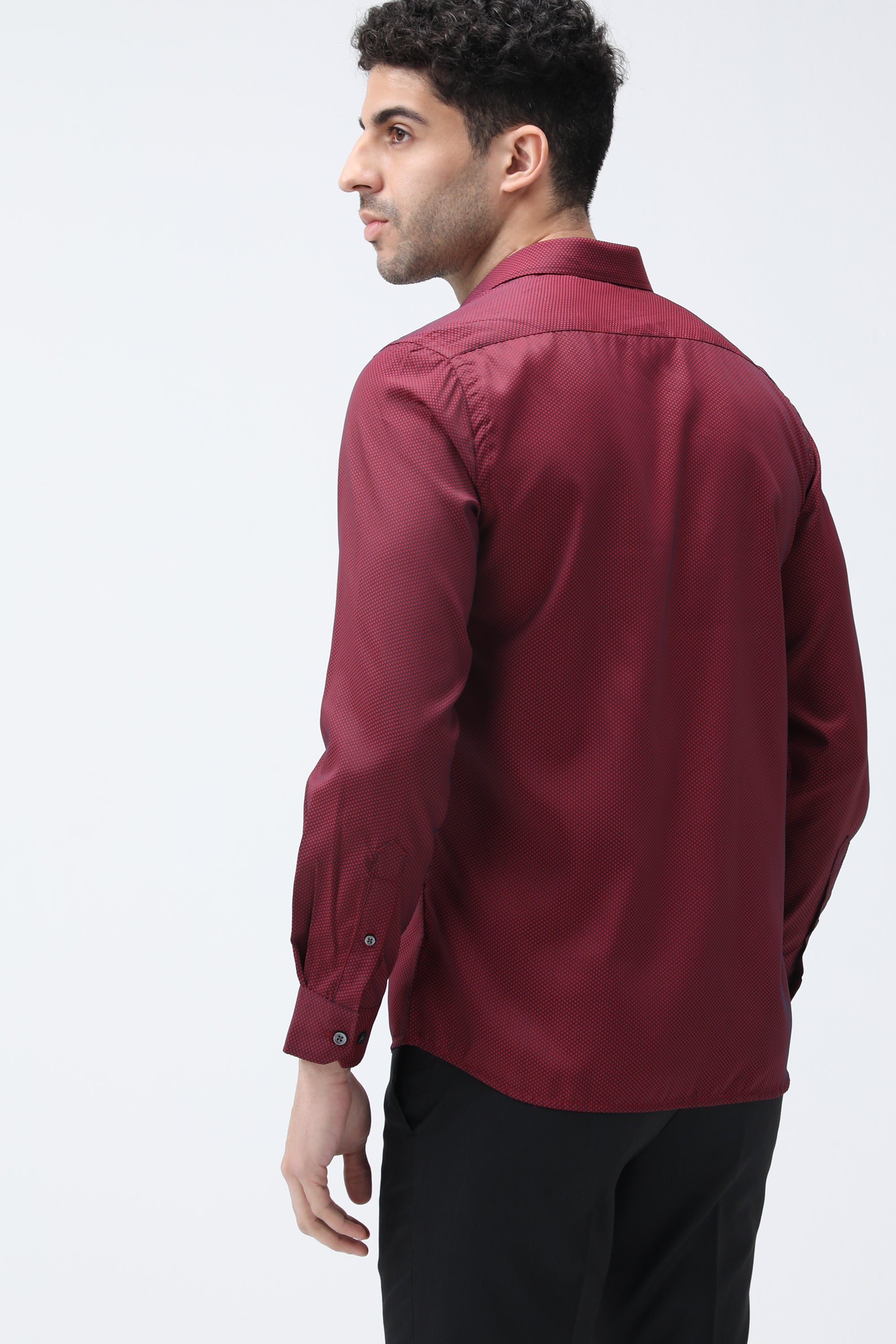 King Richard Dobby Slim Fit Full Sleeved Cotton Blend Shirt - Red