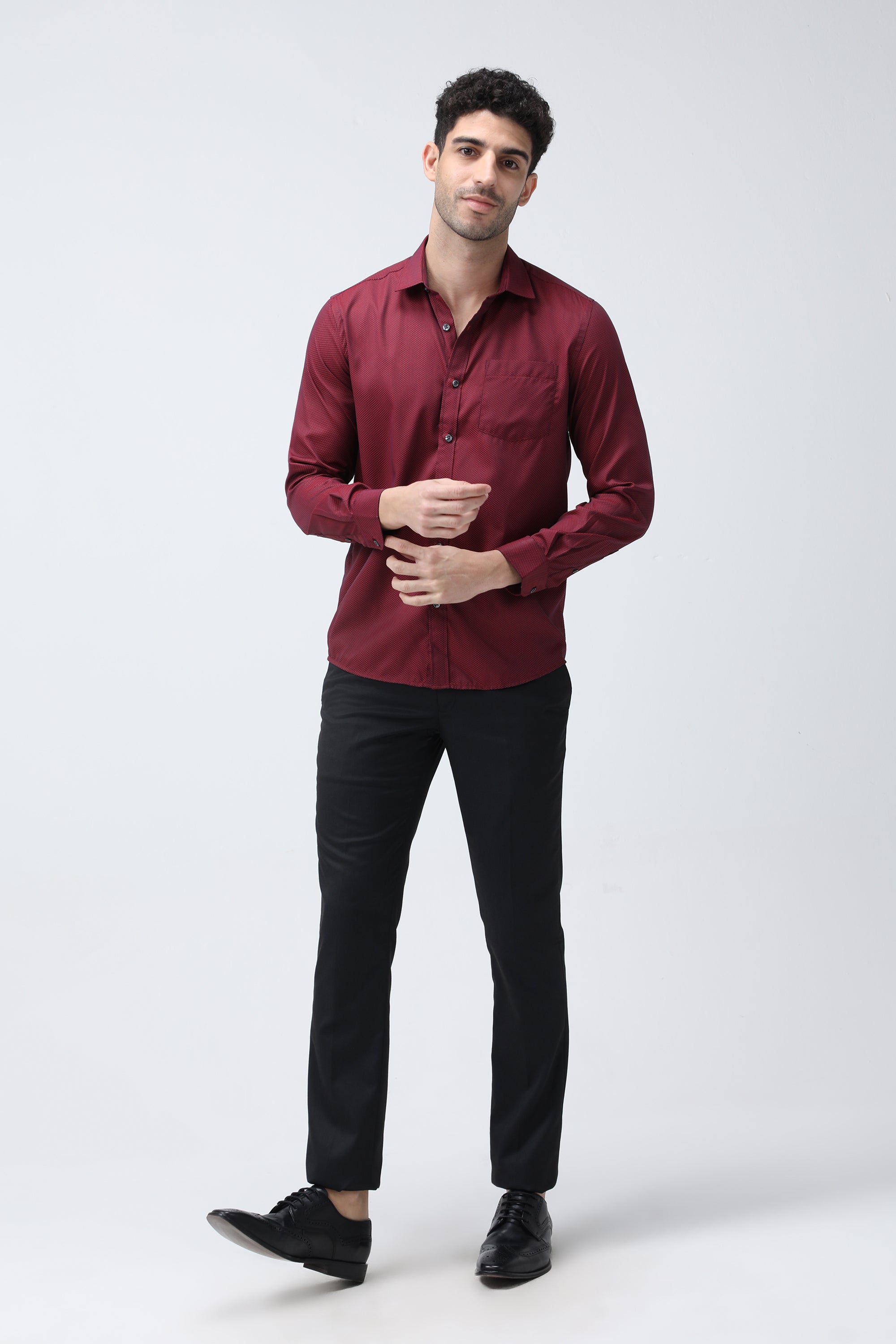 The slim fit dobby cotton blend shirt, featuring full sleeves and a subtle textured pattern. Designed for a sharp, tailored look, it offers both style and comfort, making it a versatile choice for any occasion