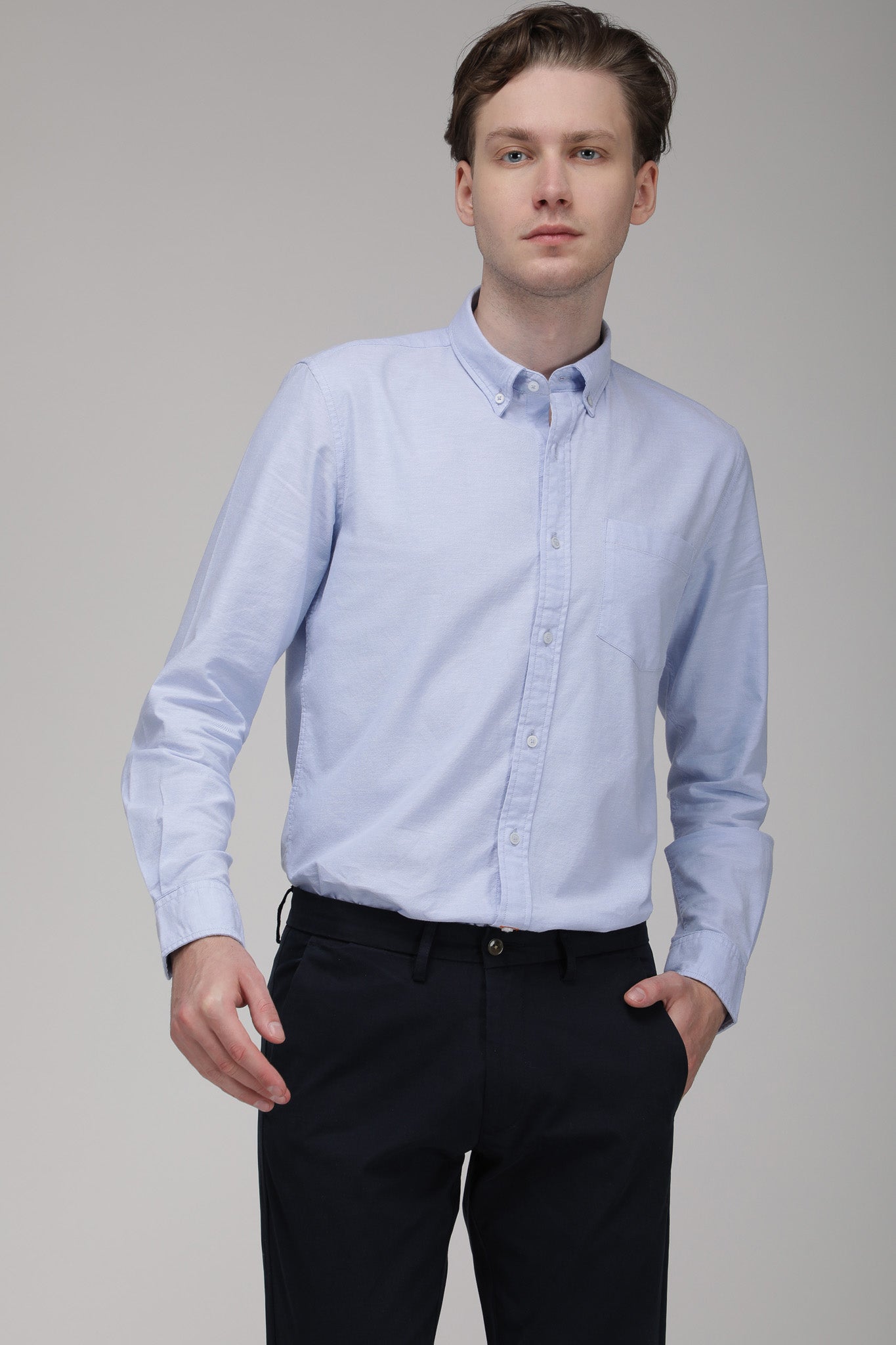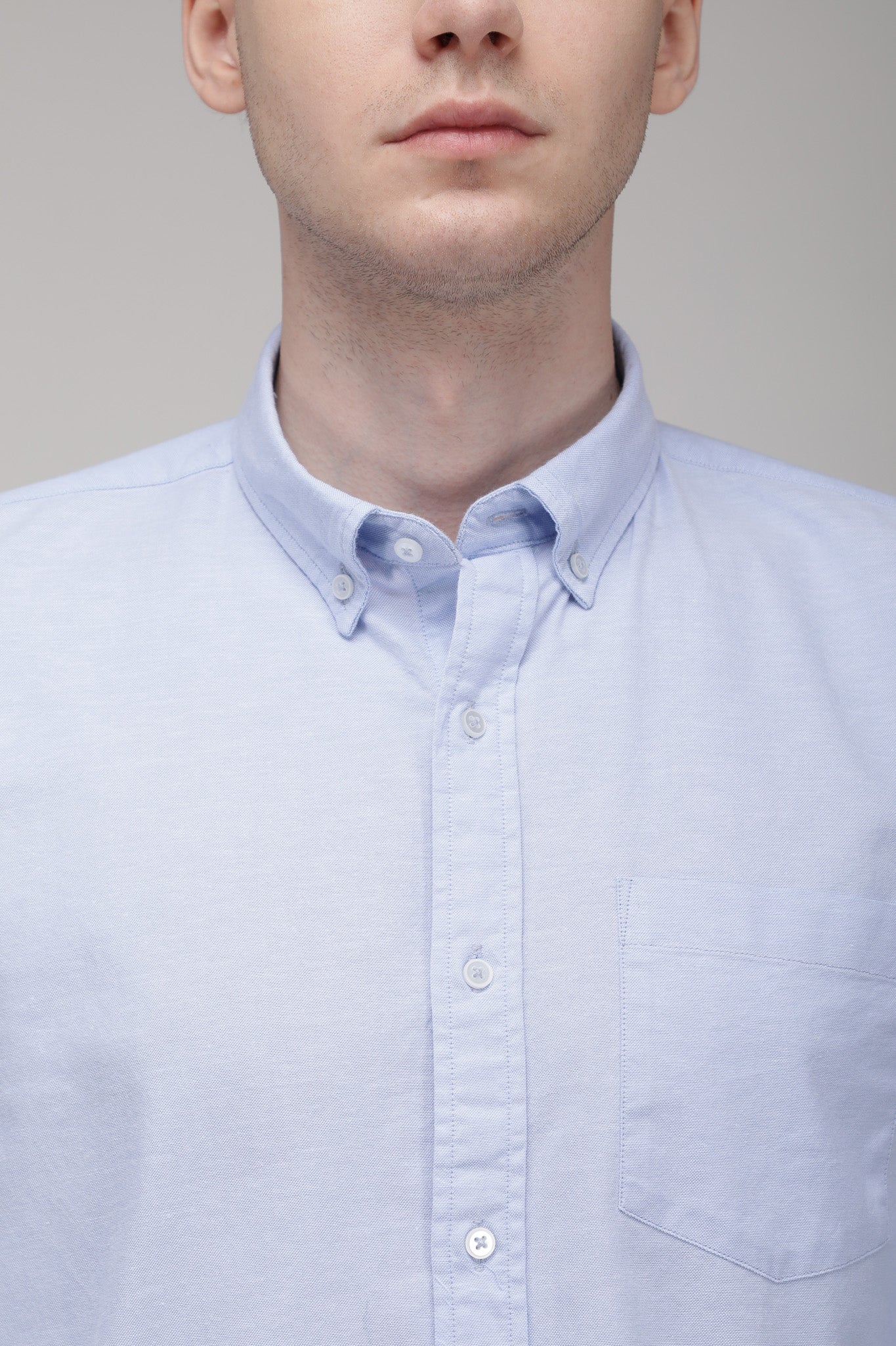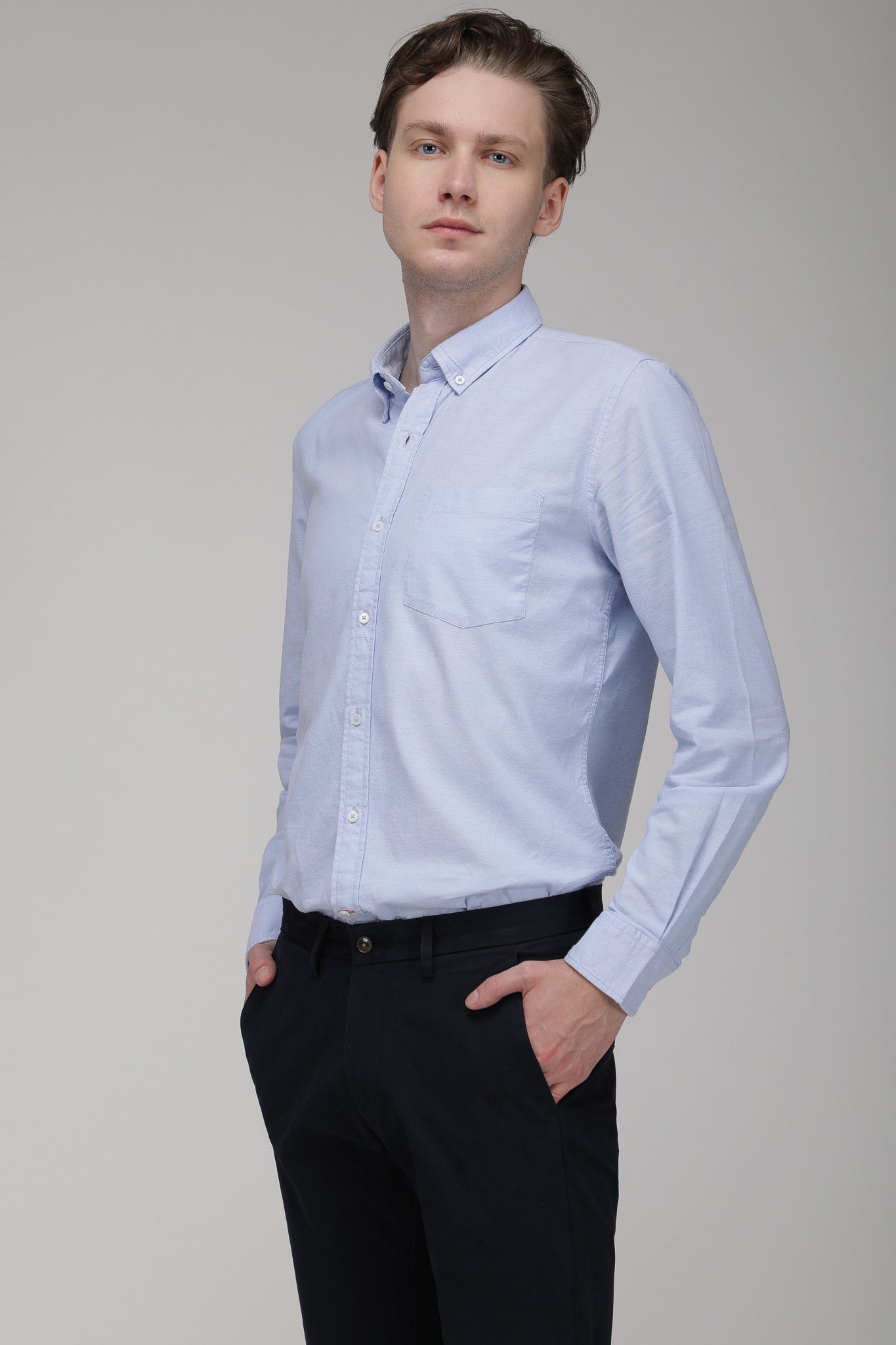 Bare Brown Solid Cotton Oxford Shirt, Slim Fit with Full Sleeves - Sky Blue