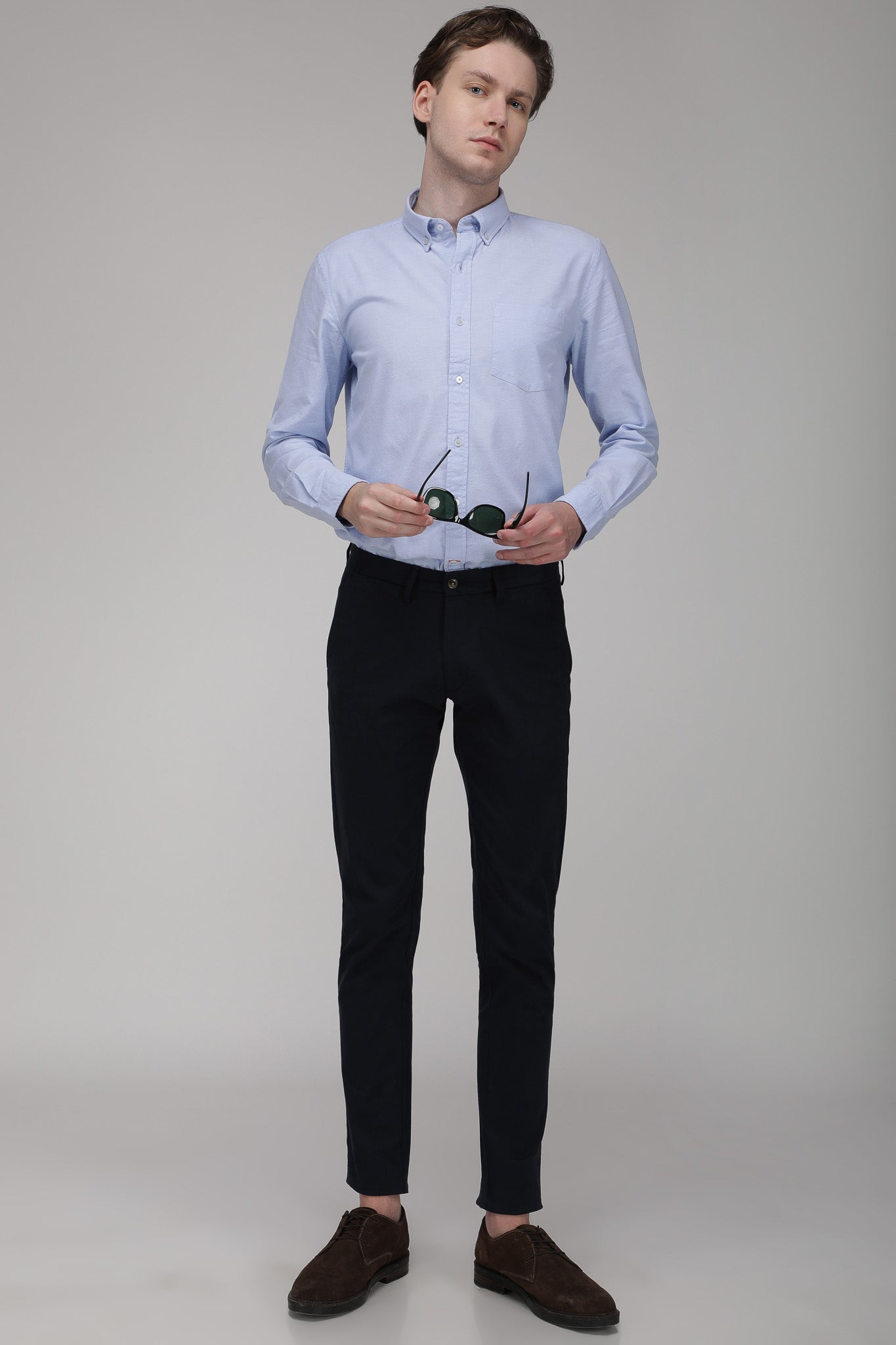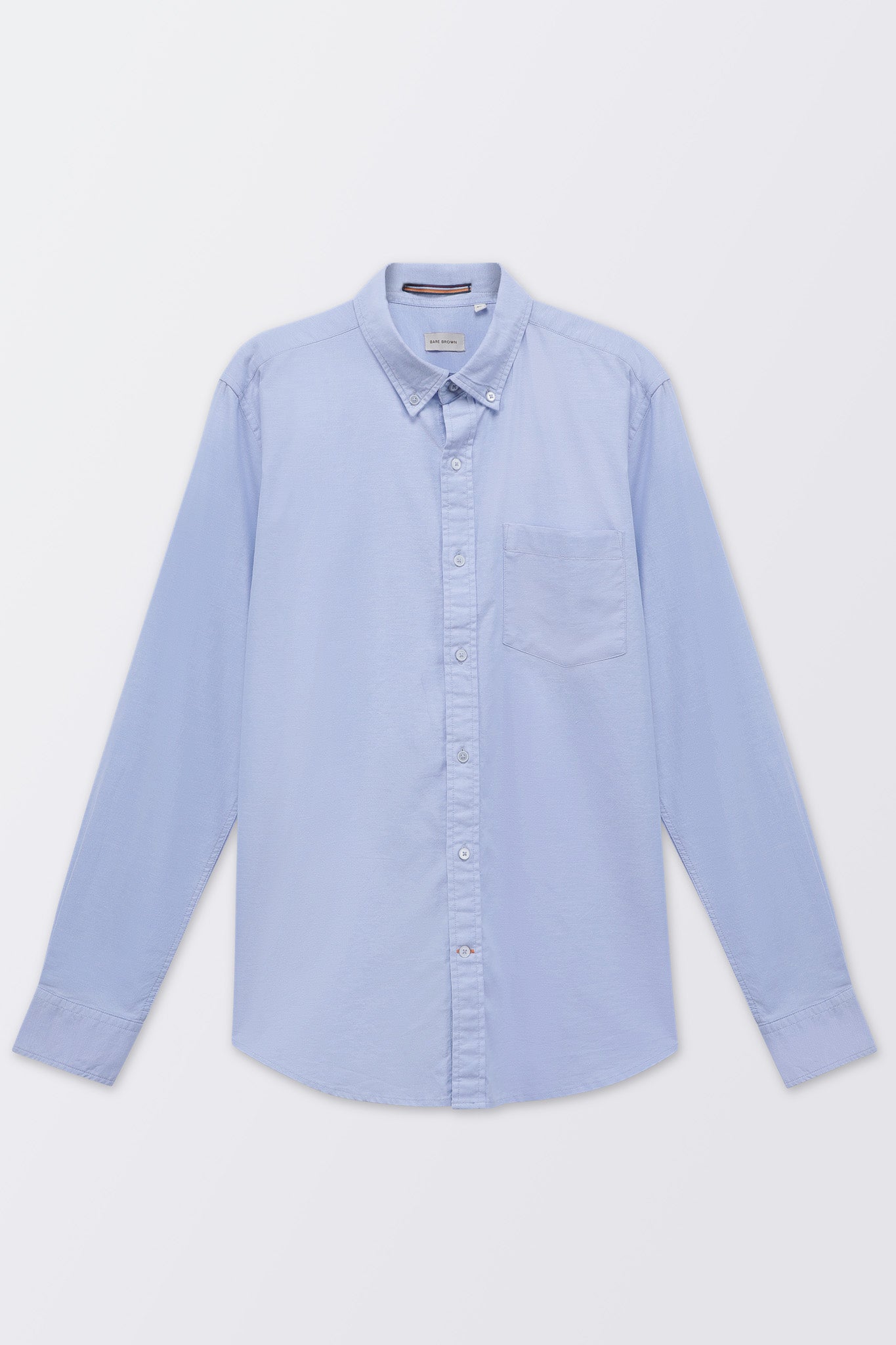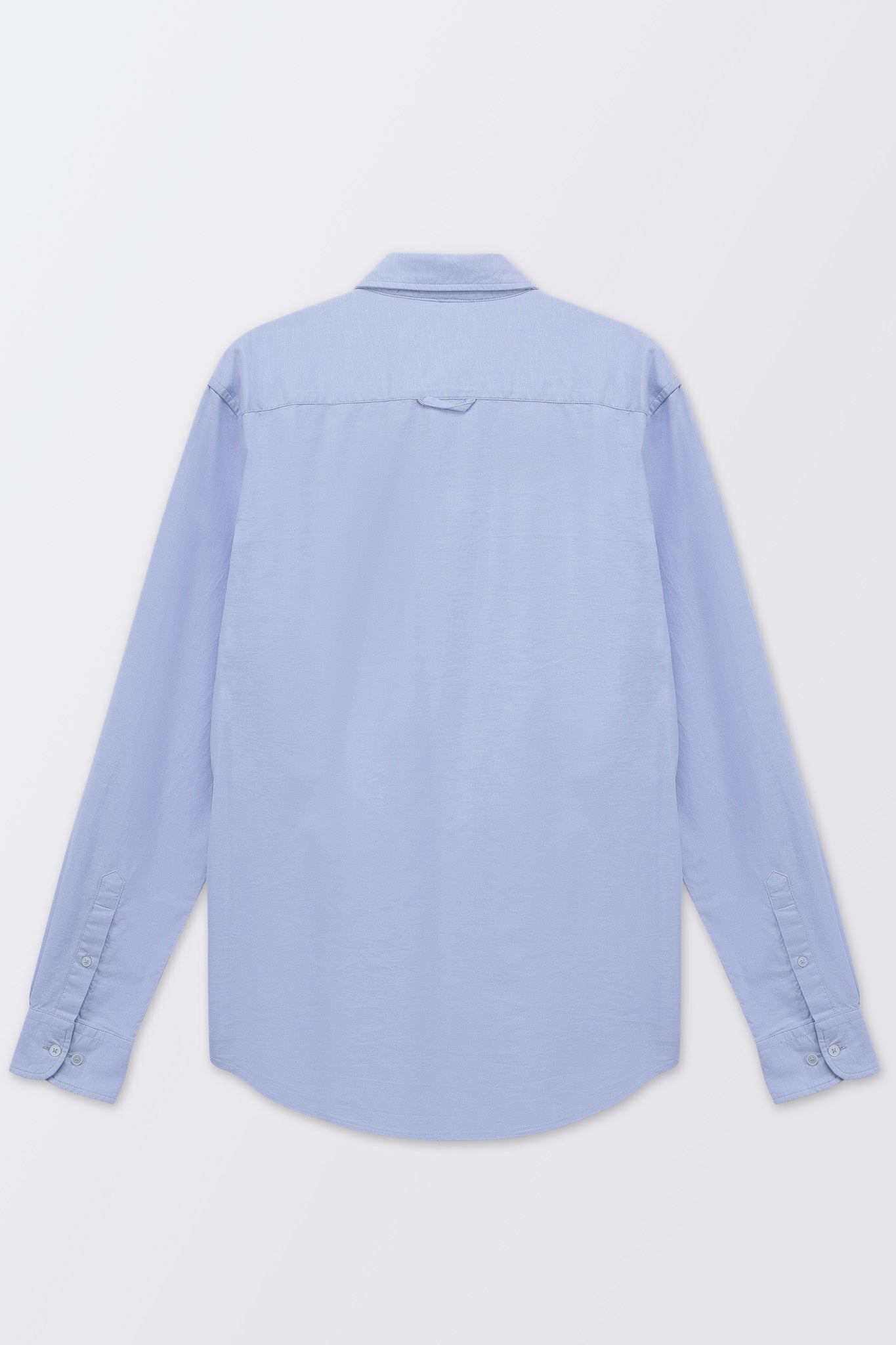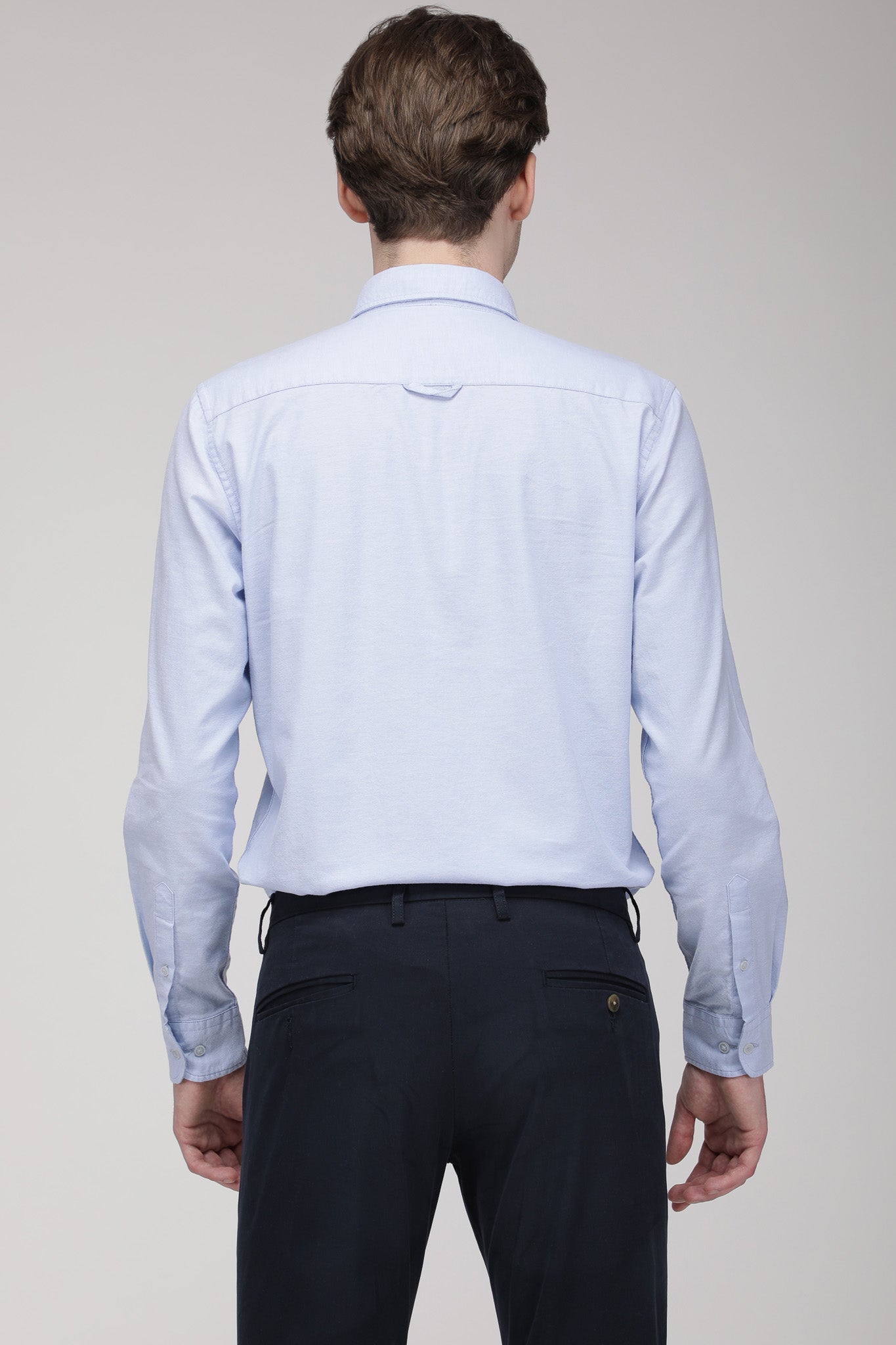 Bare Brown Solid Cotton Oxford Shirt, Slim Fit with Full Sleeves - Sky Blue