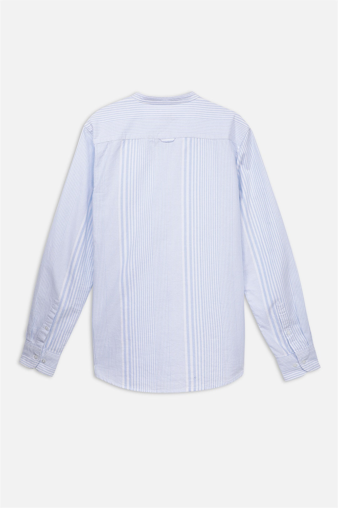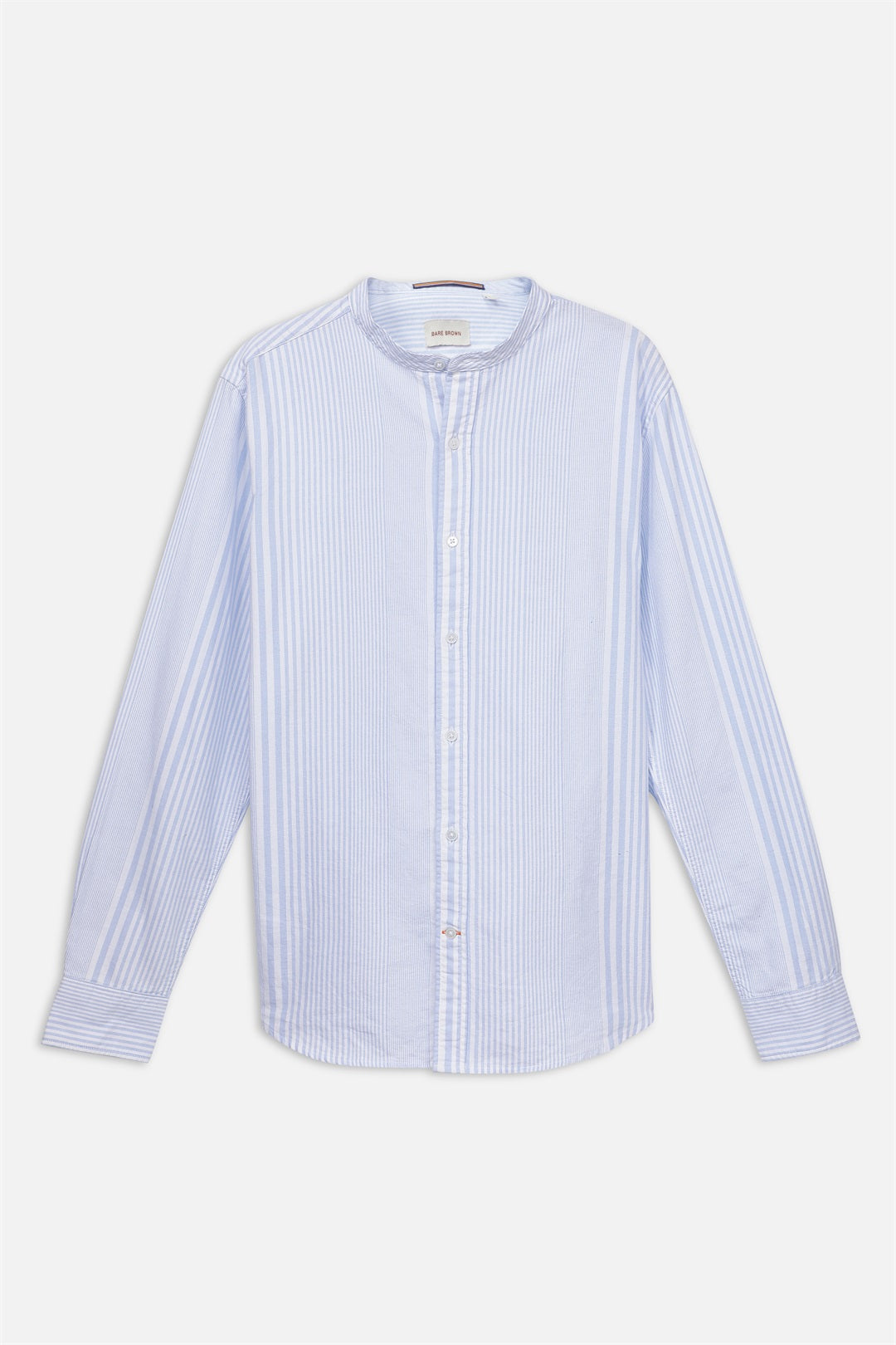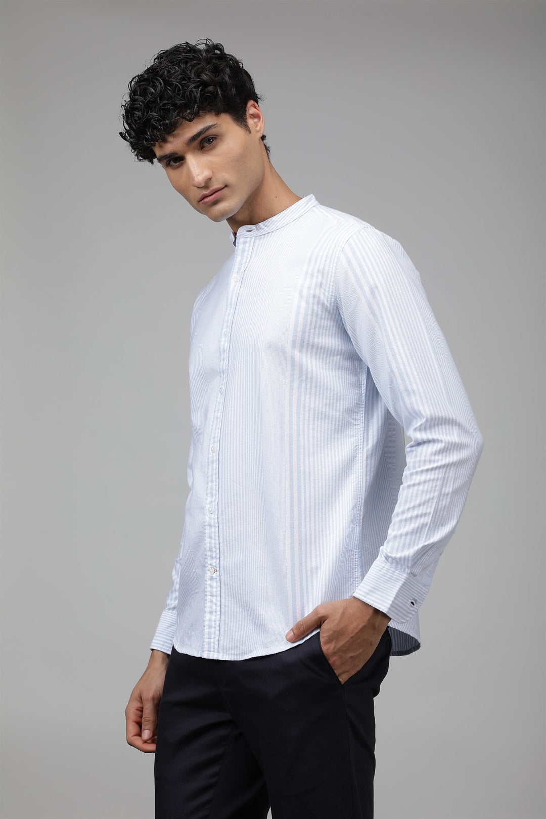 Bare Brown Striped Mandarin Slim Fit Shirt with Full Sleeves - Blue