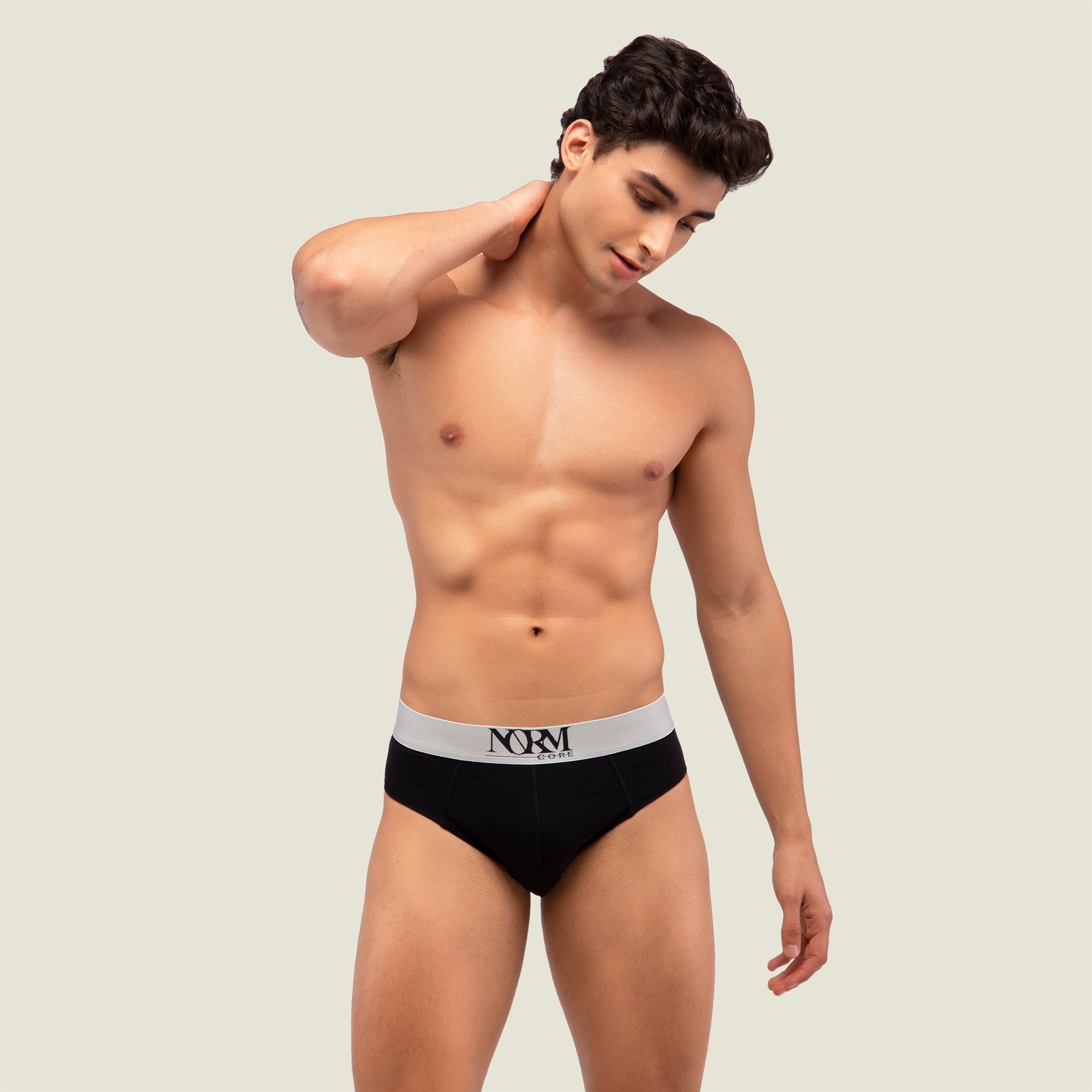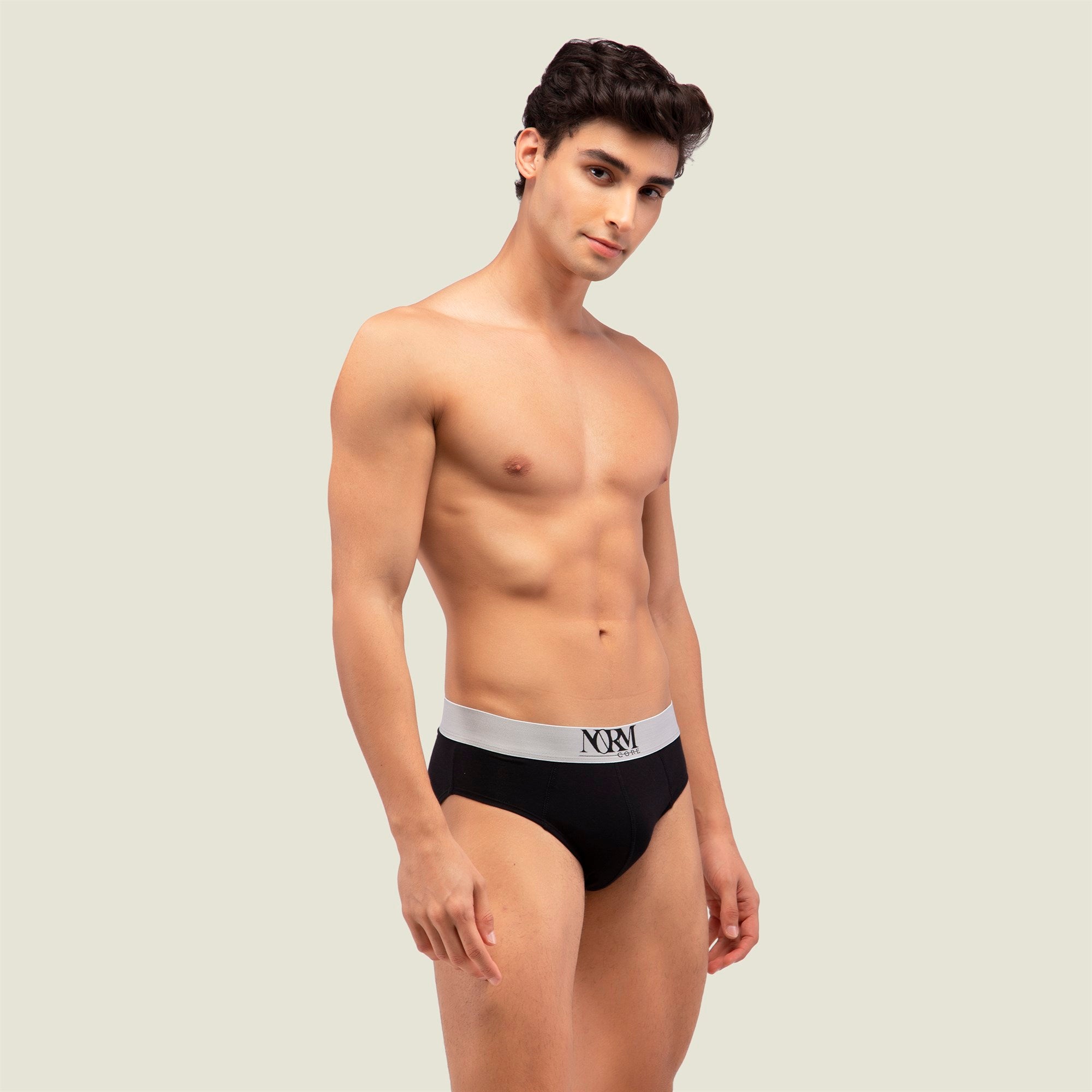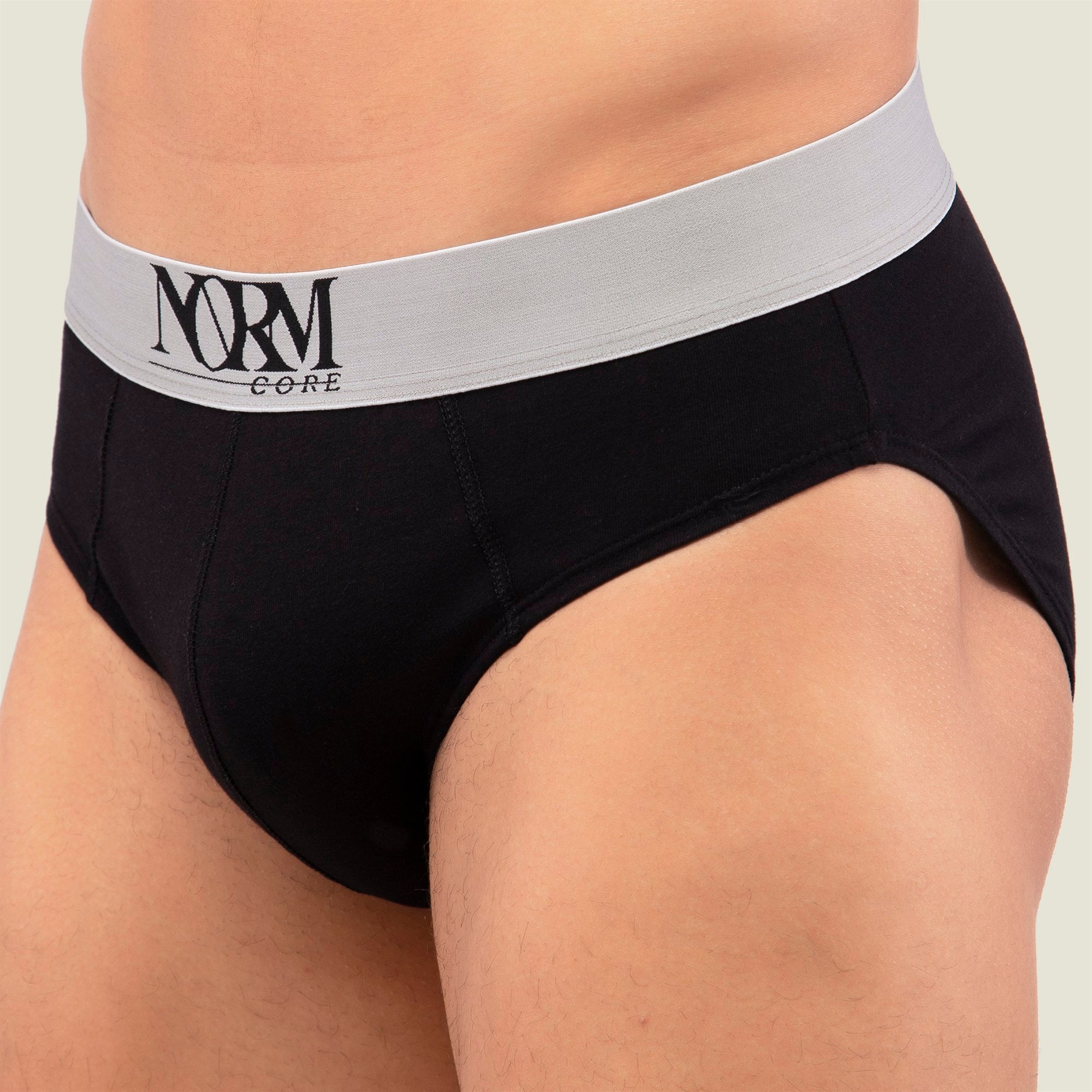 Normcore Cotton Innerwear - Black Brief with Silver Waistband Underwear