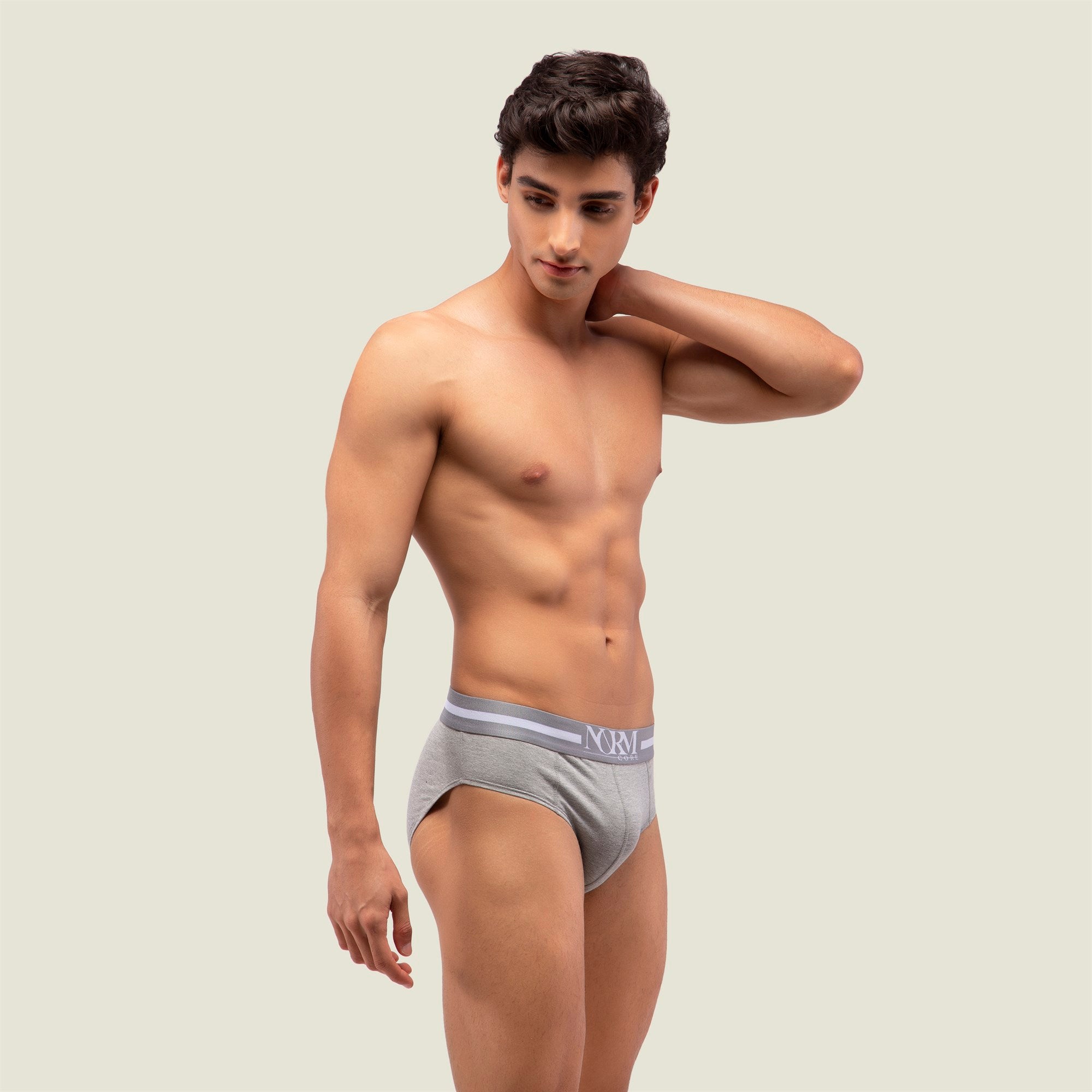 Normcore Cotton Innerwear - Grey Brief with Grey Waistband Underwear