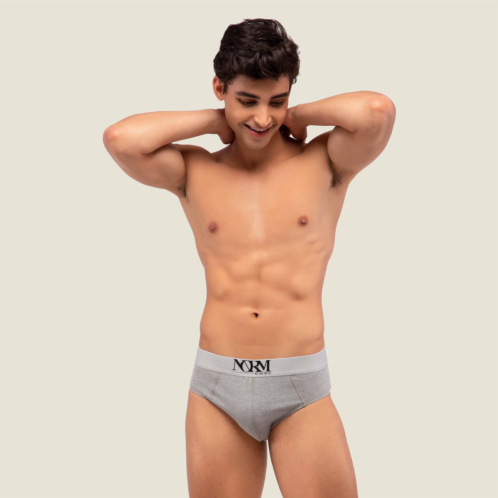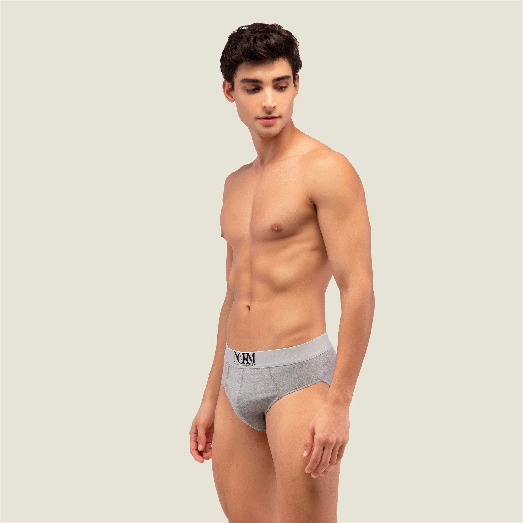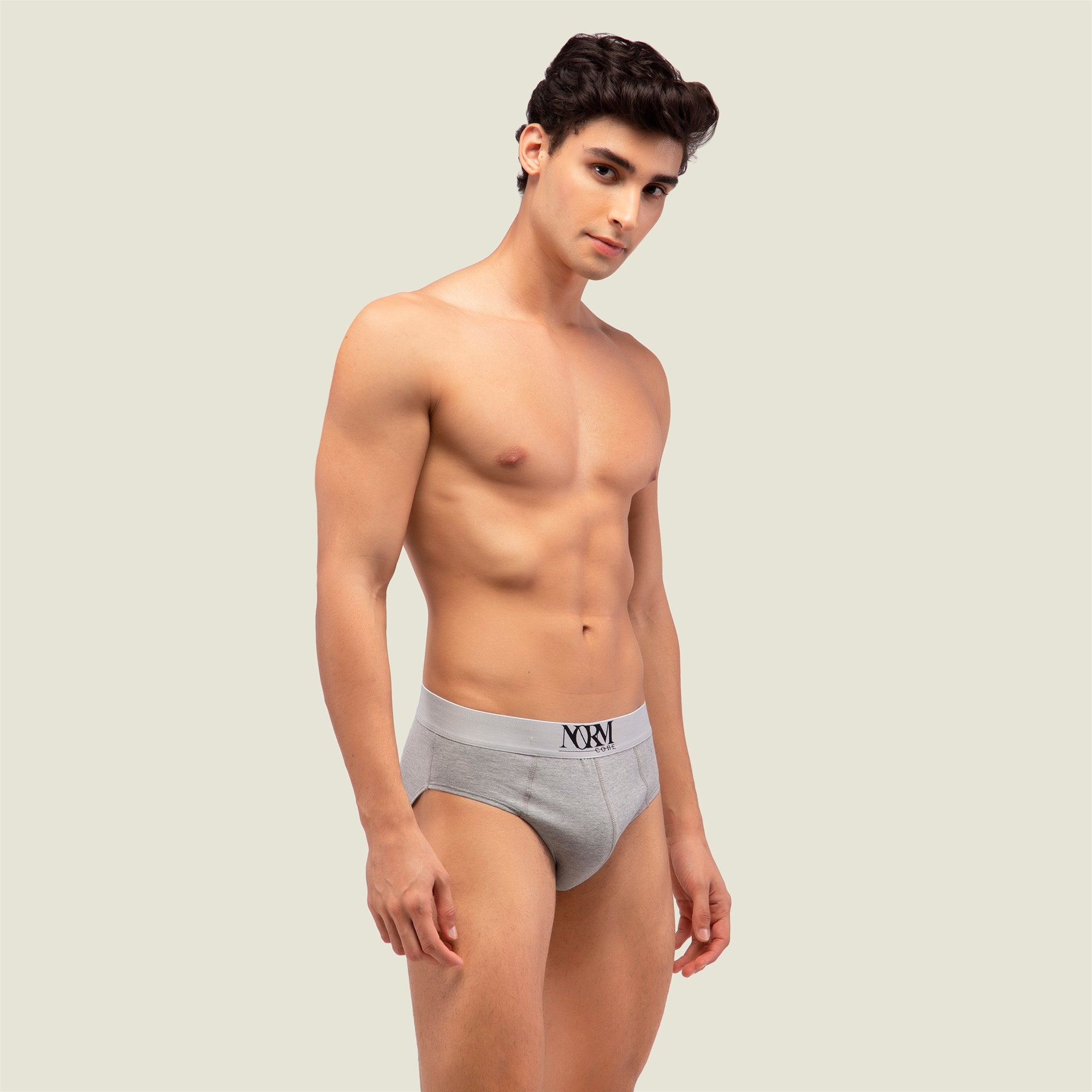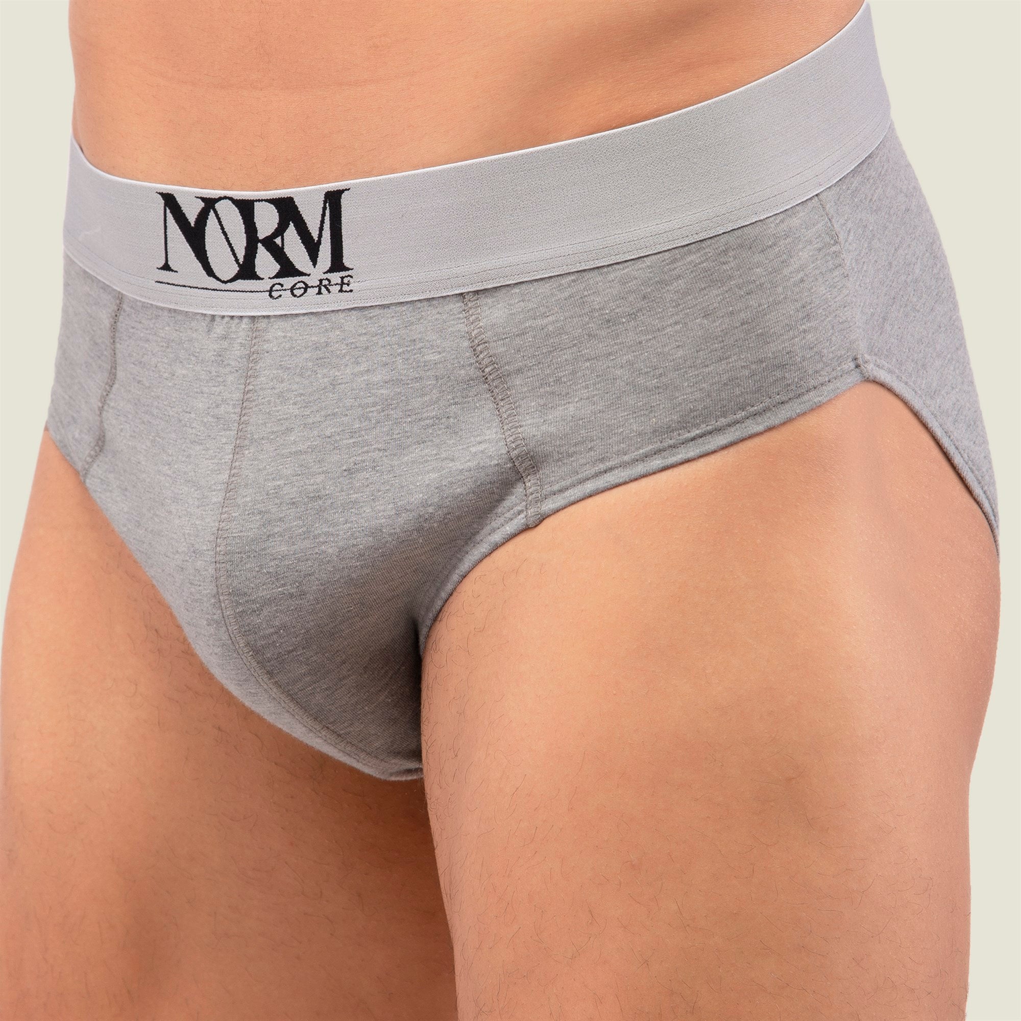 Normcore Cotton Innerwear - Grey Brief with Silver Waistband Underwear