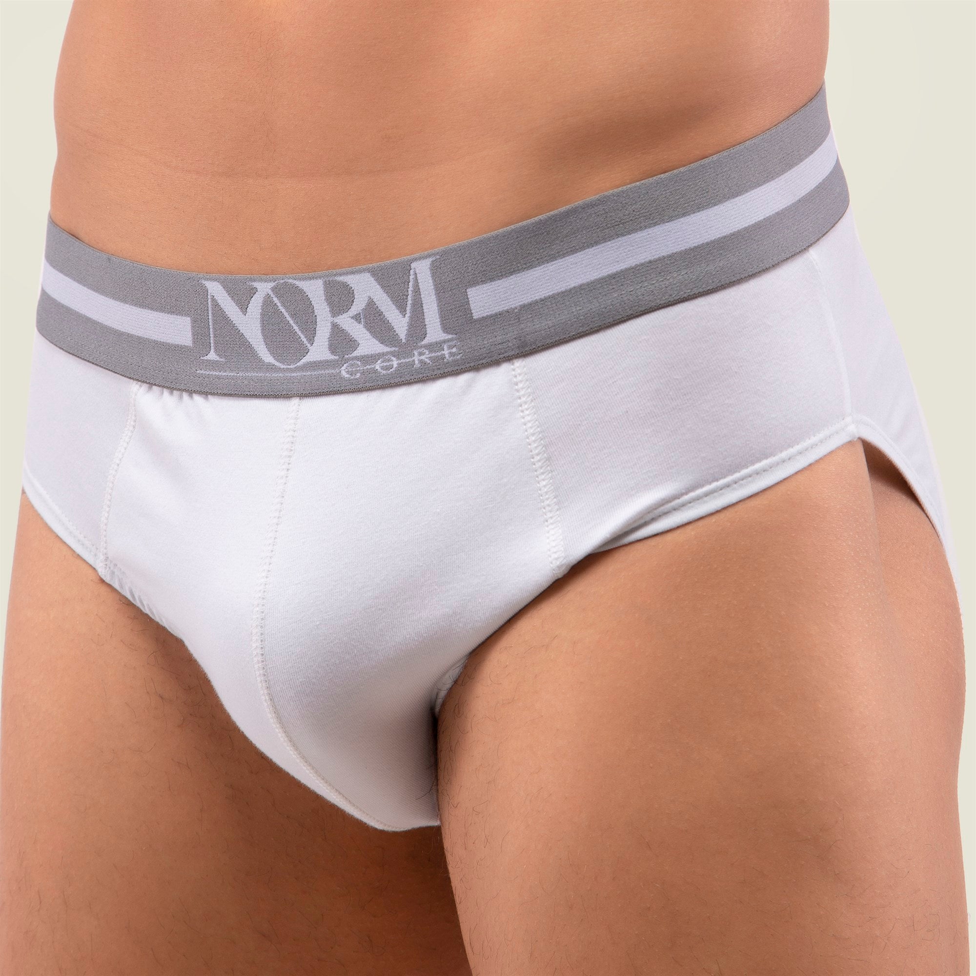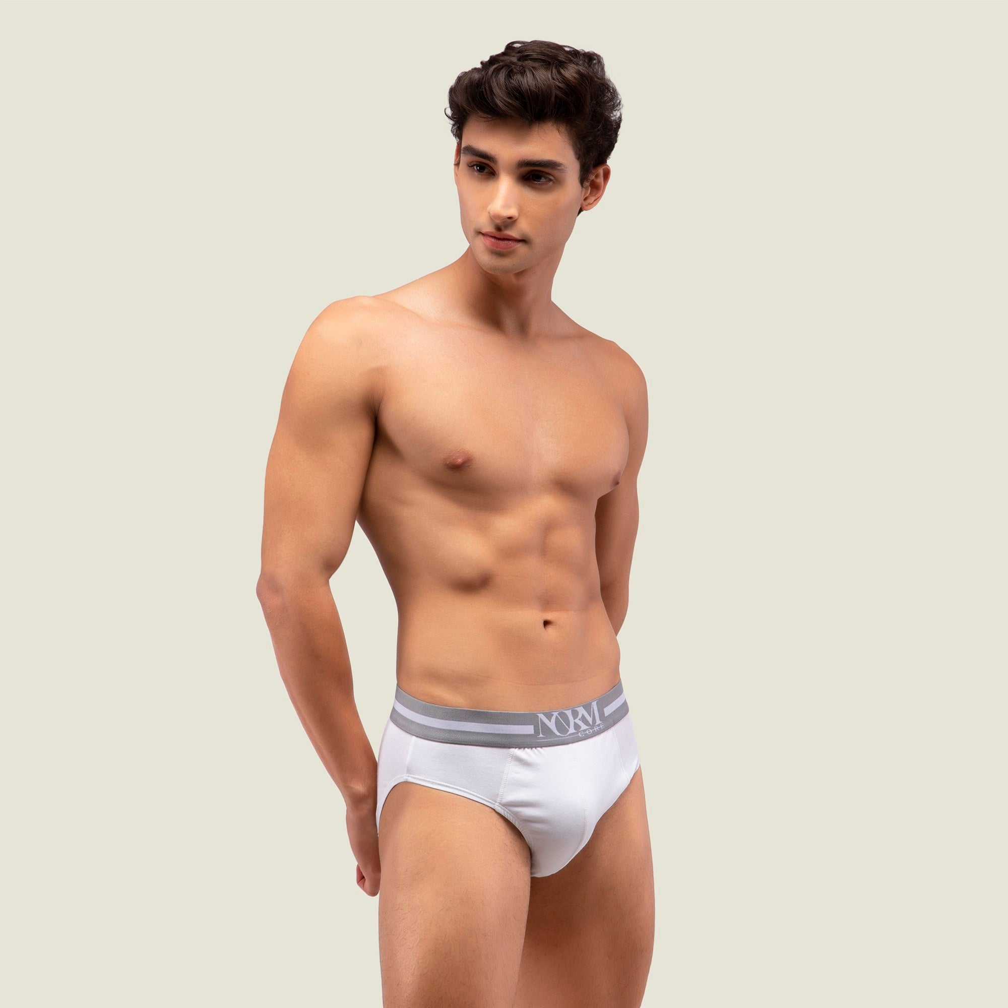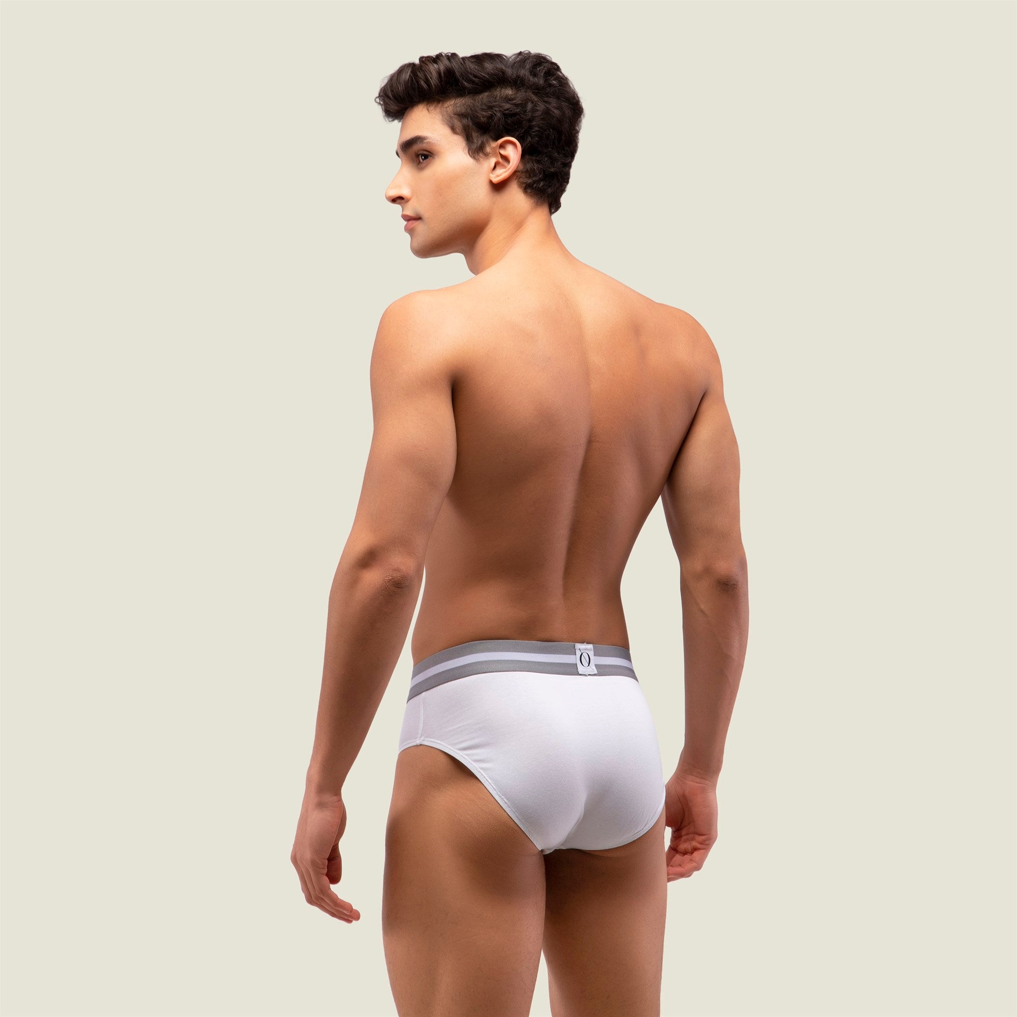 Normcore Cotton Innerwear - White Brief with Grey Waistband Underwear
