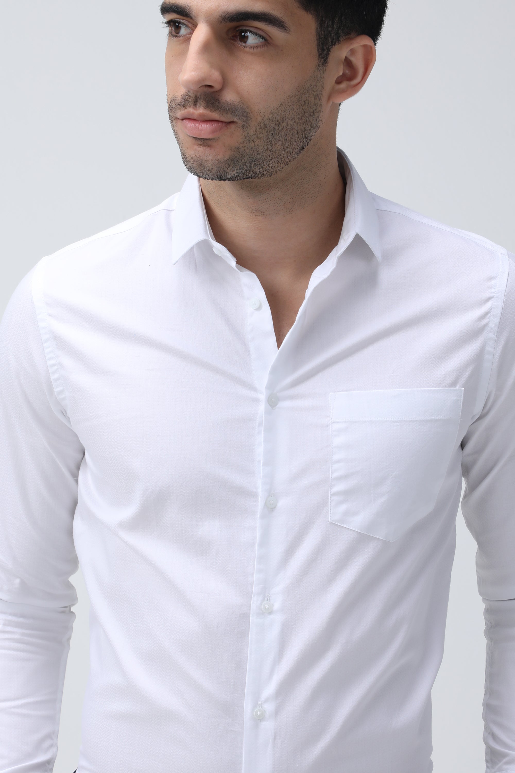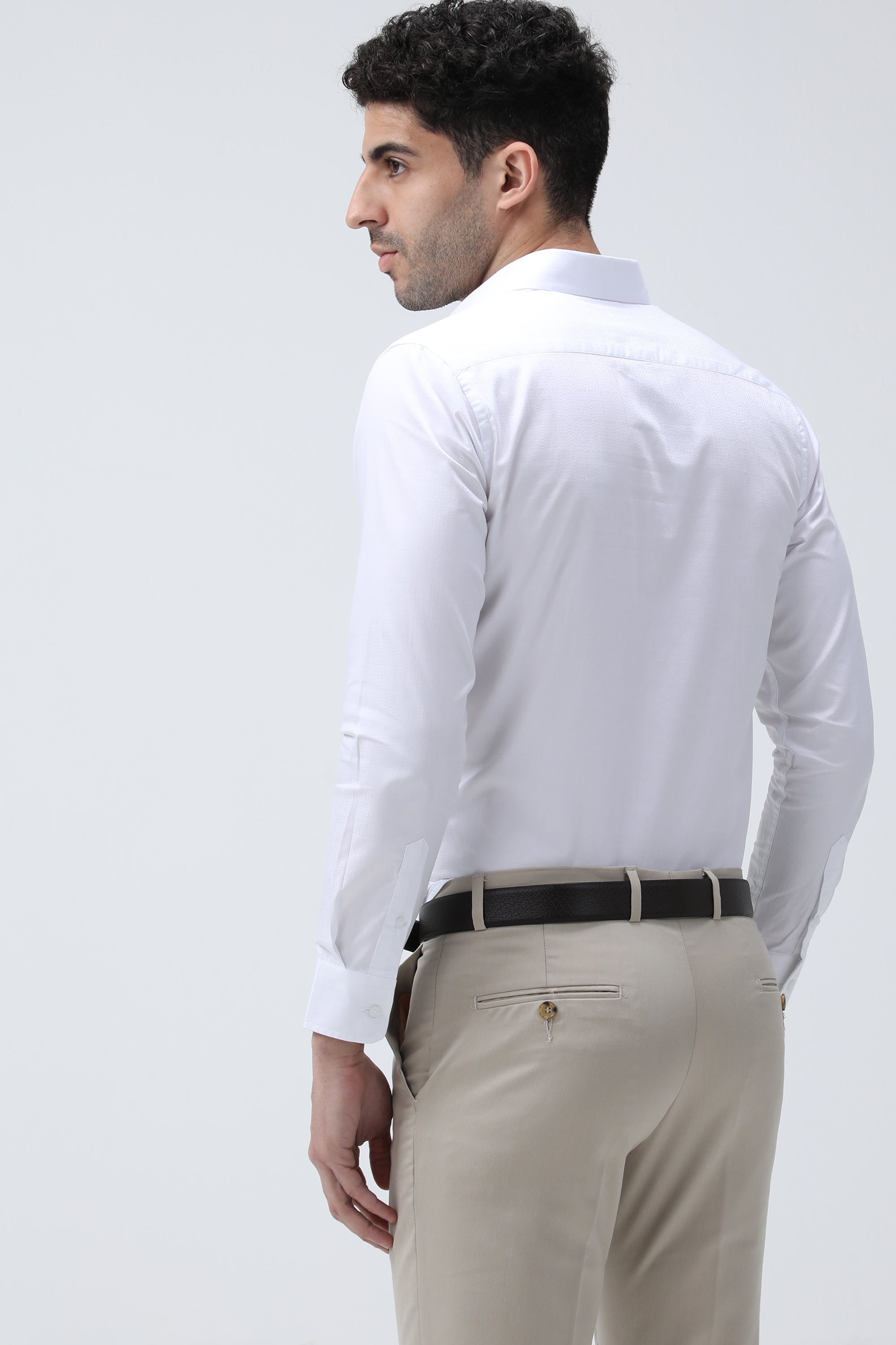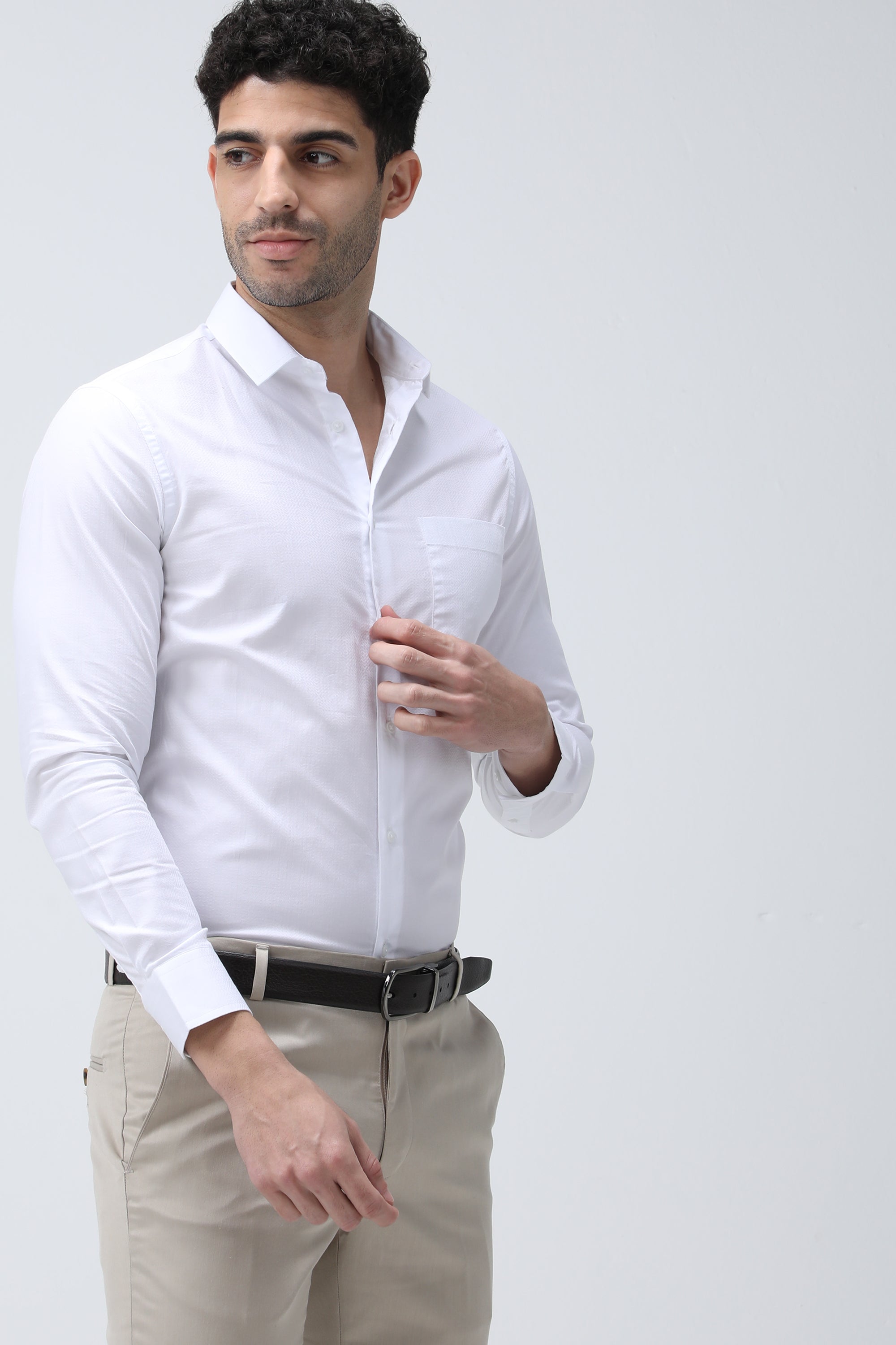 T the brand Jacquard Slim Fit Full Sleeved Cotton Shirt - White