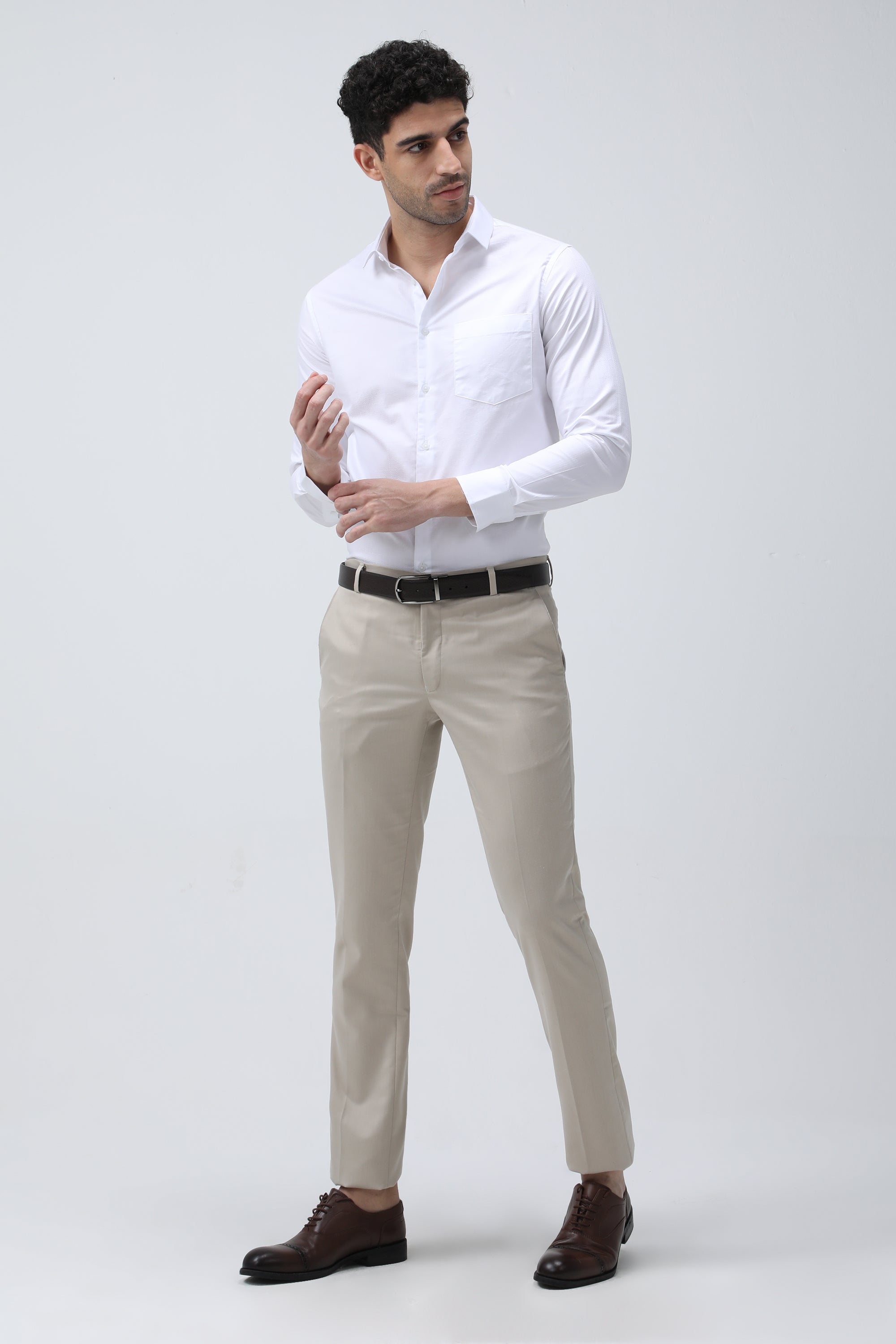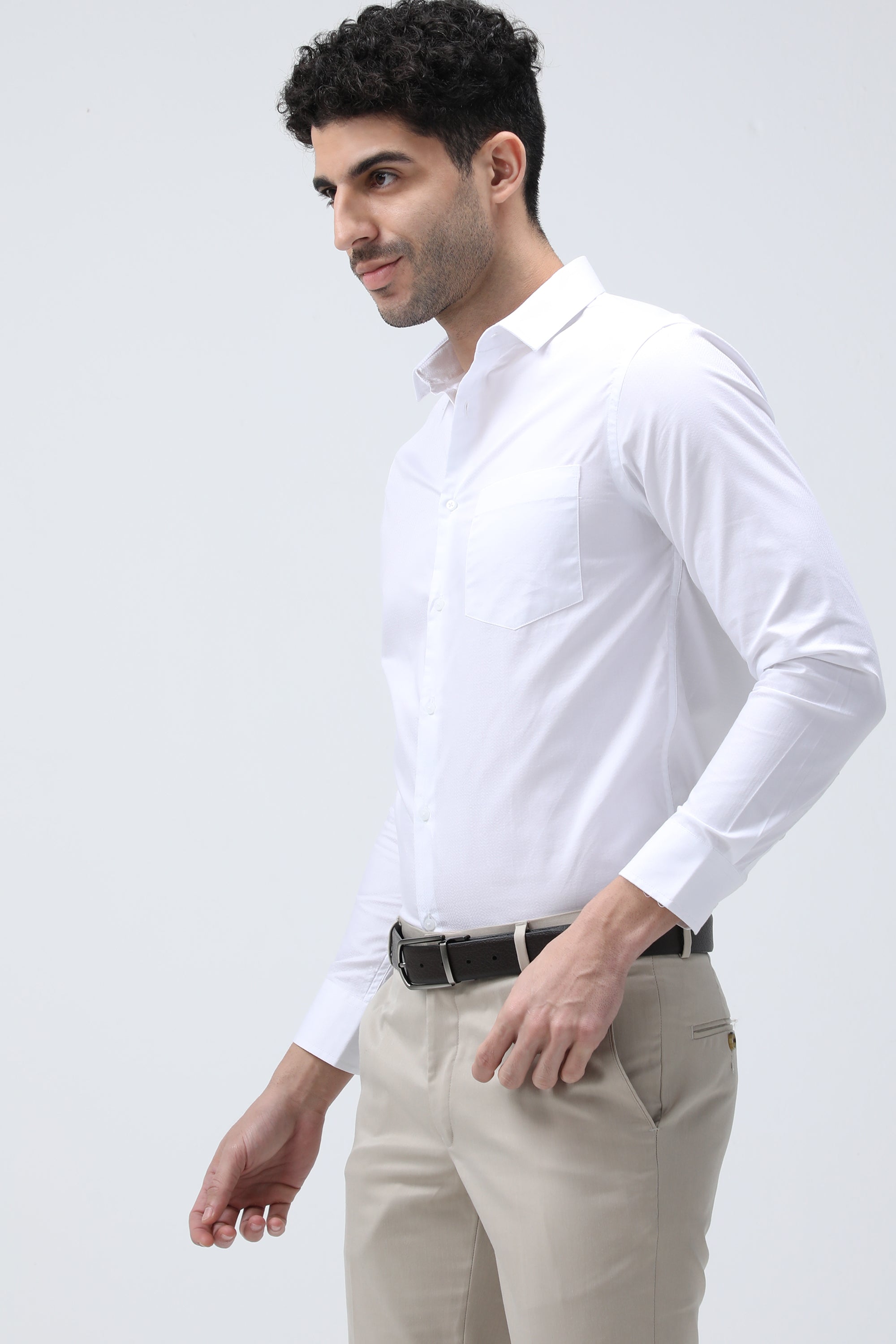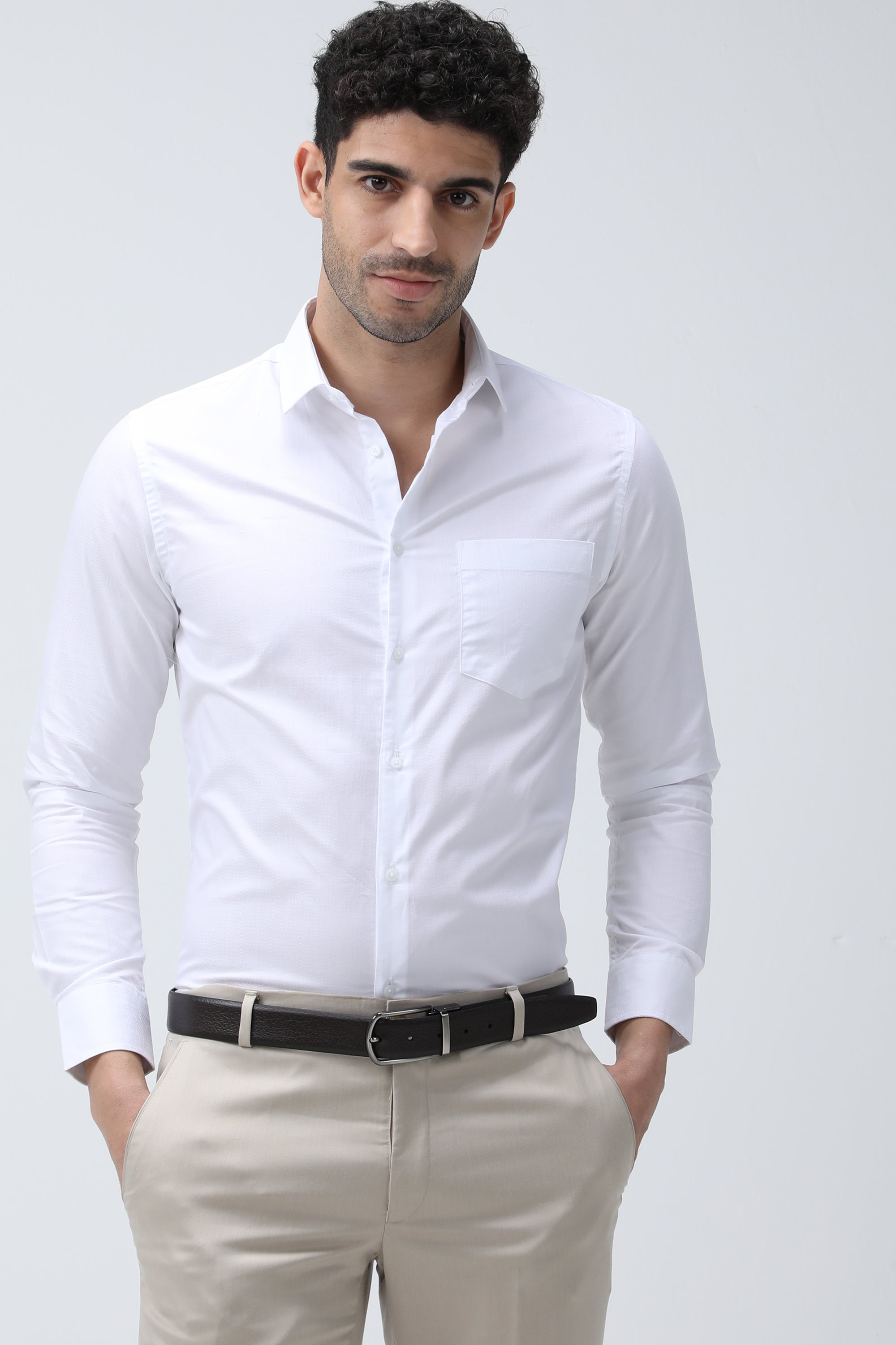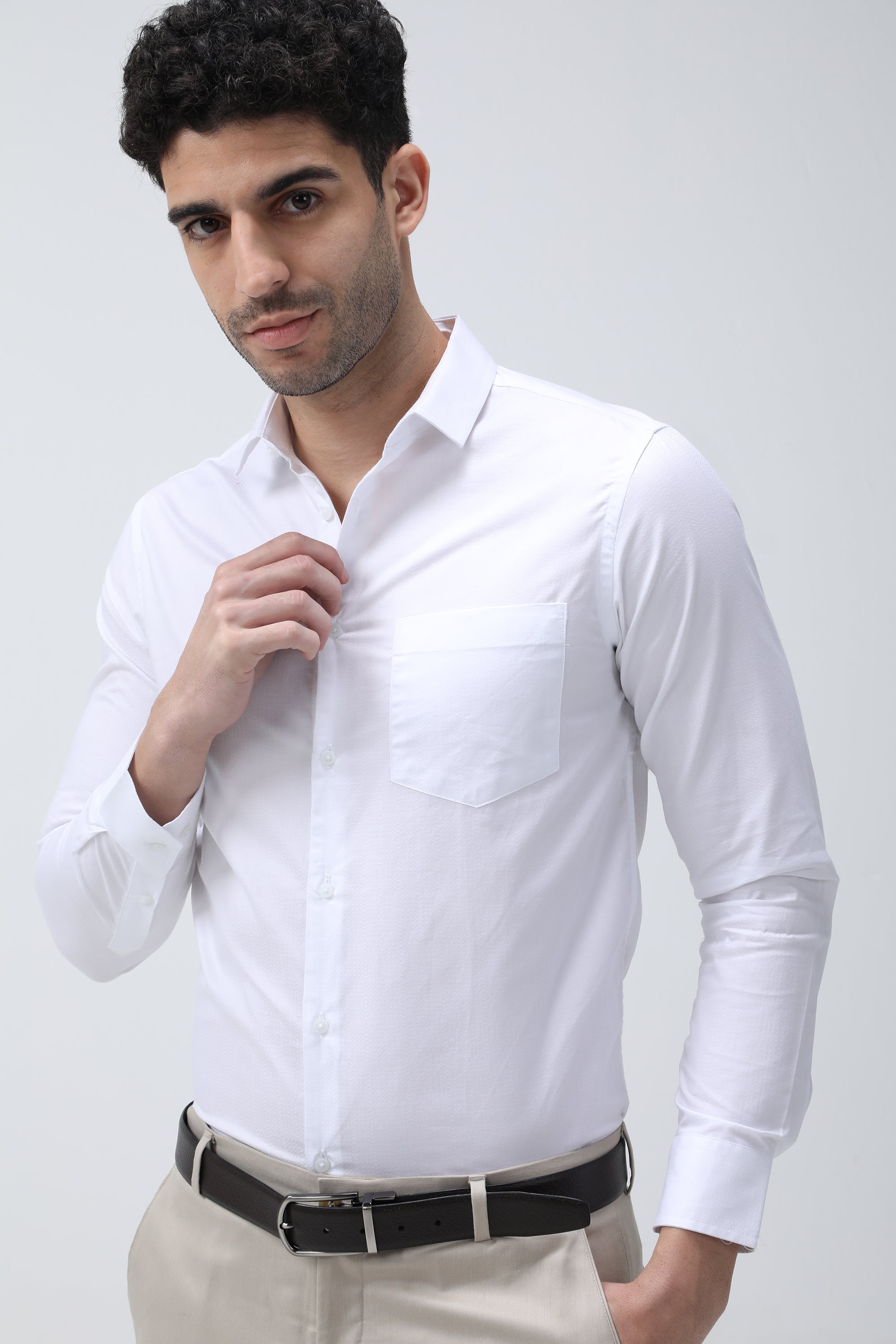 T the brand Jacquard Slim Fit Full Sleeved Cotton Shirt - White