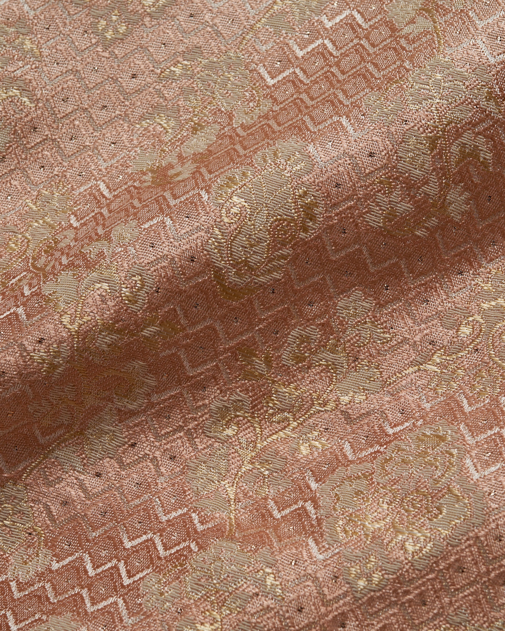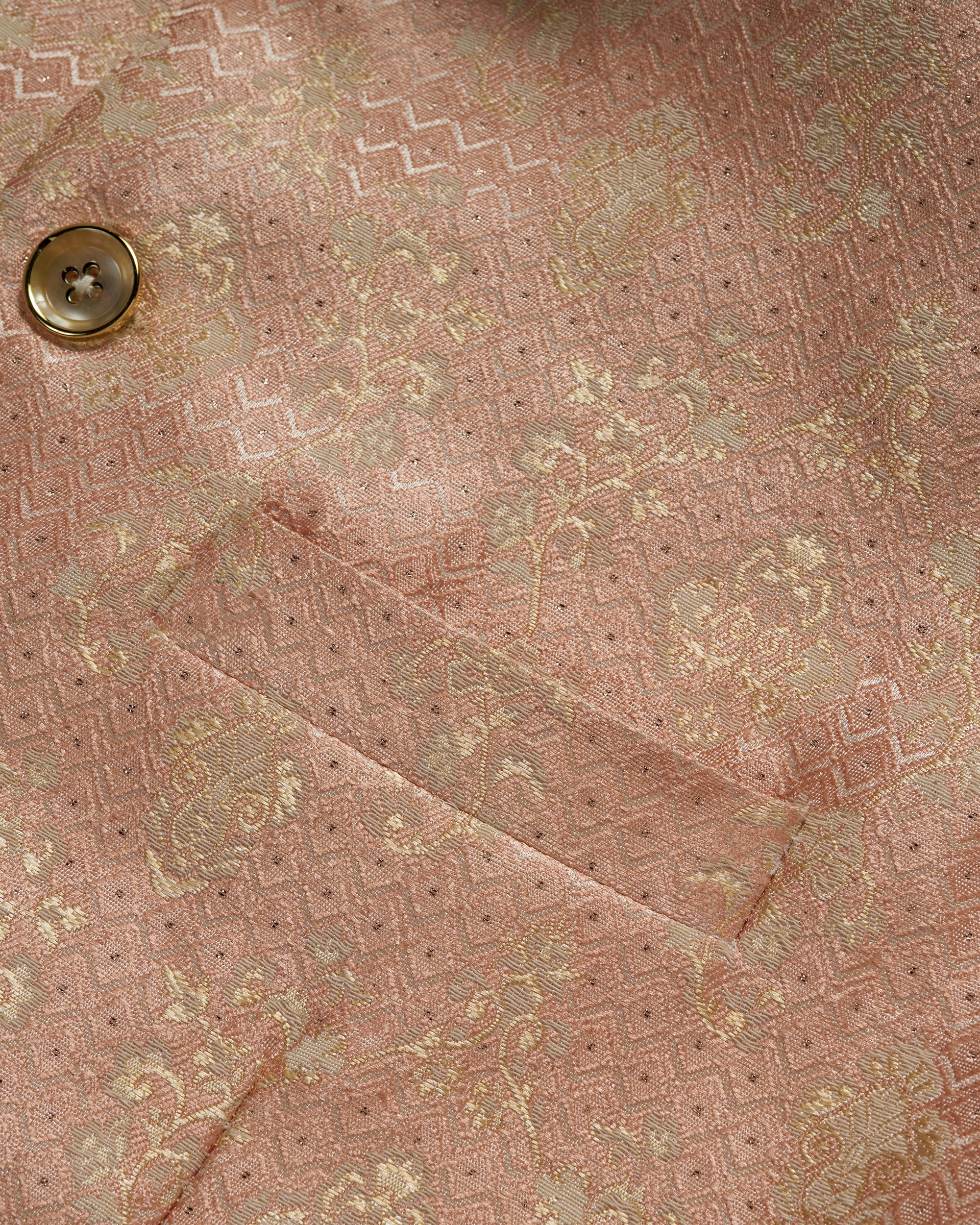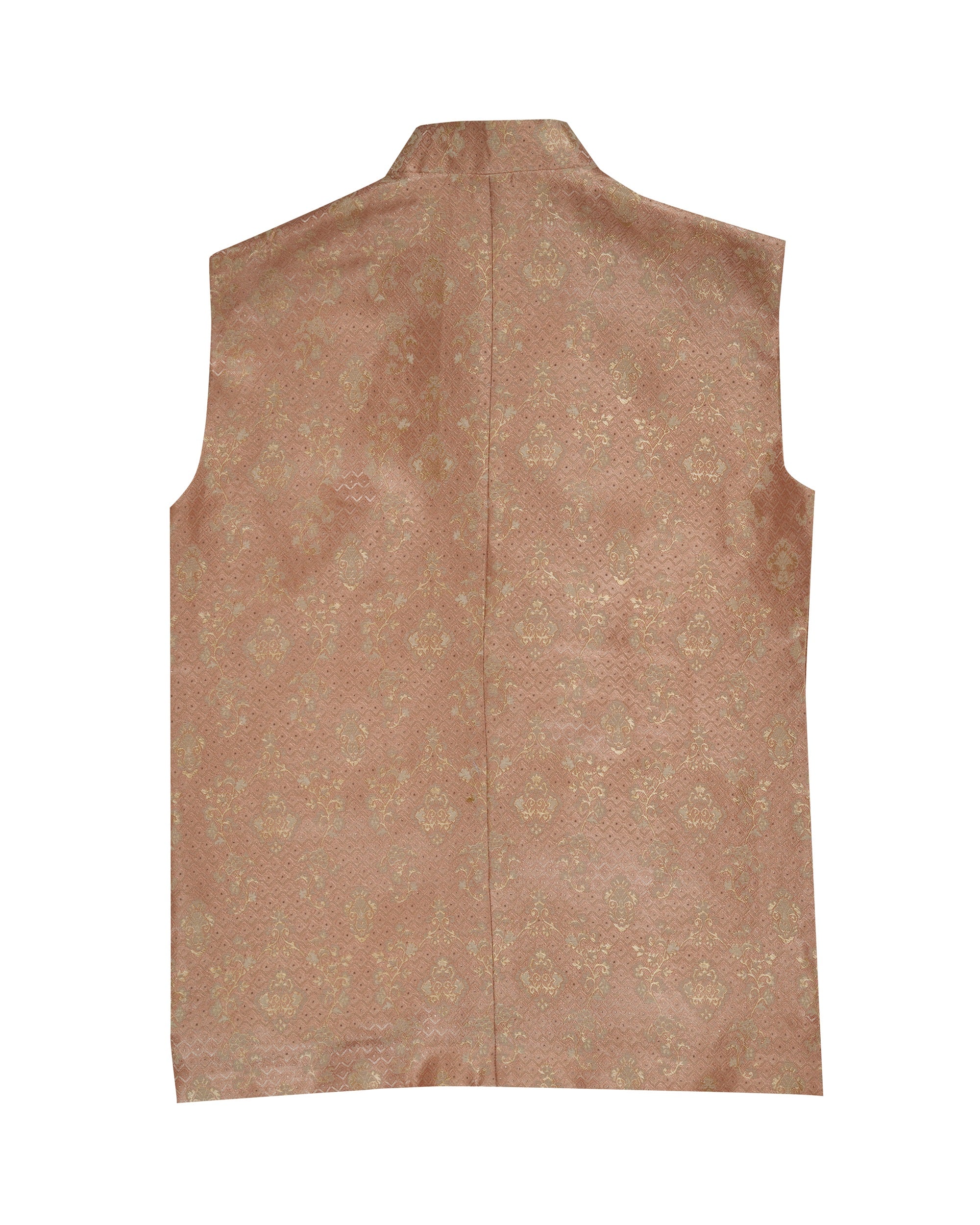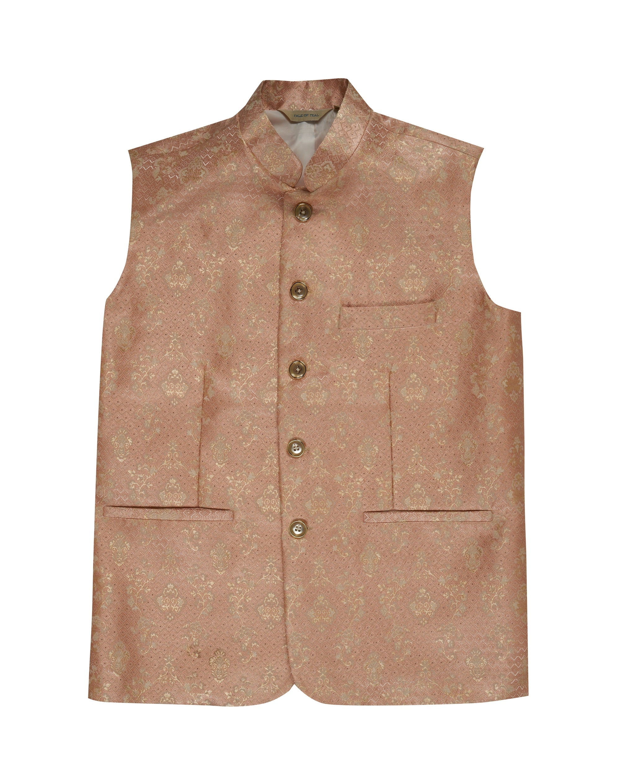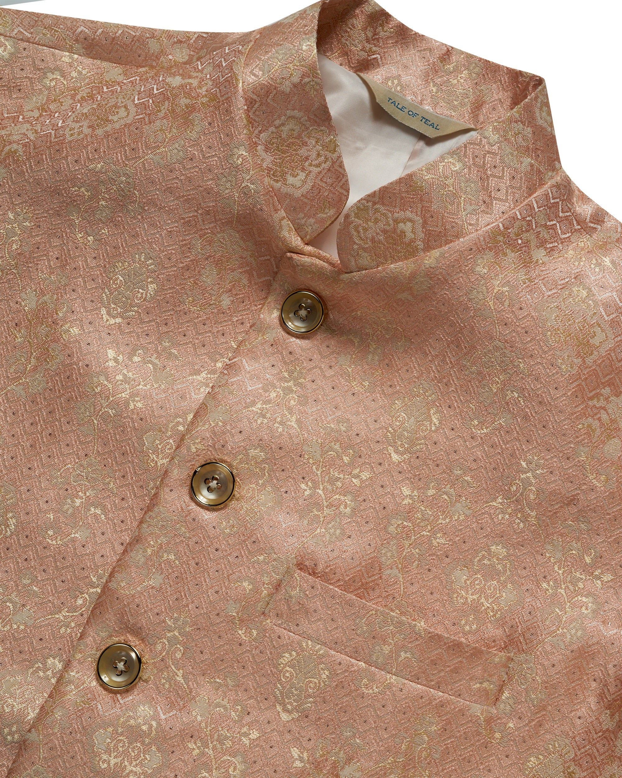 Tale of Teal Allover Patterned Jacquard Bundi Ethnic Waistcoat - Peach