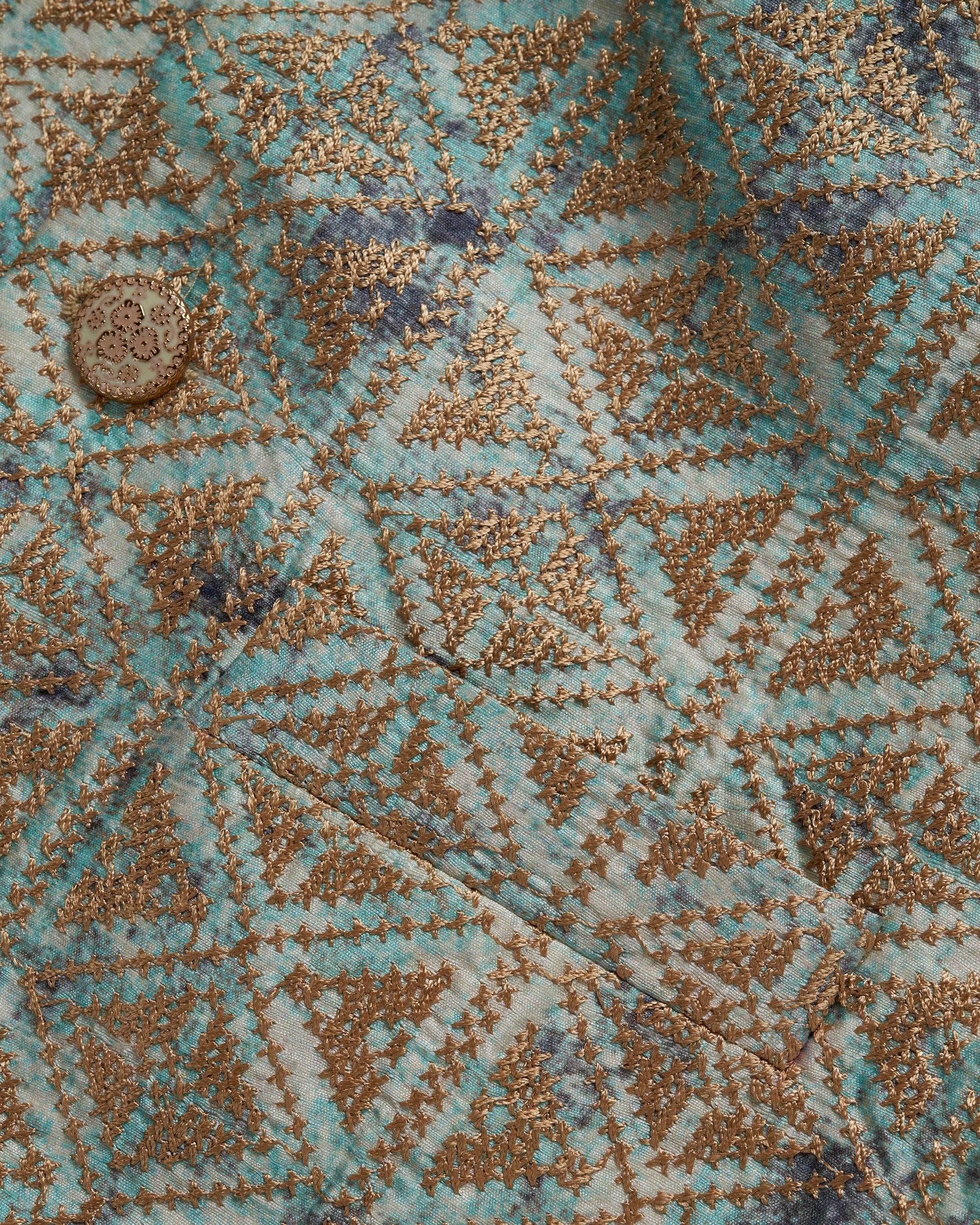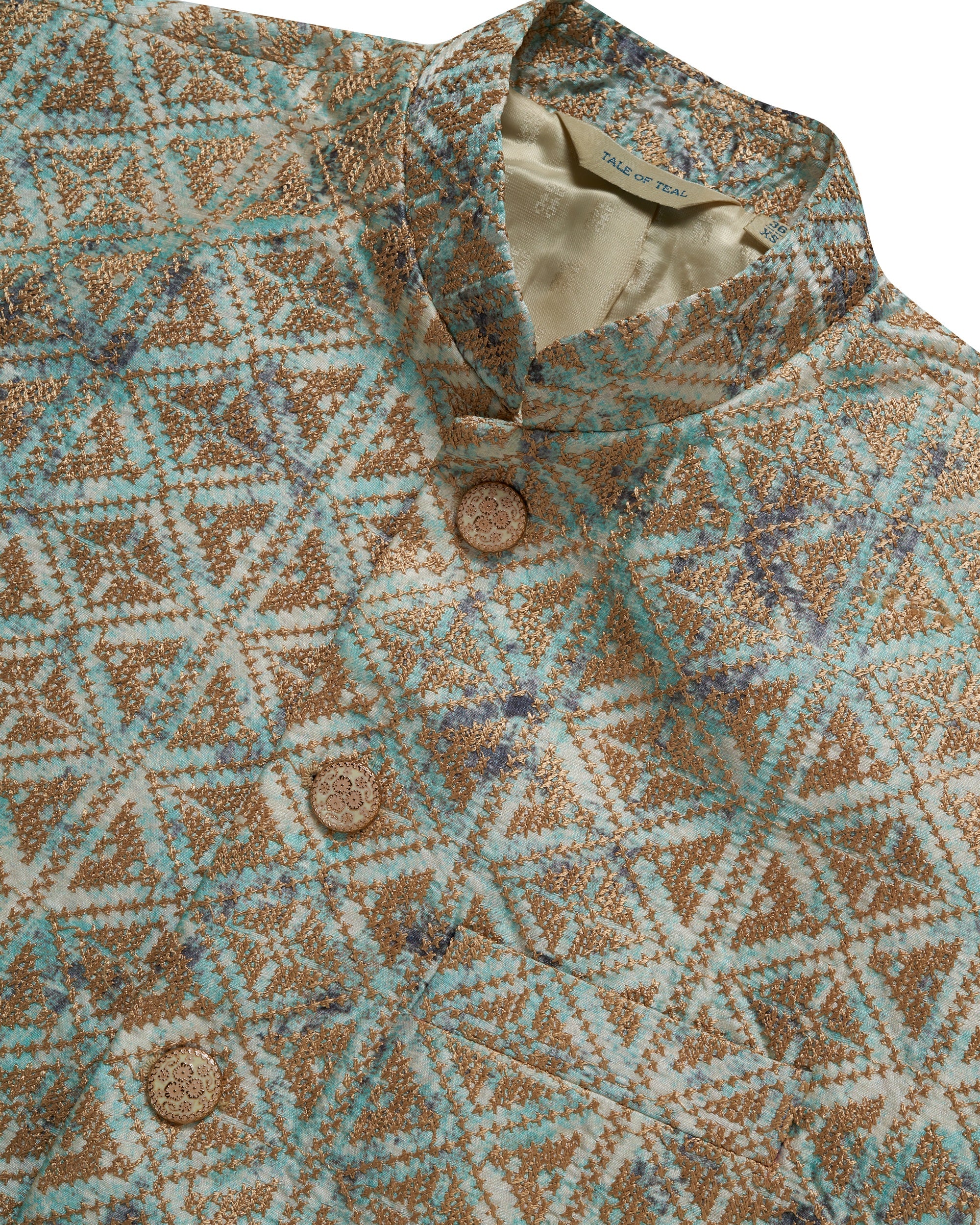 Tale of Teal Allover Patterned Thread Embroidered Bundi Ethnic Waistcoat - Light Blue