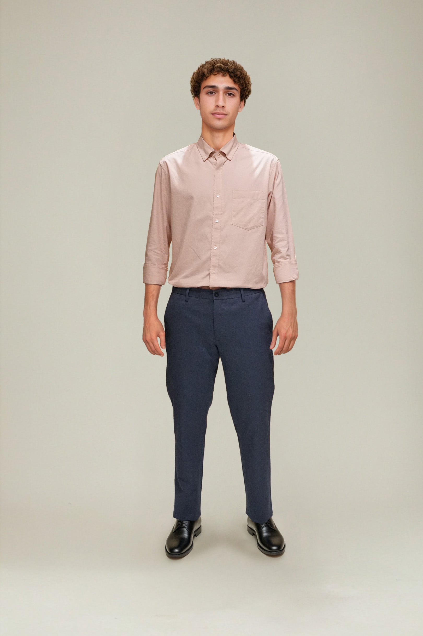 Bare Brown - Button Down Collar Solid Cotton Shirt, Slim Fit with Full Sleeves - Pink