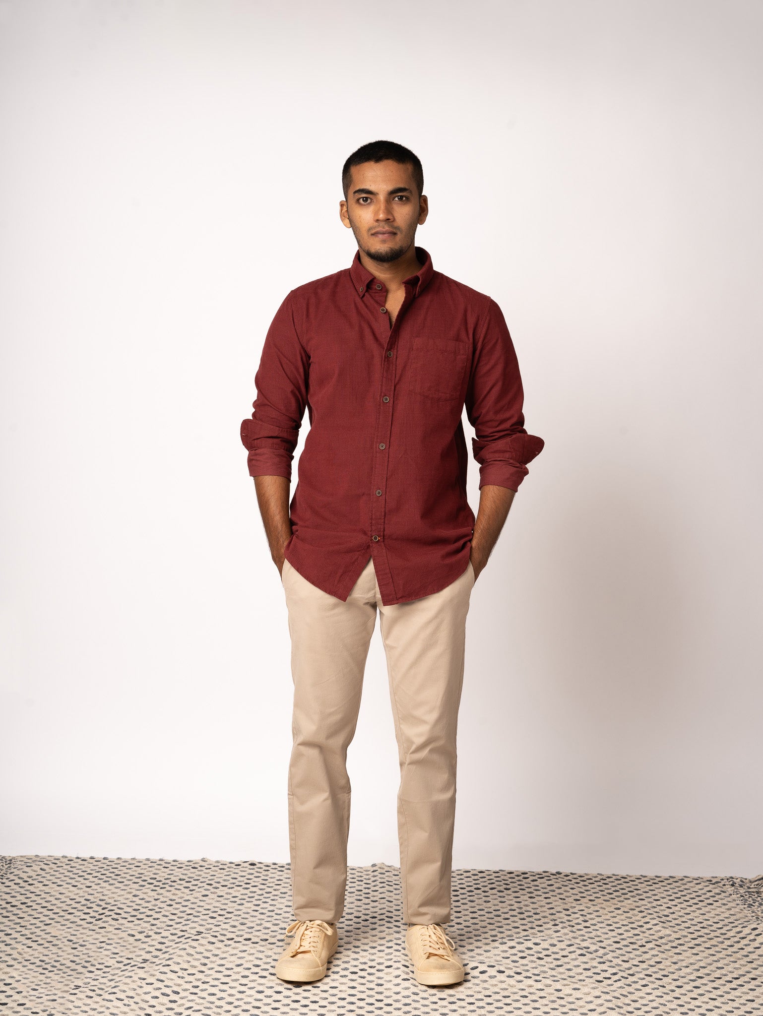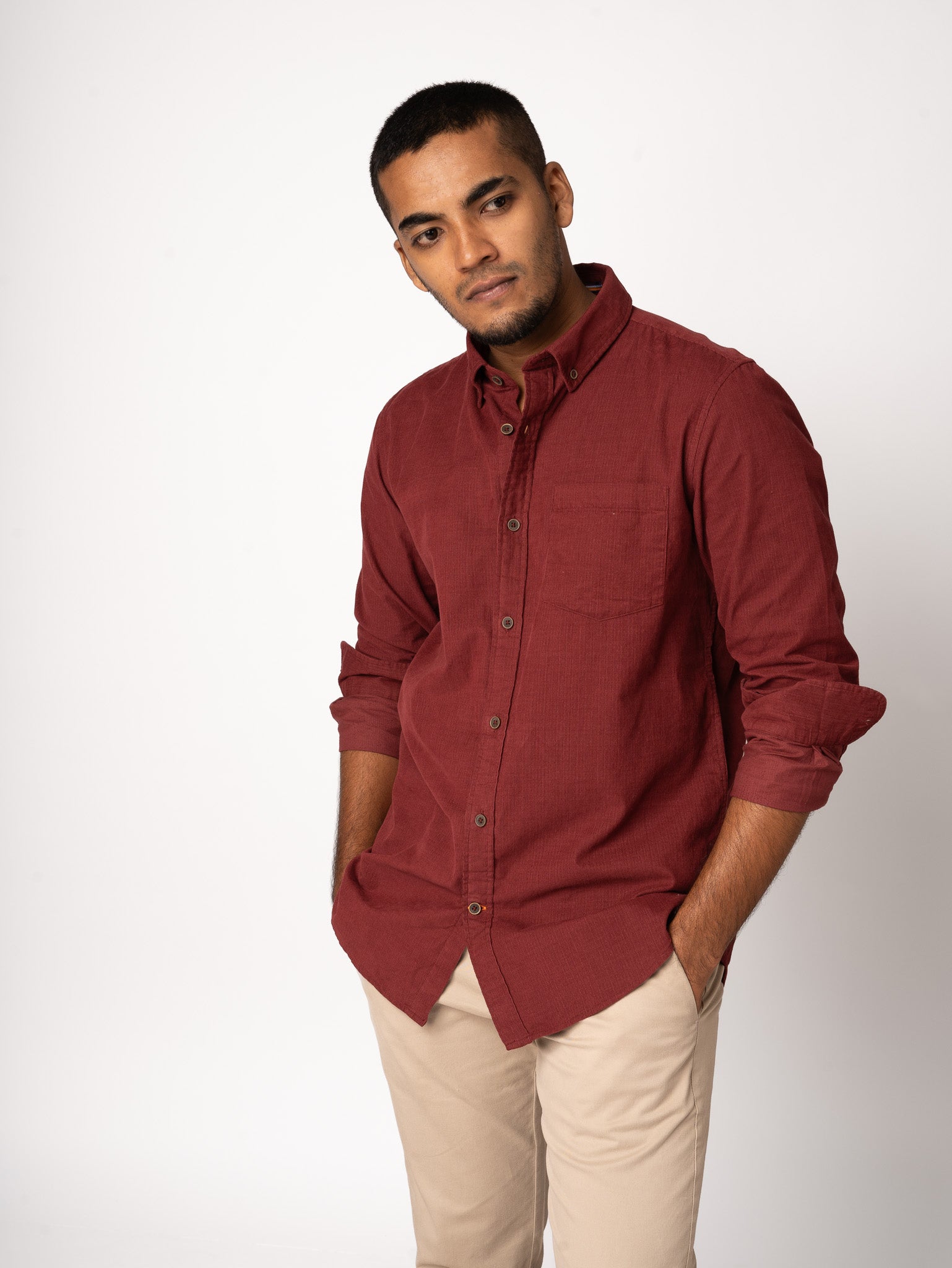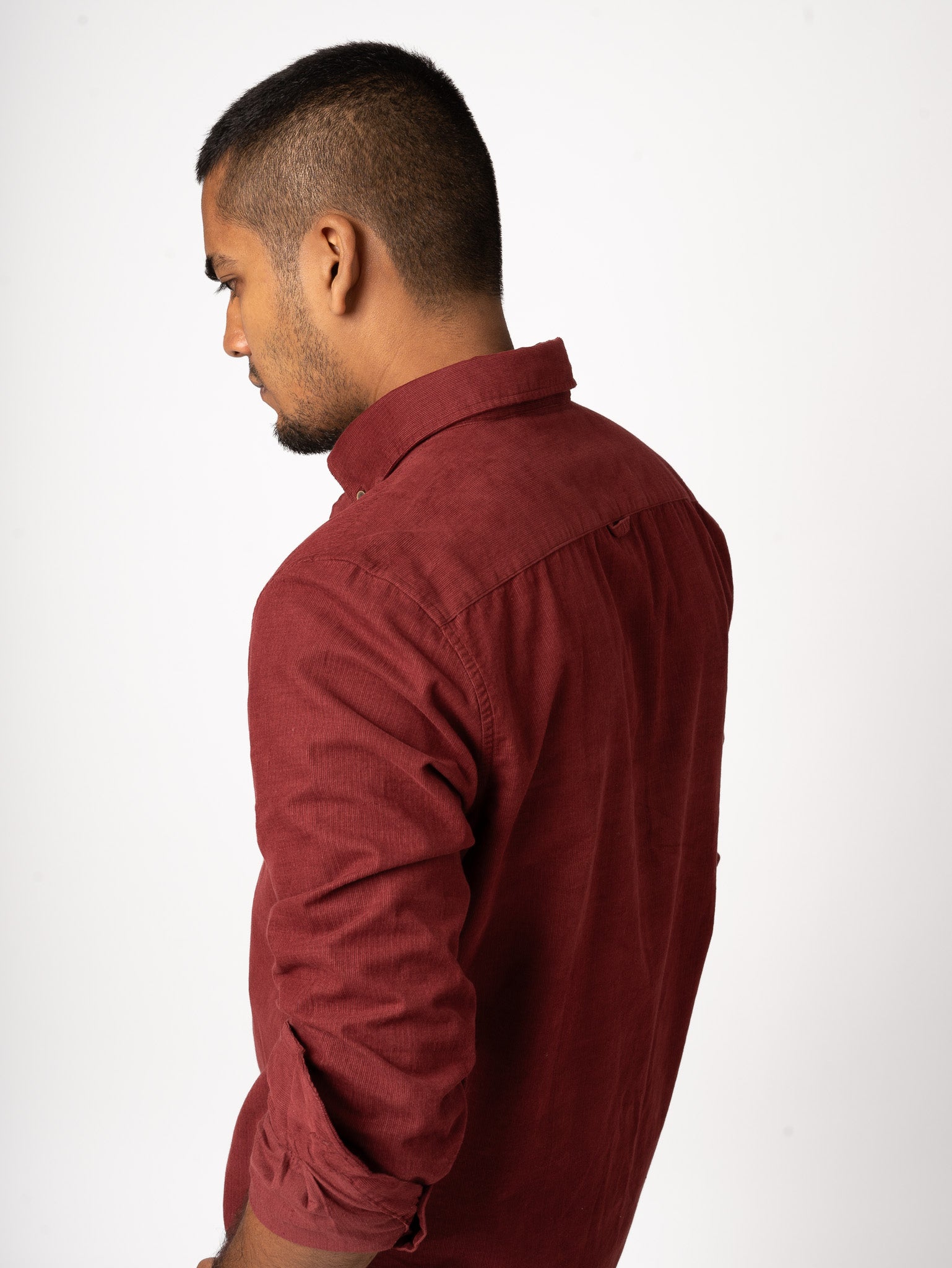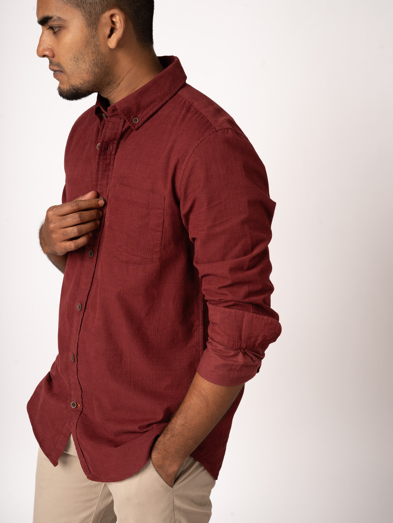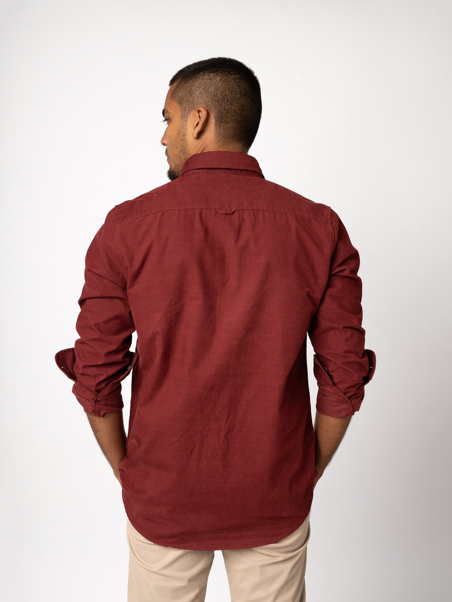 Bare Brown Corduroy Cotton Shirt, Slim Fit with Full Sleeves - Maroon