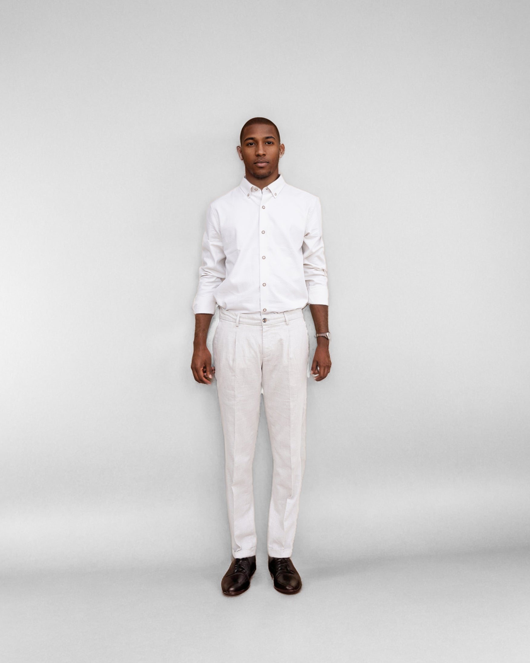 Bare Brown Full Sleeve Button Down Solid Twill Cotton Shirt - Off White