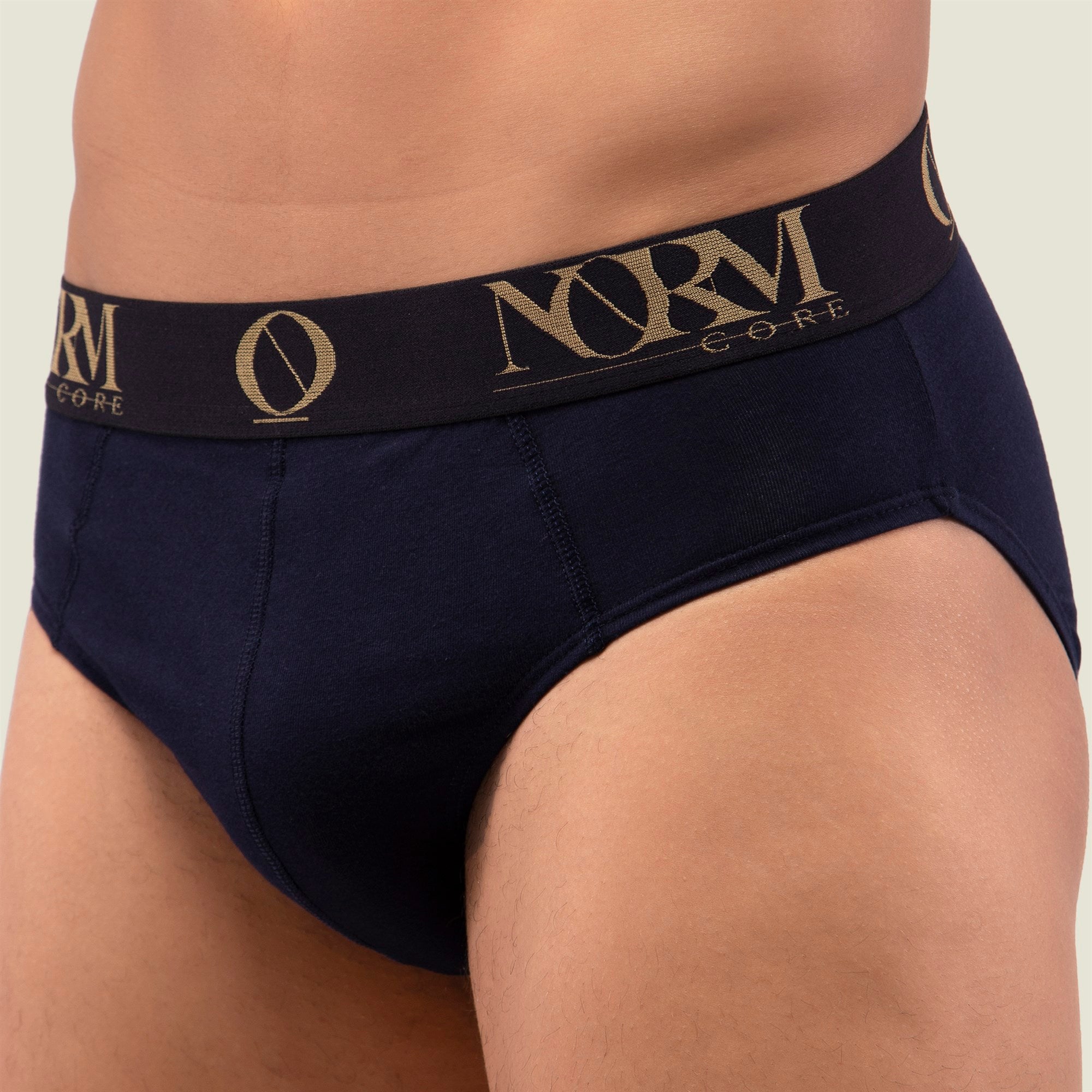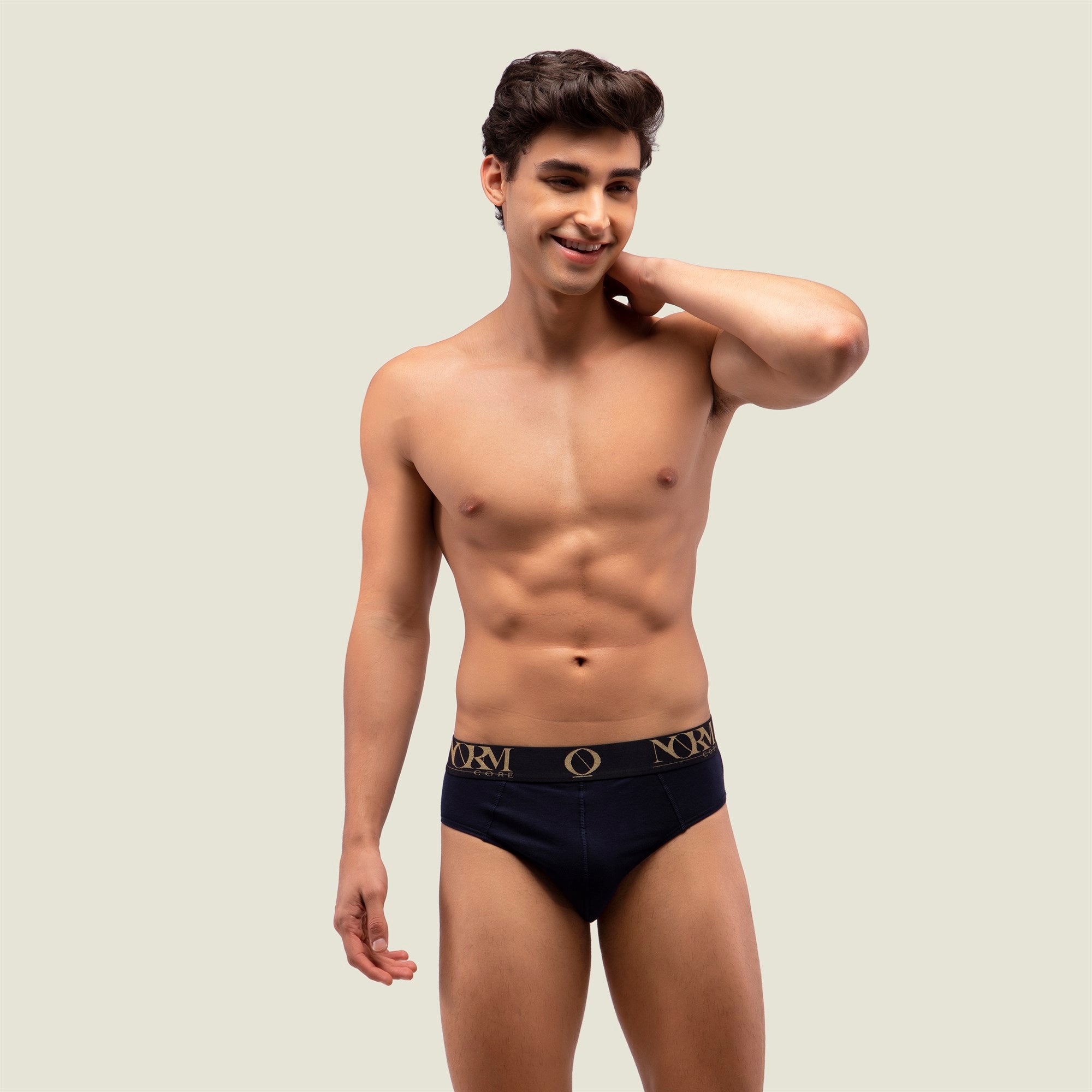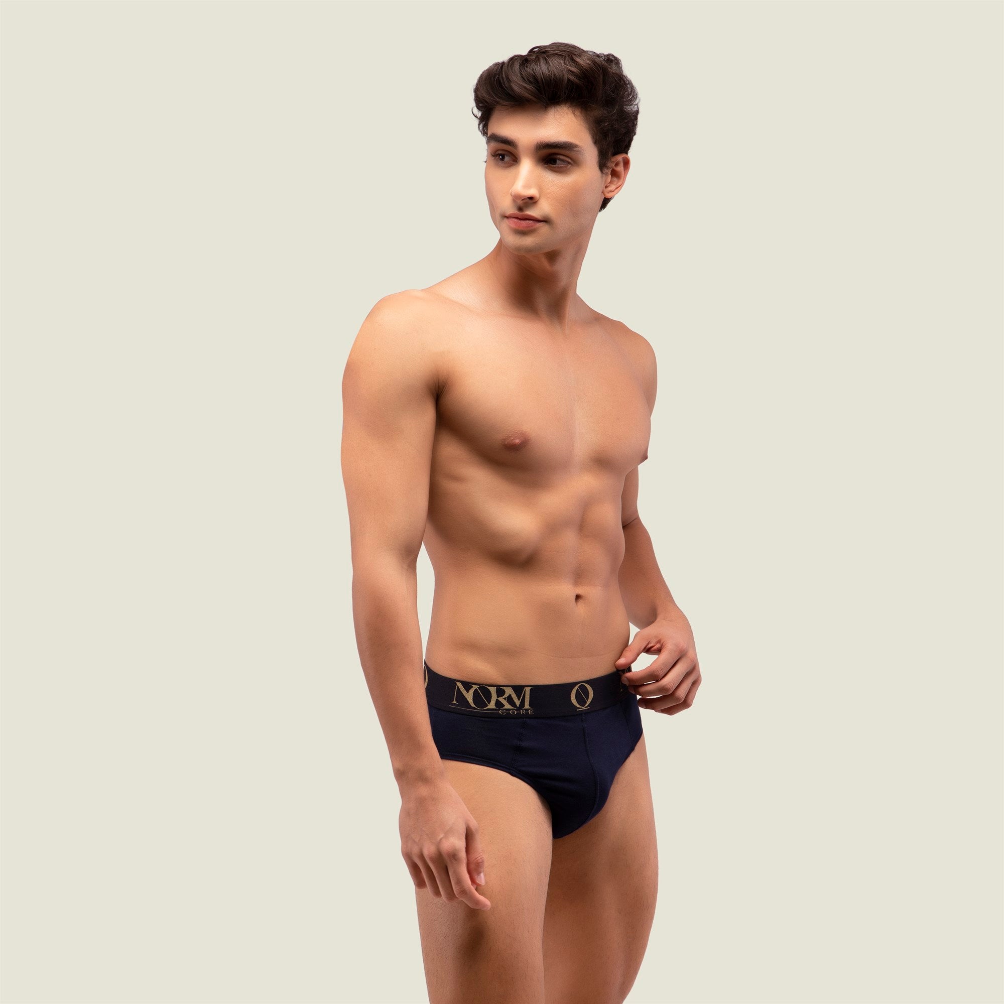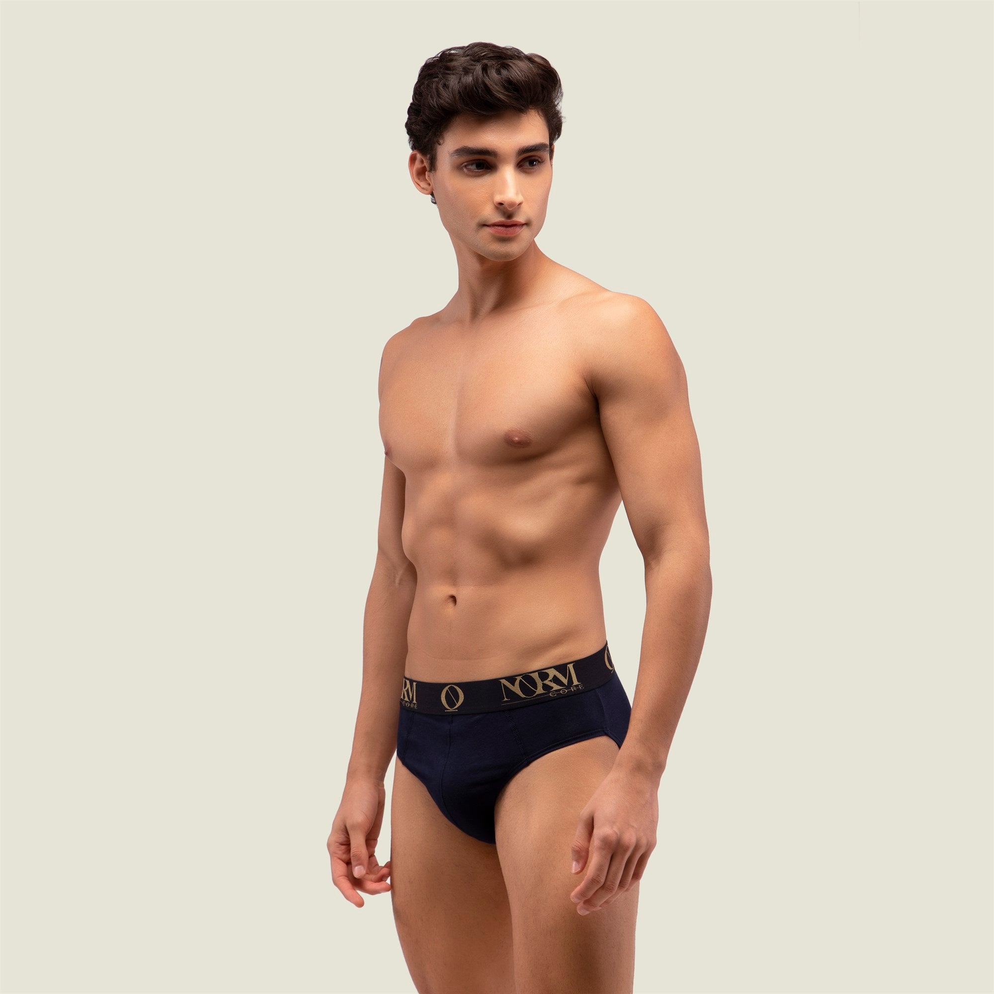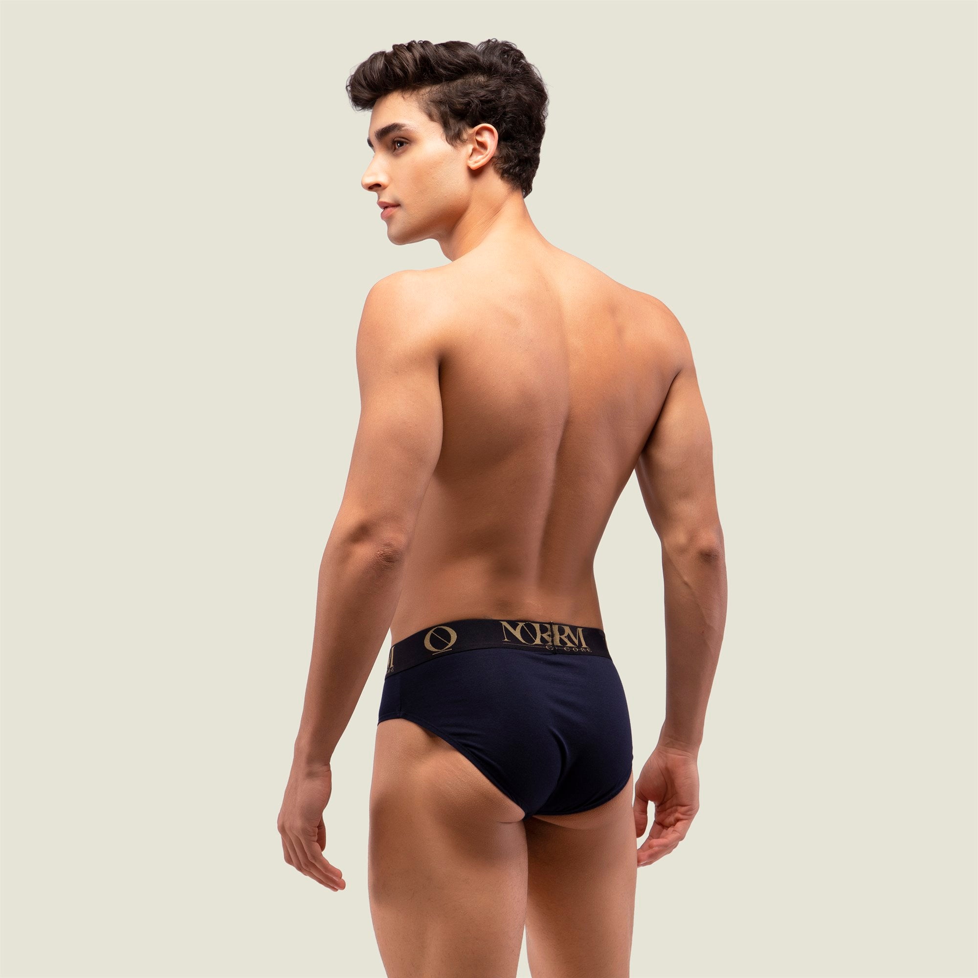Normcore Cotton Innerwear - Navy Blue Brief with Gold Waistband Underwear