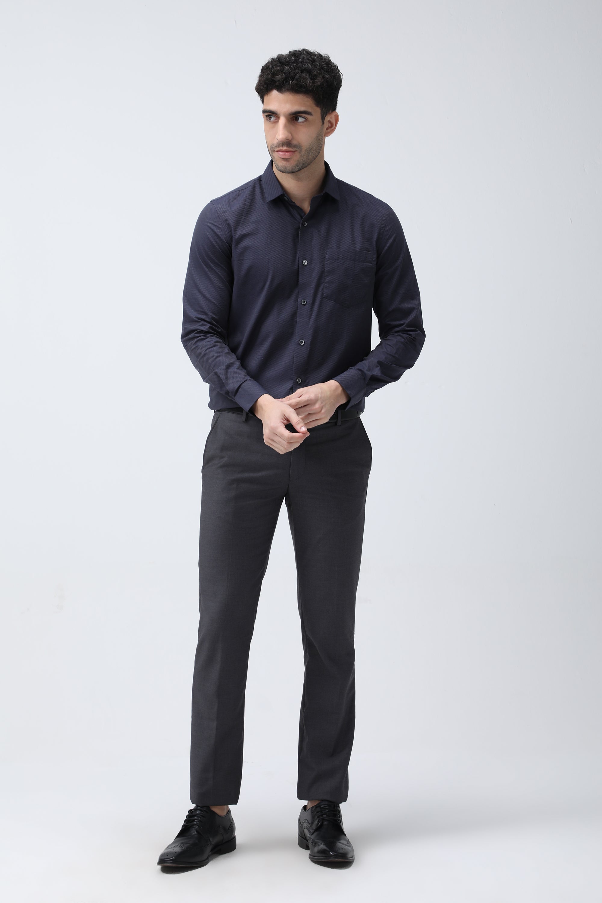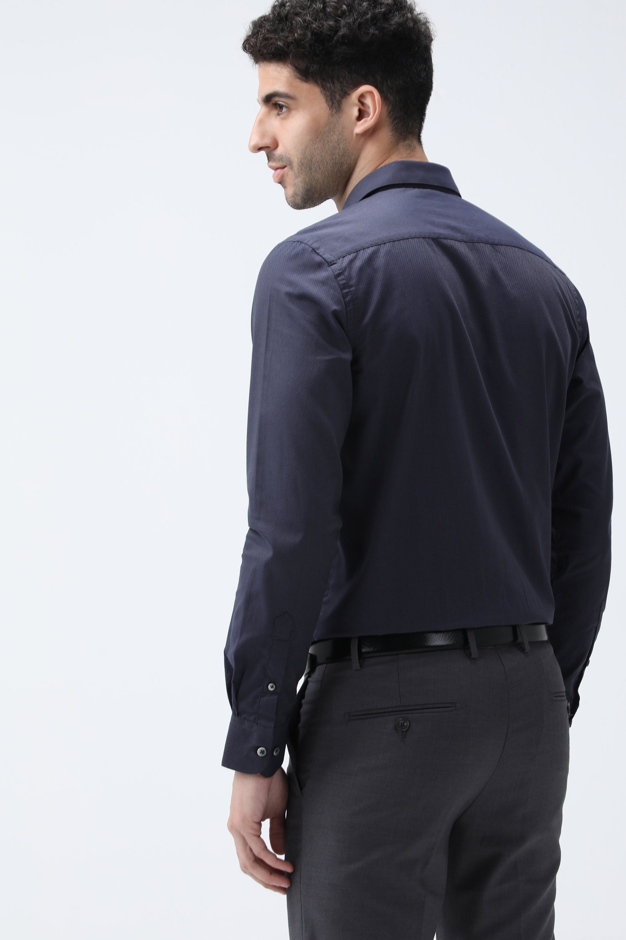 T the brand Diamond Dobby Slim Fit Full Sleeved Cotton Shirt - Grey