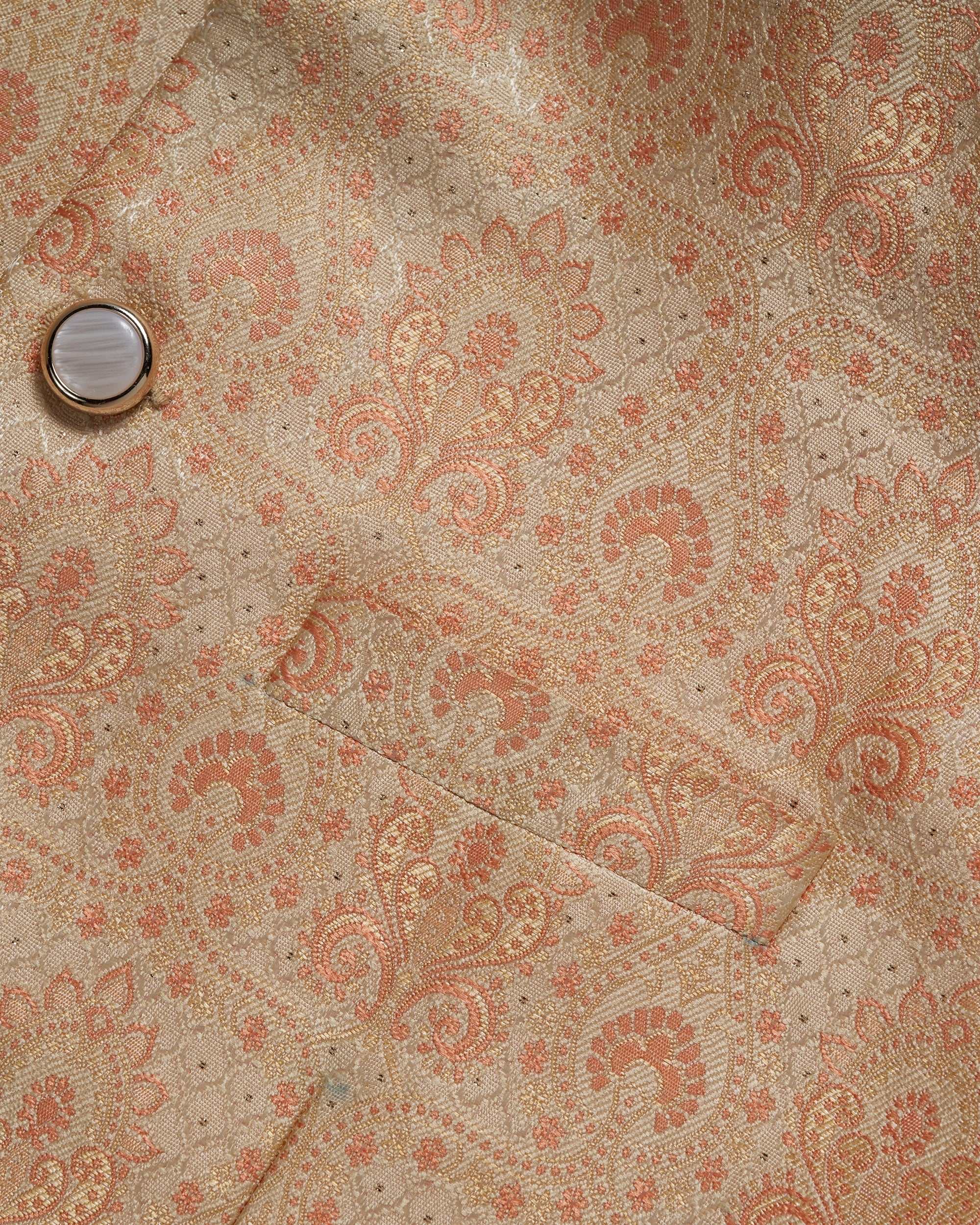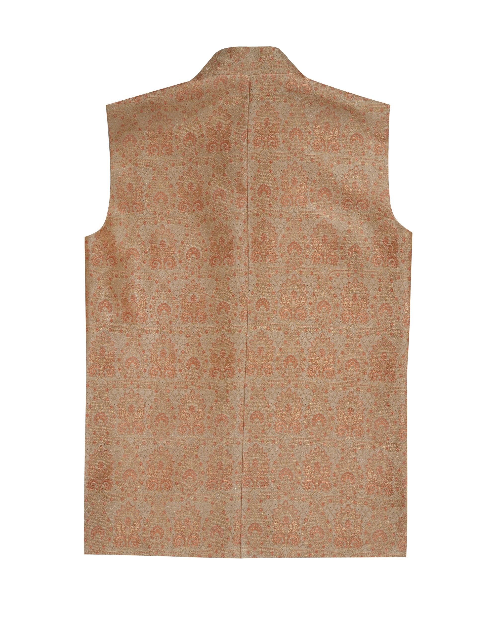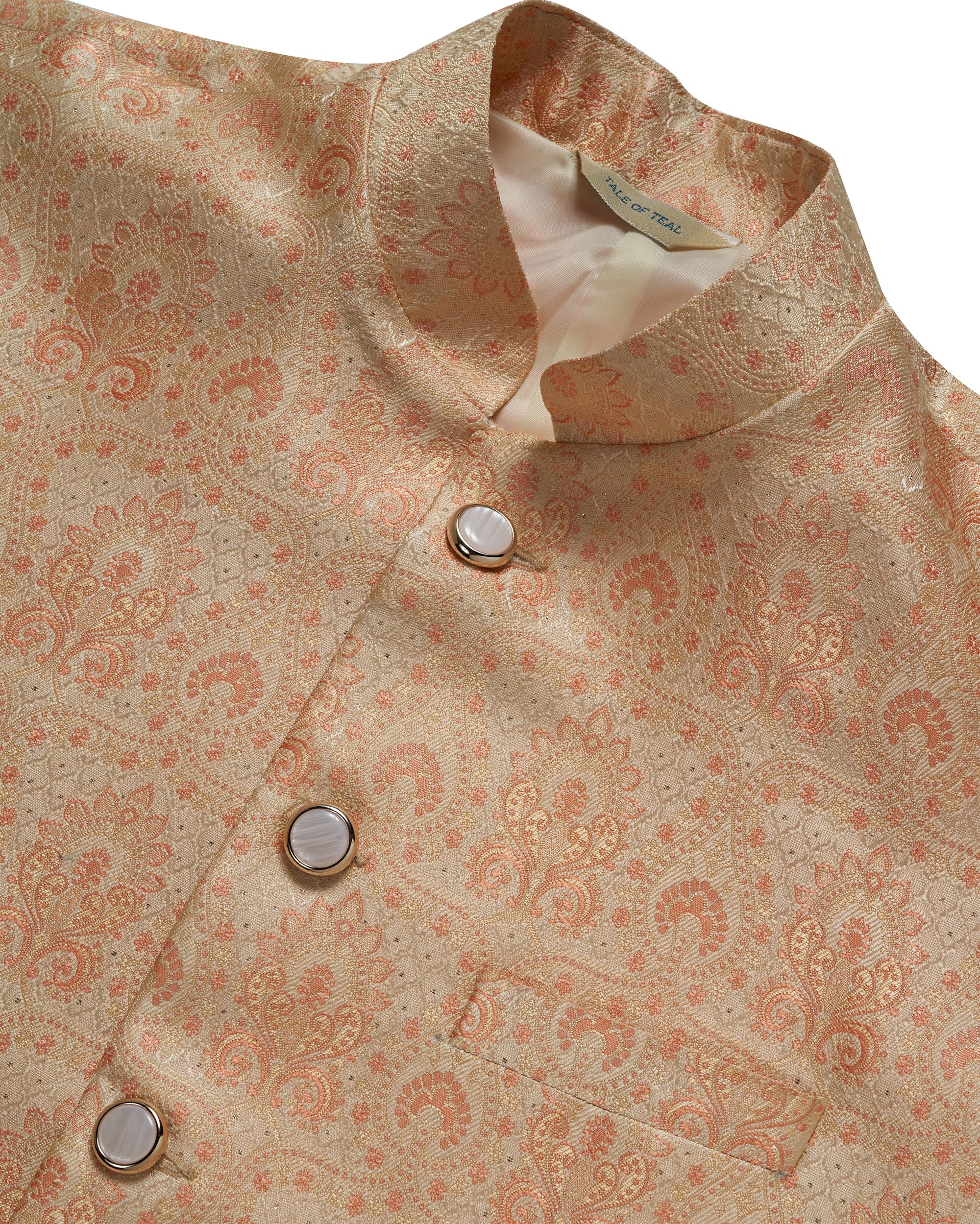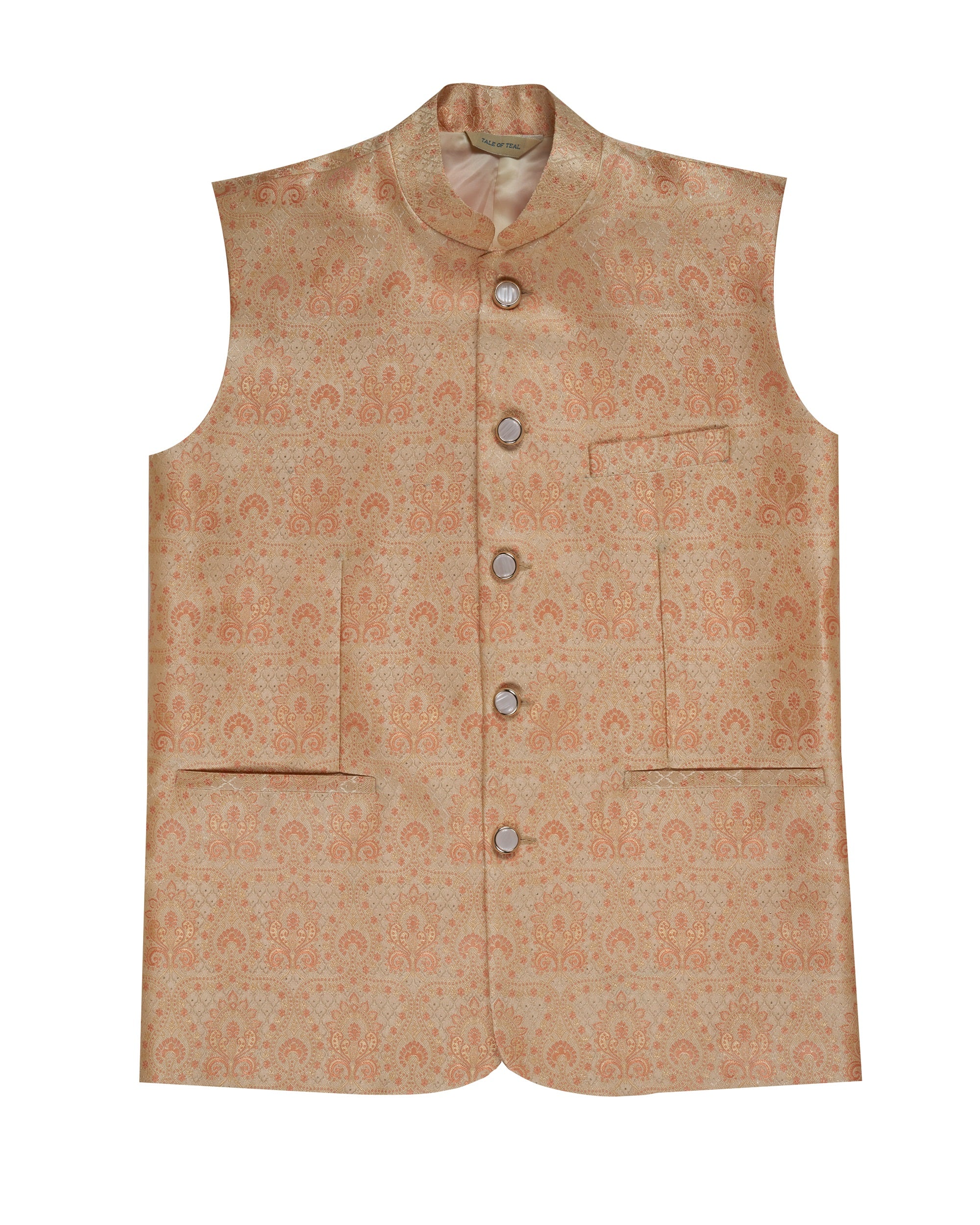 Tale of Teal Allover Patterned Jacquard Bundi Ethnic Waistcoat - Peach